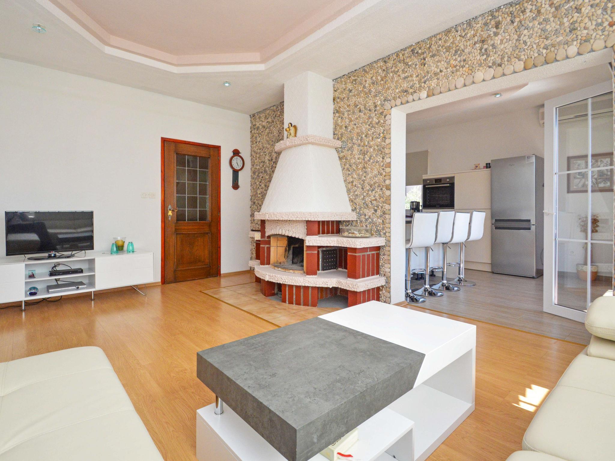 5-room semi-detached house 140 m2 on 3 levels. Living/dining room with open-hearth fireplace (only for decoration), satellite TV and air conditioning. Exit to the terrace. Open kitchen (oven, dishwasher, 4 ceramic glass hob hotplates, microwave, freezer, electric coffee machine). Shower/WC. Upper floor: 1 room with 1 french bed (160 cm, length 200 cm). 1 room with 1 double bed (2 x 80 cm, length 200 cm), air conditioning. Exit to the terrace. 1 room with 1 double bed (2 x 80 cm, length 200 cm). Exit to the terrace. Bath/WC, hydro massage bath. 2nd upper floor: 1 room with 1 french bed (160 cm, length 200 cm). Bath/WC, hydro massage bath. Forced-air heating. Terrace 11 m2, roofed, 2 terraces 12 m2, roofed. Terrace furniture. Partial view of the sea. Facilities: children's high chair, baby cot. Internet (WiFi, free). Maximum 1 pet/ dog allowed.