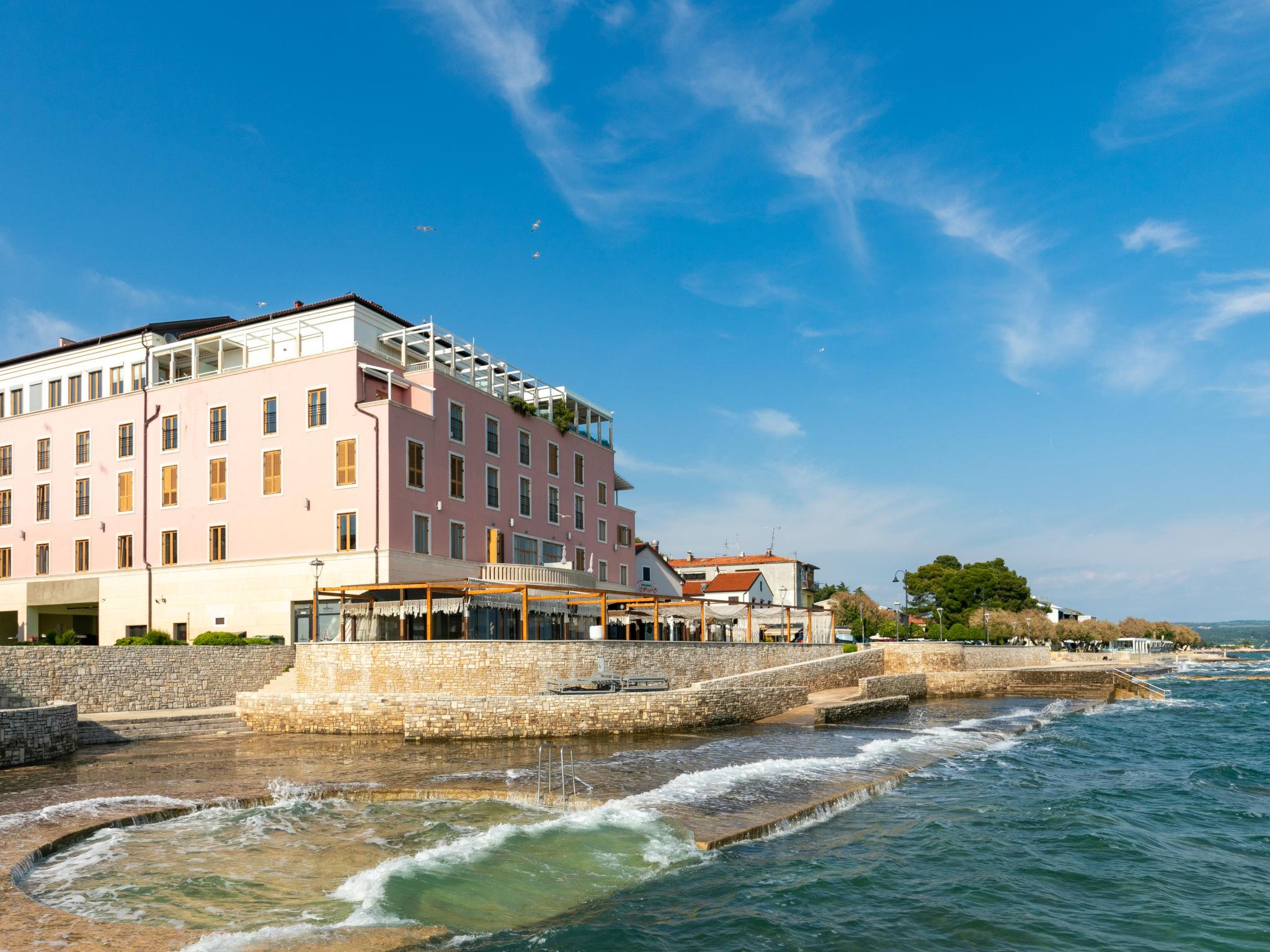 Aparthotel "Aparthotel Rotonda Inn", 4 storeys. 50 m from the centre of Novigrad, 15 km from the centre of Umag, 15 km from the centre of Porec, excellent location: right in the centre but still quiet, 20 m from the sea, 20 m from the beach. In the house: reception, internet access. Room cleaning daily on request (extra). Airport transfer (extra). Parking (limited number of spaces, extra), public parking extra. Shop 100 m, restaurant, bar, bakery 50 m, bus stop 2 km, railway station 35 km, pebble beach 100 m, concrete beach 20 m. Marina 1 km, golf course (18 hole) 25 km, sports centre 1 km. Nearby attractions: Aquapark 7 km.