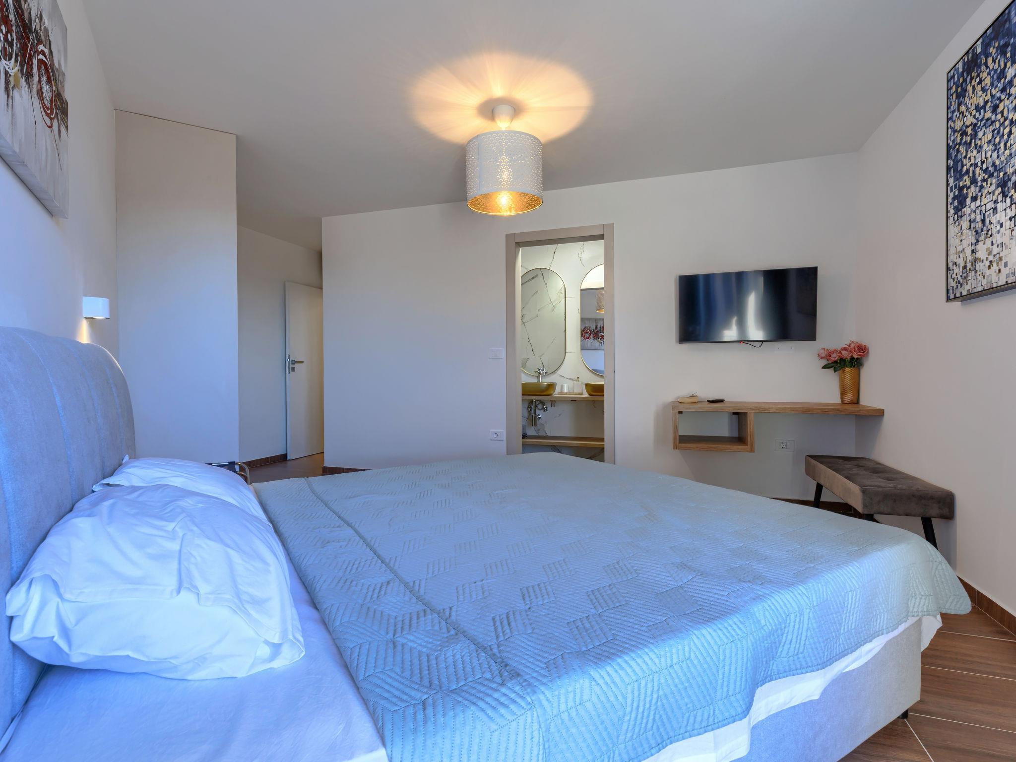 Stancijeta 3 km from Novigrad: Very modern, comfortable villa "Villa Ana", 3 storeys. Stancijeta 18 km from the centre of Porec, 15 km from the centre of Umag, in a sunny position, 3 km from the sea, 3 km from the beach. Private: property 900 m2, garden with lawn, swimming pool (32 m2, depth 150 cm, seasonal availability: 01.May. - 01.Oct.) with internal staircase. Outdoor shower, barbecue. In the house: internet access. Parking (for 3 cars) at the house. Shop 3 km, restaurant 300 m, bus stop 3 km, railway station 35 km, pebble beach 3 km. Golf course (18 hole) 25 km, walking paths from the house, cycle lane 100 m. Nearby attractions: Aquapark 4 km. The owner does not accept any groups.