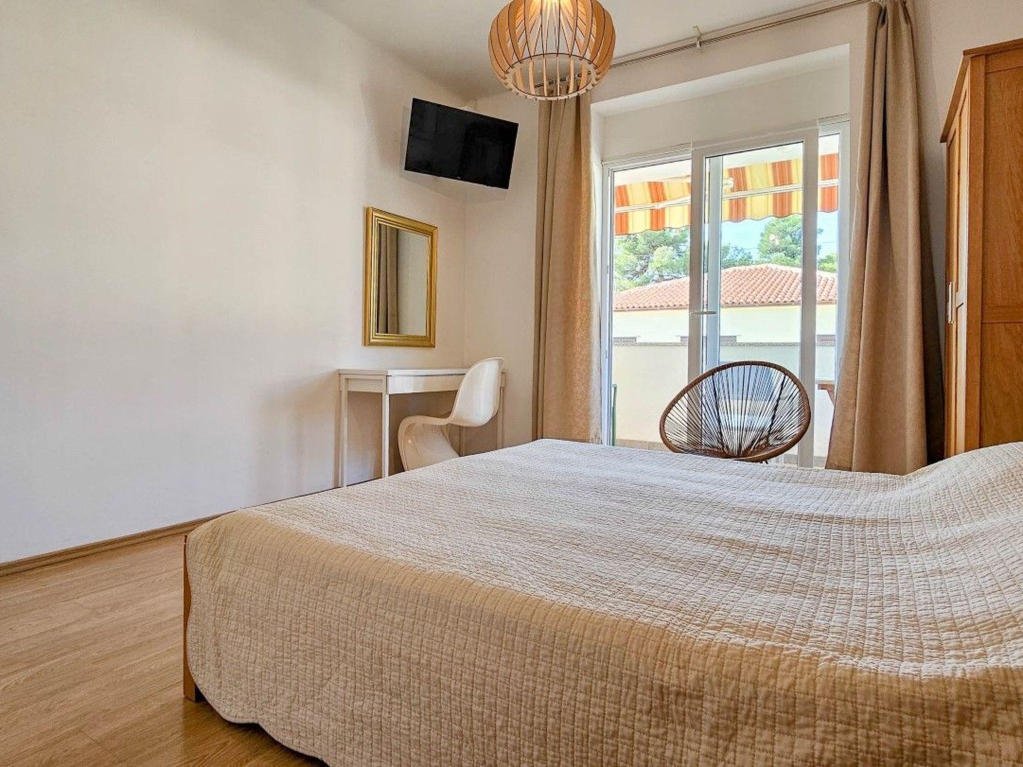 The apartment's enviable location means that the beach and the sea are just 50 meters away, inviting you to embrace the joy of sun-drenched days by the water. For those with a passion for water sports, a 600-meter journey opens the door to exhilarating activities. Meanwhile, the nearest town center and grocery store are only a 100-meter stroll away, placing a variety of dining and shopping options at your fingertips.