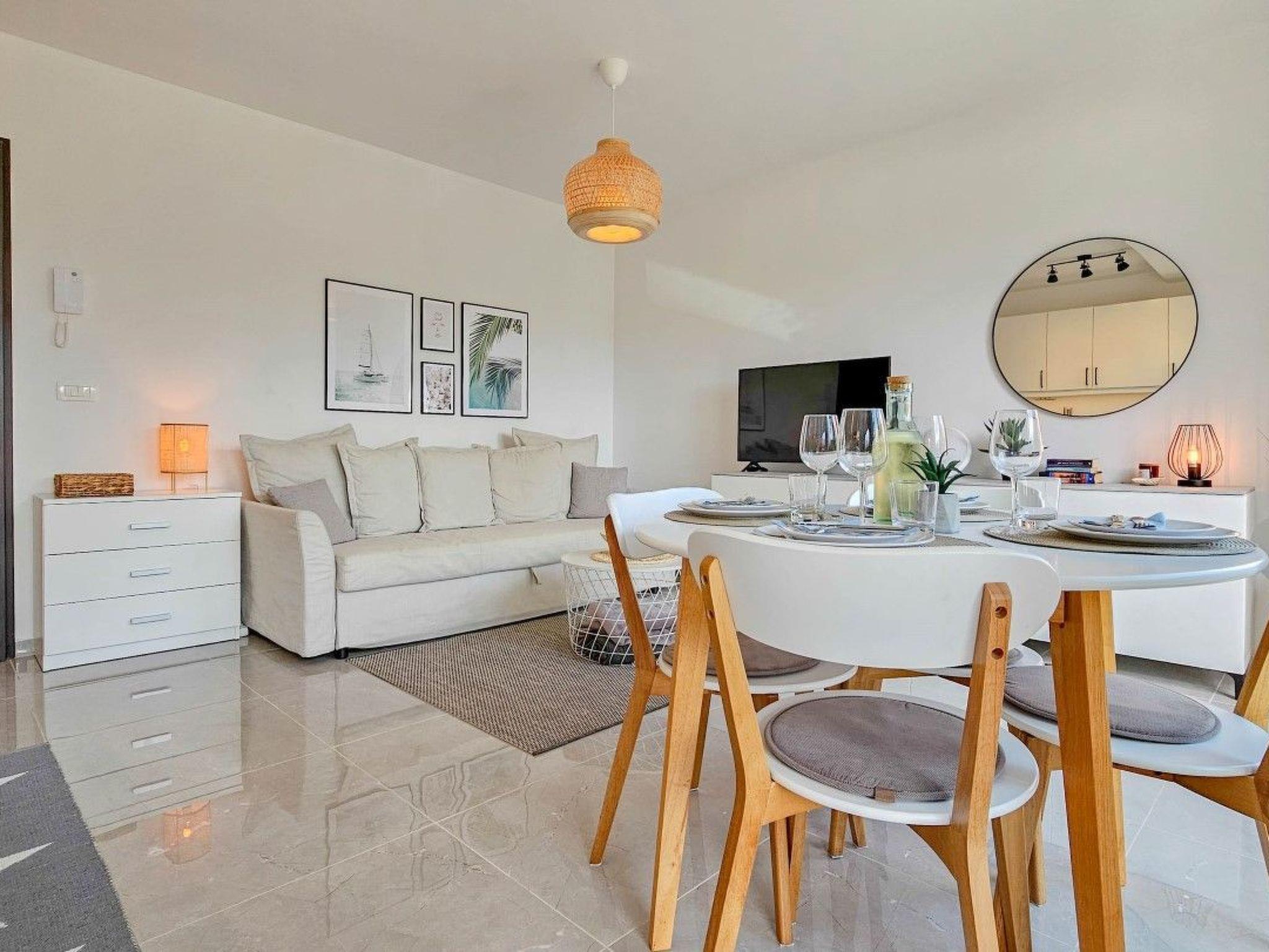 Inside the apartment, contemporary design dominates, creating a pleasant and elegant ambience. It consists of one bedroom, modern bathroom, kitchen and living room. The living room also has a comfortable sofa bed that can accommodate an additional two people.