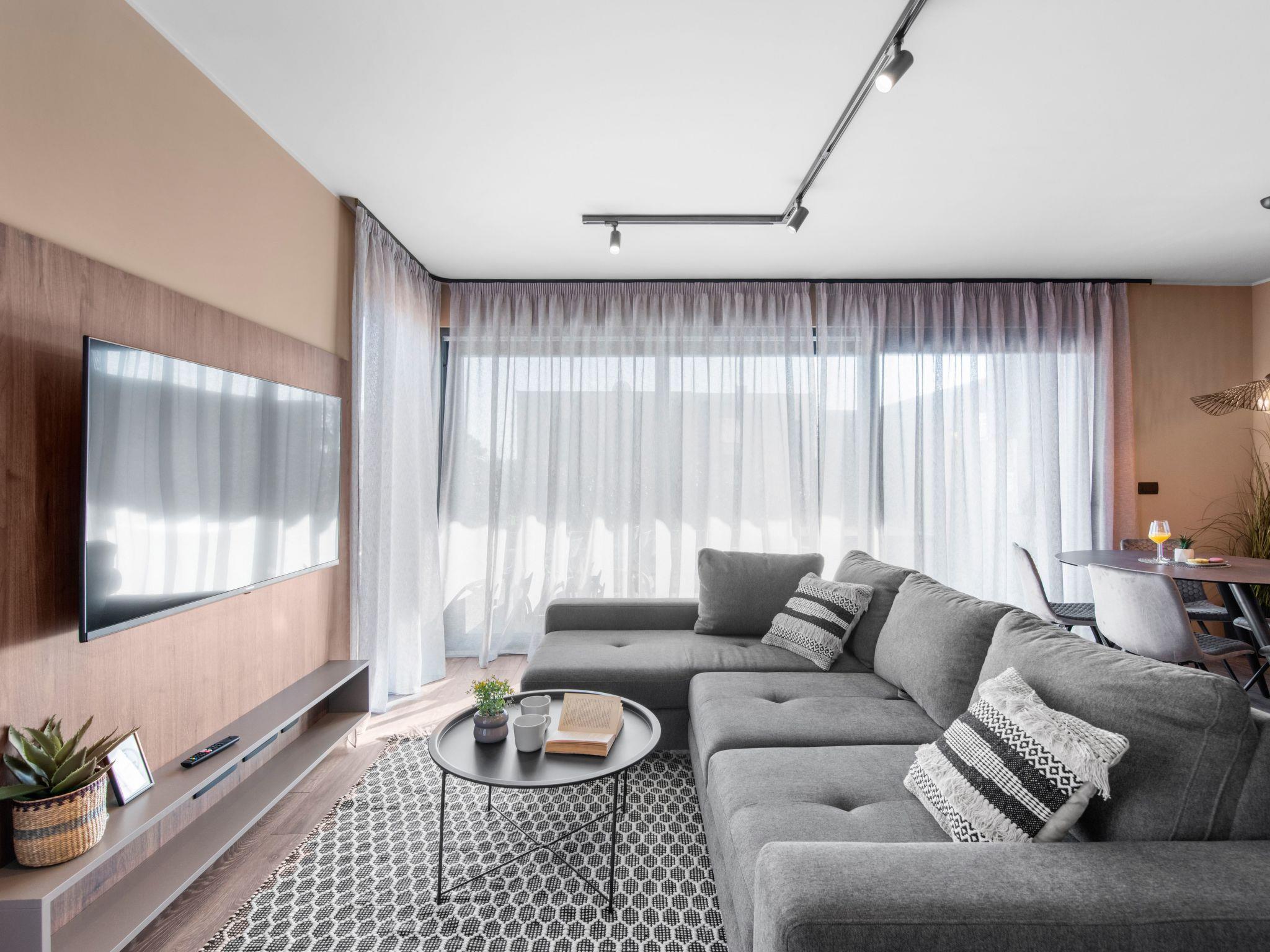 Inside this beautiful home, you will find two cosy bedrooms and two fully equipped bathrooms, offering enough privacy and comfort for all guests. The air conditioning system ensures pleasant temperatures throughout the flat, no matter how hot it gets outside. Although the kitchen and living area cannot be described in detail, you can rest assured that all the necessary amenities are provided to make your stay as pleasant and comfortable as possible.