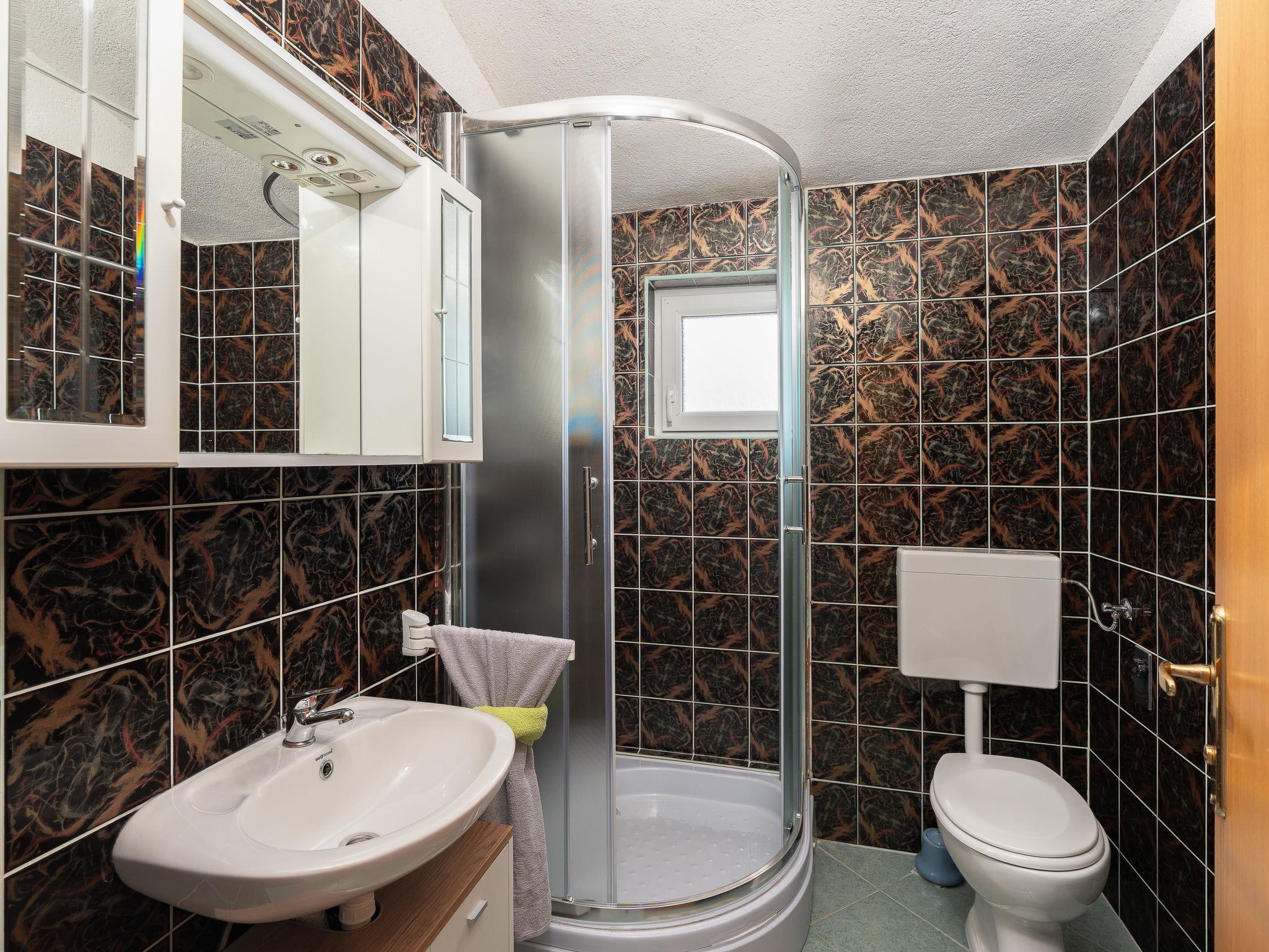 Ribnica 15 km from Novigrad: 3-family house "Mia". 12 km from the centre of Obrovac, in a quiet, sunny, elevated position, 80 m from the sea, 80 m from the beach. For shared use: property 160 m2 (fenced). Garden furniture, barbecue. In the house: internet access. Parking at the house on the premises. Shop 1 km, restaurant 1 km, bus stop 25.1 km, pebble beach 80 m. Access to the beach via 30 steps.