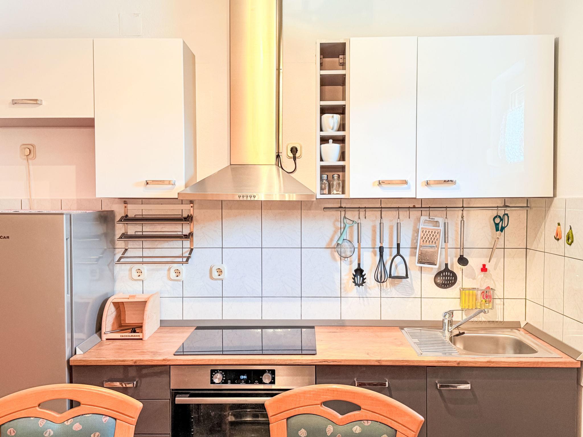 2-room apartment 60 m2 on 1st floor, east facing position. Living/dining room with 1 double sofabed, satellite TV and air conditioning. Exit to the terrace. 1 room with 1 double bed. Open kitchen (4 hot plates, oven). Shower/WC. Terrace 15 m2 partly roofed. Terrace furniture. Facilities: washing machine. Internet (WiFi, free). Maximum 1 pet/ dog allowed.