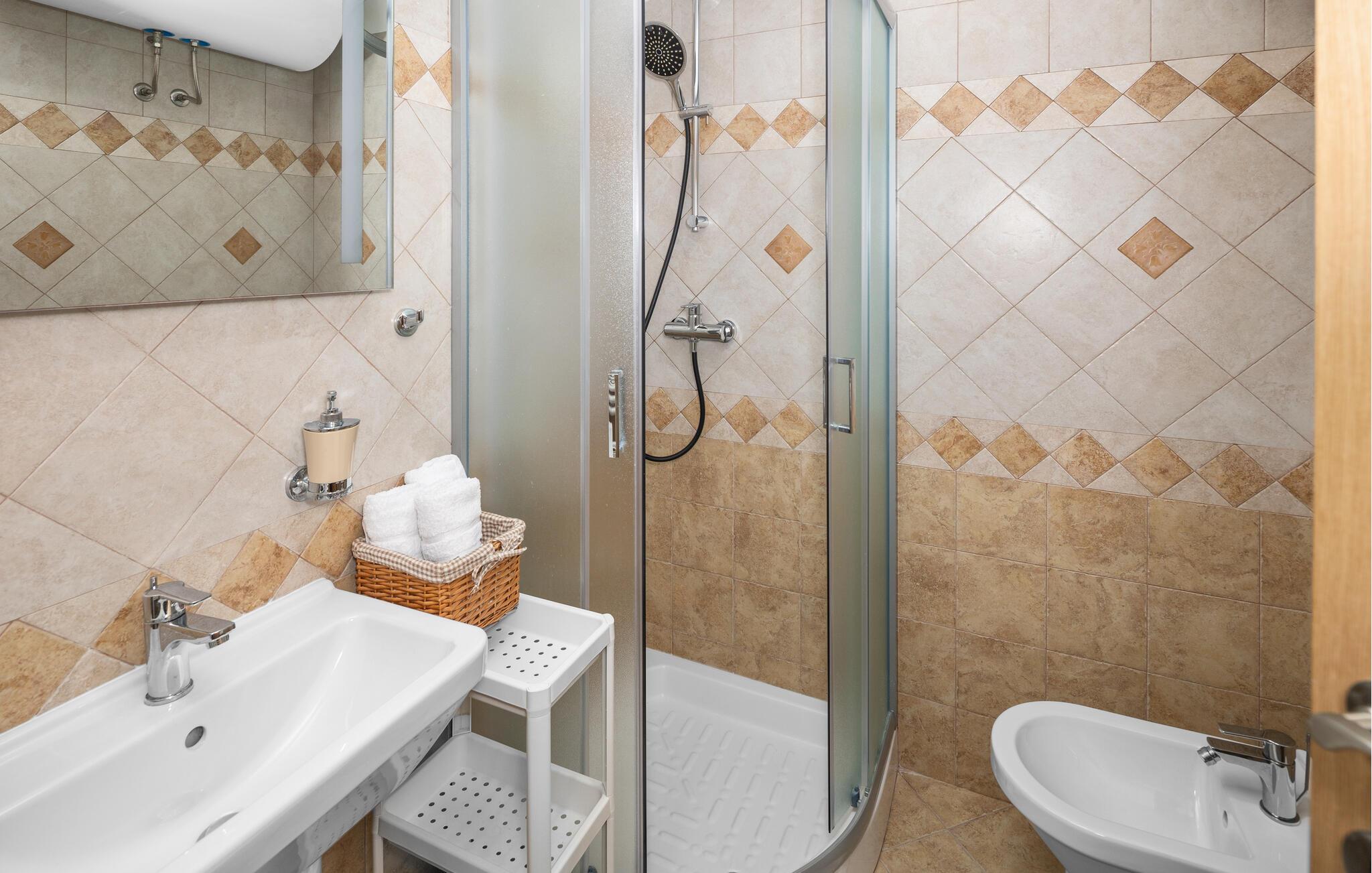 - WC med varmt og kaldt vann, Dusj