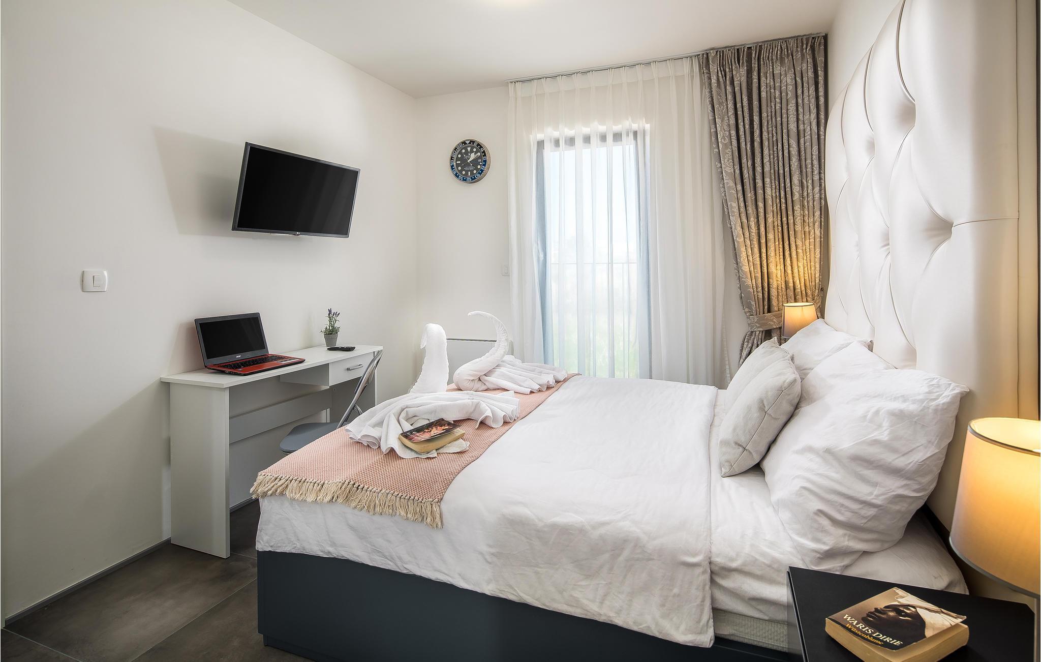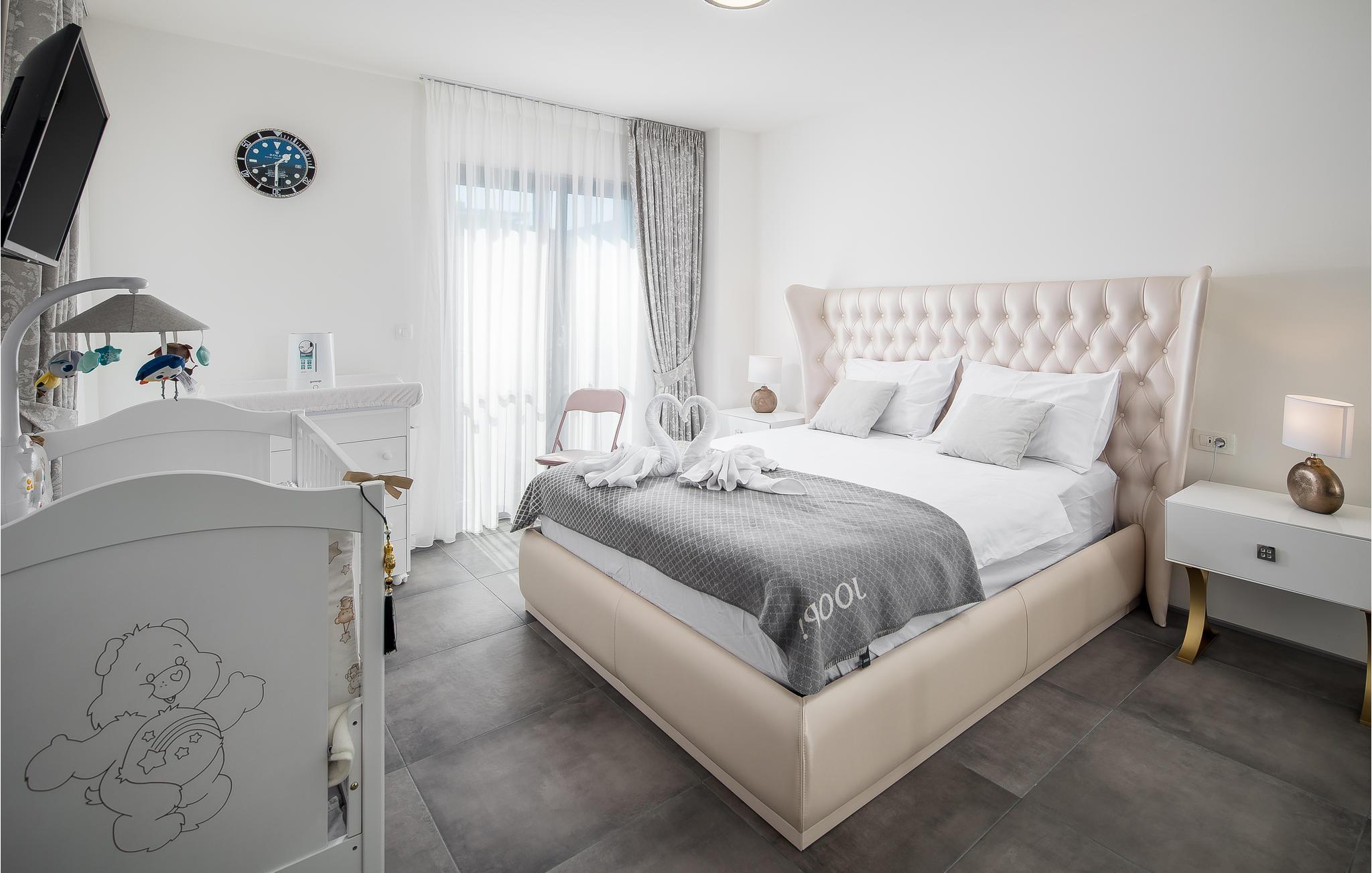 På taket er det en overbygd terrasse med boblebad og fenomenal havutsikt. På gårdsplassen er det et svømmebasseng med en overbygd terrasse og et sommerkjøkken hvor du kan tilberede deilige retter.