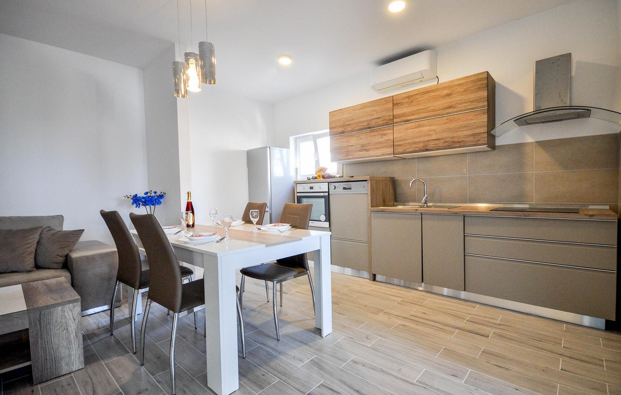 Ferieleiligheten ligger bare noen hundre meter fra sjøen, så du kan spasere til stranden og nyte det krystallklare vannet i Adriaterhavet når som helst. Takket være nærheten til sentrum kan du raskt nå den sjarmerende gamlebyen i Novigrad med sine livlige smug, koselige kafeer og utmerkede restauranter. Spaser langs strandpromenaden, besøk havnen eller oppdag kulturelle høydepunkter som de historiske bymurene eller Lapidarium-museet. Enten det er badeglede, kulinariske herligheter eller middelhavslivsstil, så er alt innen rekkevidde her.