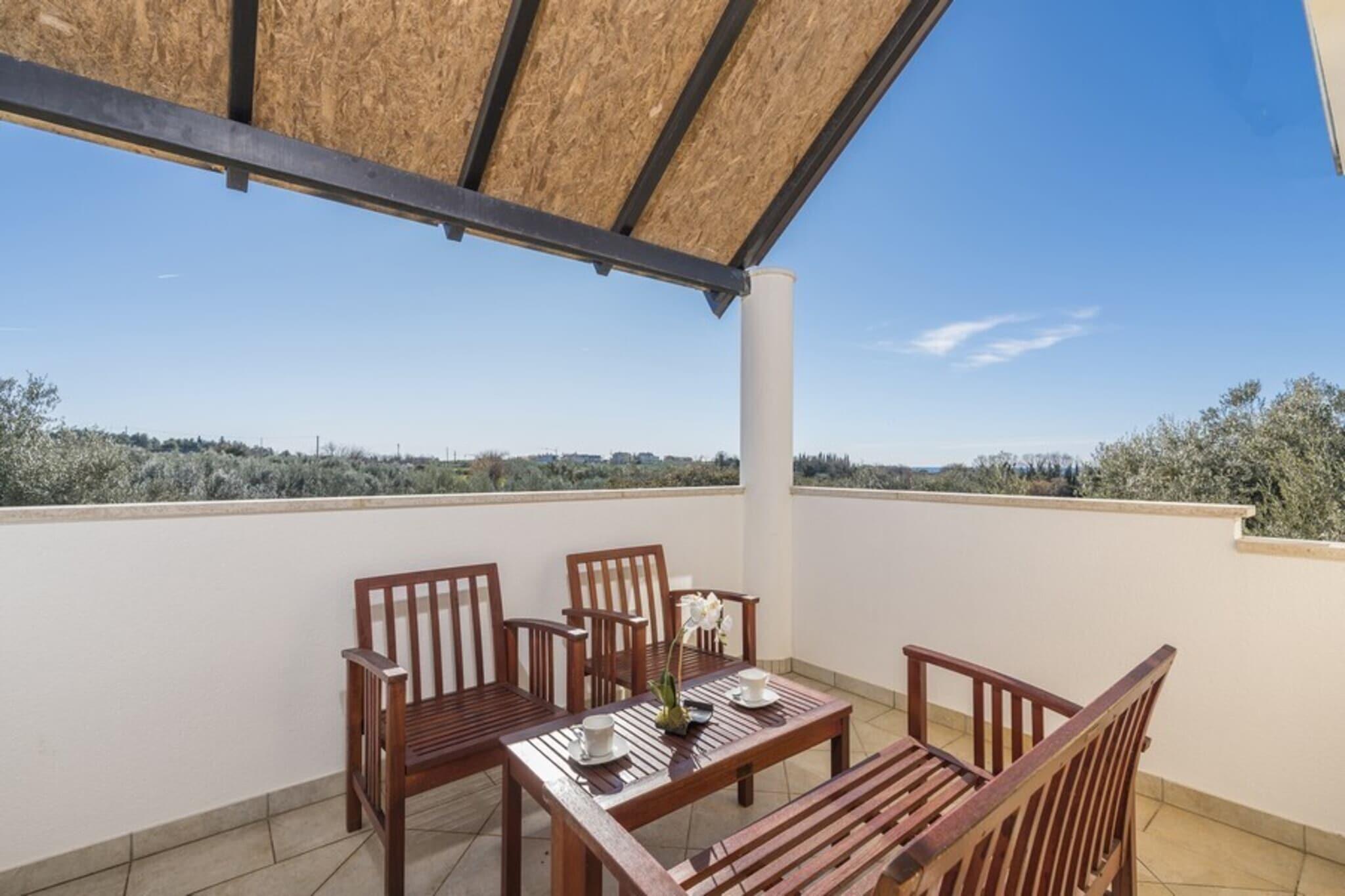 Dette komfortable, frittliggende hjem med privat svømmebasseng og balkong ligger i Novigrad. Din innkvartering tilbyr komplett komfort, fullt utstyrt kjøkken og stue, romslige soverom og bad, balkong, air condition. Overdækket terrasse er flott sted å sitte. Hagemøbler, solsenger, parasoll og grill er tilgjengelig for bruk. Miljøet i hjemmet er veldig pent og rent. Novigrad er en av de øverste istriske gourmetmålene hvor man kan smake på mange gastronomiske ekstravaganser av middelhavsmaten. Istriens utmerkede kjøkken og dets delikatesser vil spice opp ditt opphold og gjøre reisen så komfortabel at du vil sikkert gå tilbake til denne sjarmerende byen igjen.