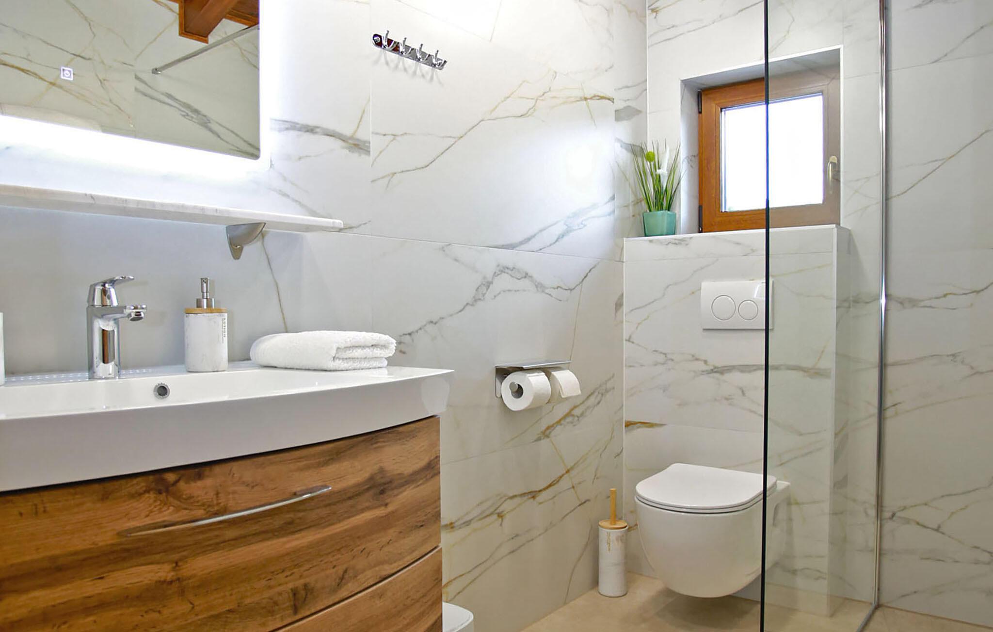- WC med varmt og kaldt vann, Dusj