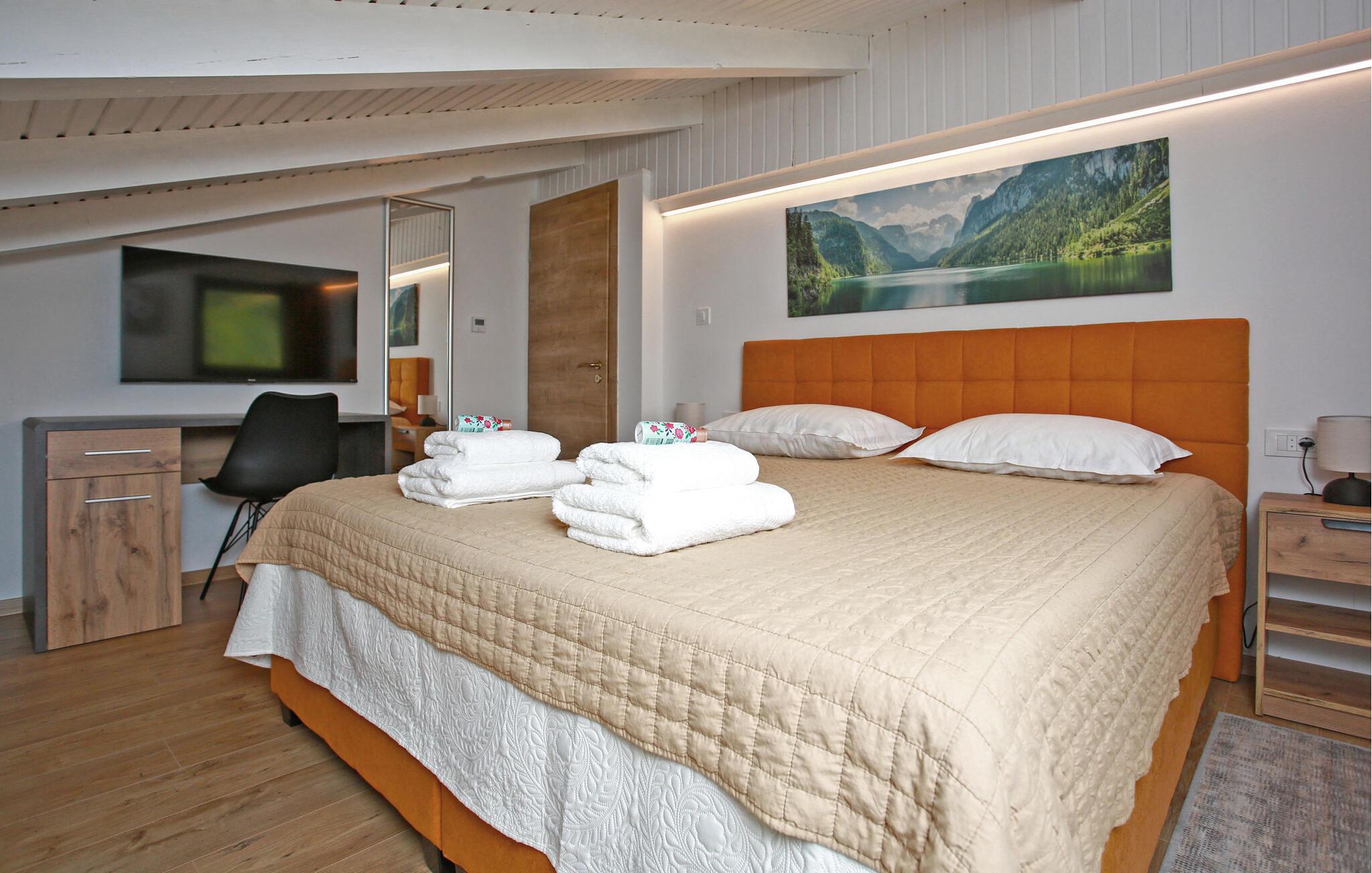 Feriehuset Sopra di Lago ligger i den lille, rolige landsbyen Desmerice i nærheten av Ogulin, i bakkene av Klek, over den vakre innsjøen Sabljaci. Dette luksuriøse huset tilbyr alt du trenger for en perfekt ferie og avslapning. Huset har en håndfull romslige og elegant innredede rom som gir deg og din familie eller venner maksimal komfort og privatliv. Alle rommene er utstyrt med møbler av høy kvalitet og moderne bekvemmeligheter for å gjøre oppholdet ditt så behagelig som mulig.