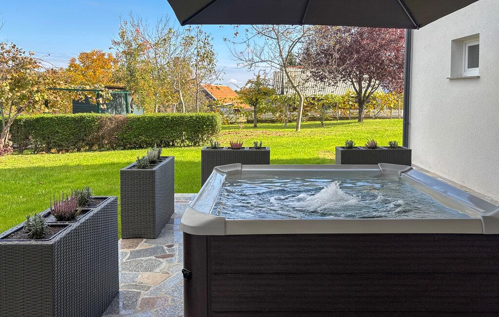 Gå ut ved første solstråle og nyt den vakre hagen som omgir deg. Spis en solid frokost på terrassen og planlegg aktivitetene for dagen som kommer. Hvis du ønsker det, kan du nyte roen og avslapningen med en dukkert i boblebadet. Tenn opp grillen om kvelden og nyt en avslappende avslutning på dagen.