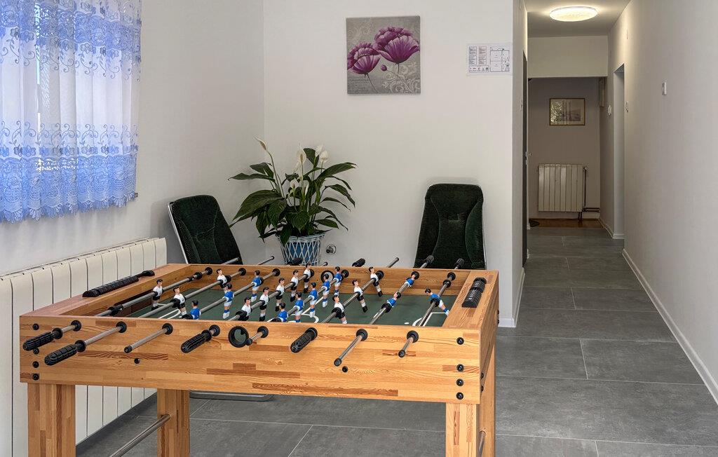 Dette huset imponerer med sin rolige beliggenhet og lyse og vennlige atmosfære. Len deg tilbake og slapp av med en kopp kaffe i den koselige sofaen, eller samle deg rundt det store spisebordet for en morsom spillkveld. Hvis du føler deg sporty, kan du spille bordtennis eller bordfotball.
