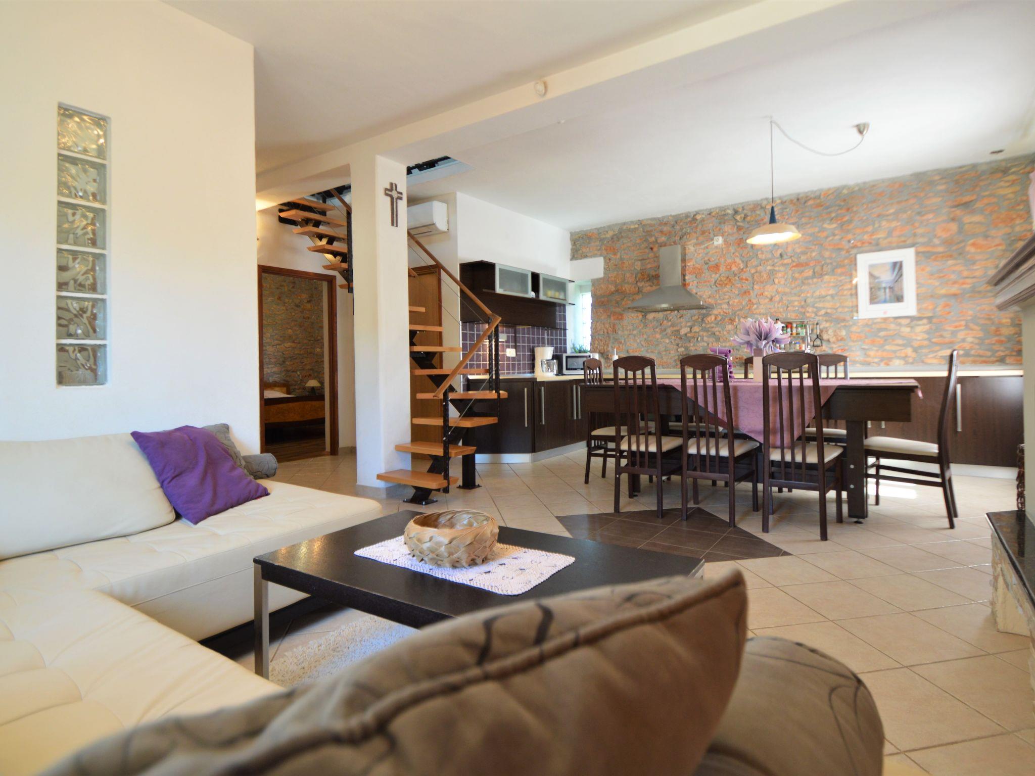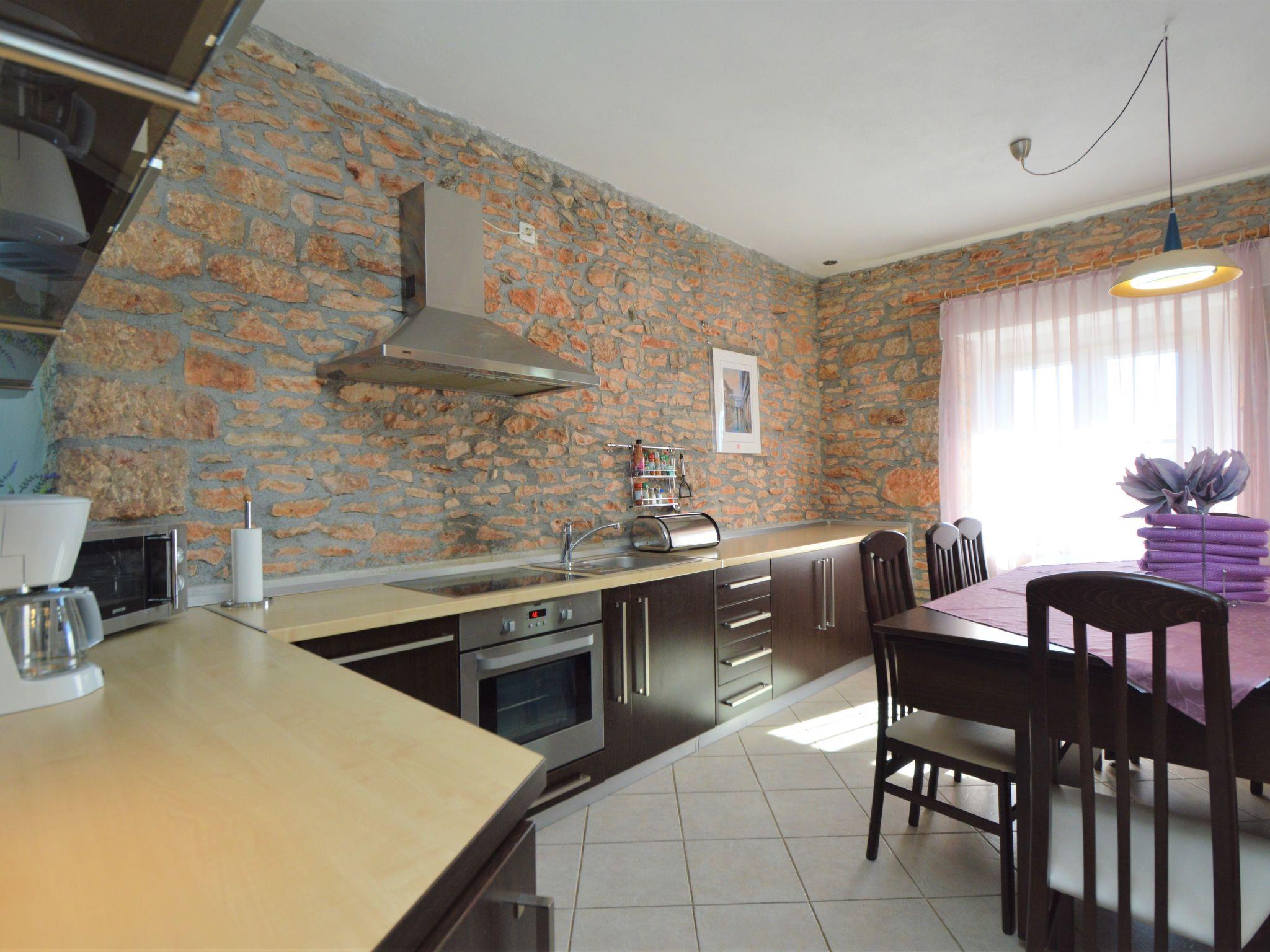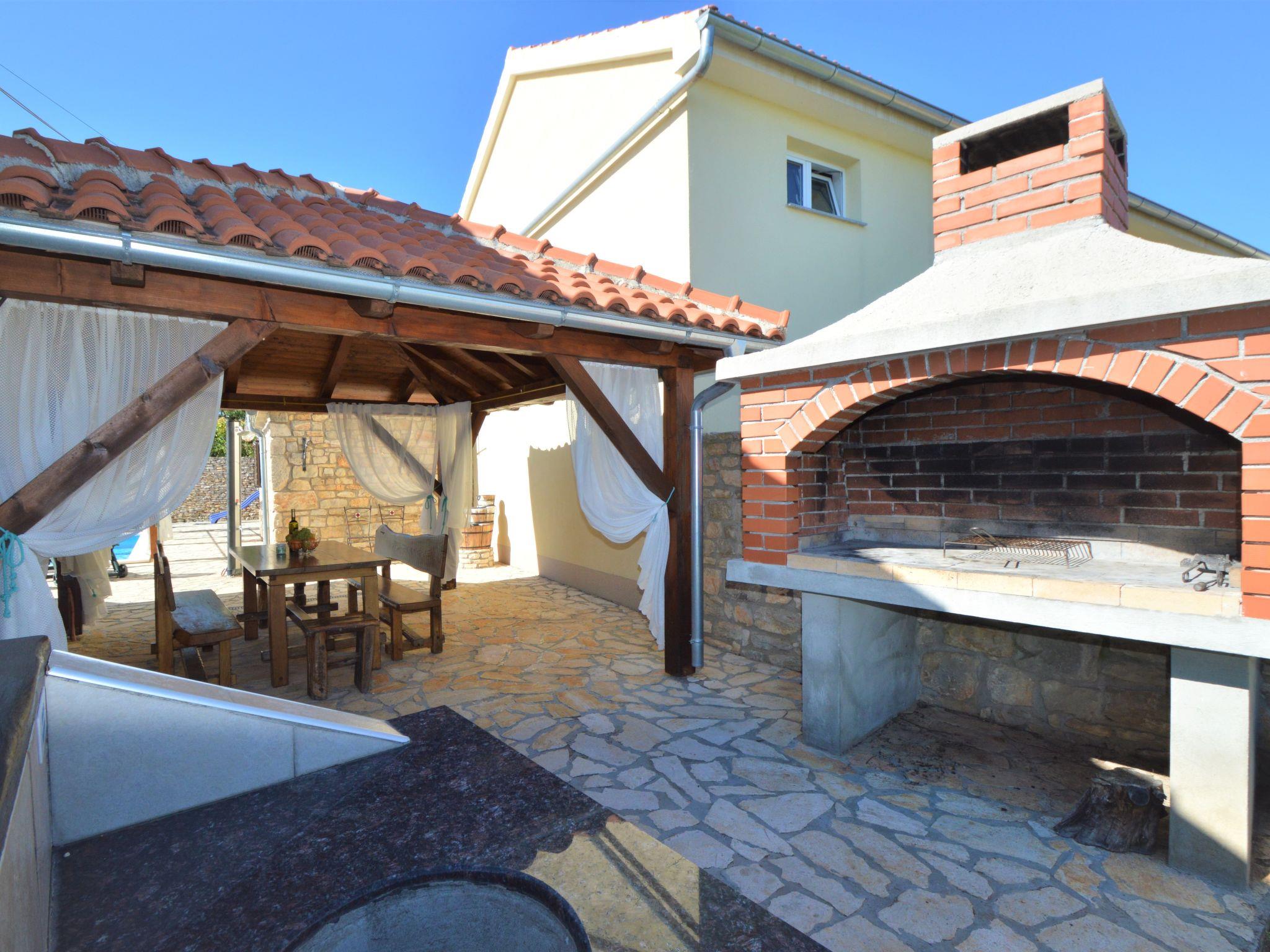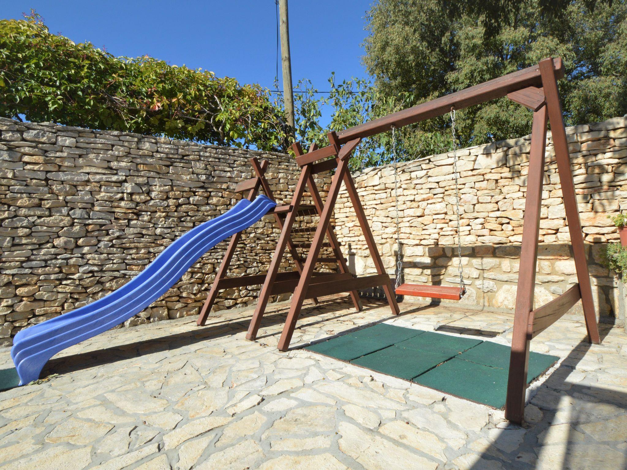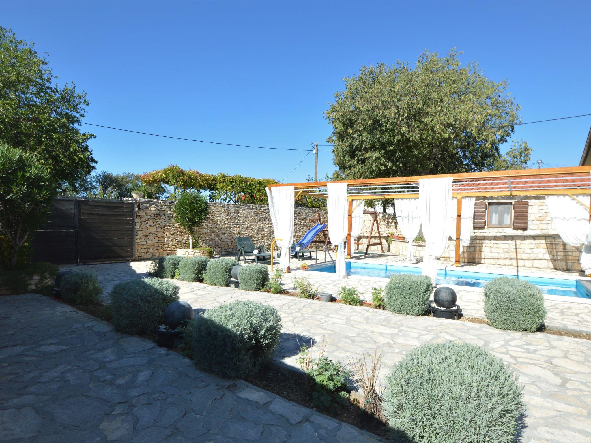 Bogatic 10 km from Oklaj: Child friendly, beautiful single-family house "Marija", 2 storeys. In a quiet, sunny position, 44 km from the sea. Private: property 700 m2 (fenced), swimming pool angular (6 x 3 m, 18 m2, depth 150 cm, seasonal availability: 15.Apr. - 15.Oct.). Outdoor shower, boules, badminton, volleyball court, terrace (6 m2), garden furniture, barbecue, children's playground (slide, swing). In the house: internet access, sauna, billiard table, washing machine. Available: bicycles (2), children's bicycles (1). Motor access to the house (800 m via unmade road). Parking (for 2 cars) at the house on the premises. Shop 10 km, restaurant 6 km, bus stop 22.7 km, pebble beach 44 km. Nearby attractions: NP Krka 6 km. Groups of teenagers on request only. By groups of young people double deposit is requested on arrival. Organizing a party is not allowed. Small house (15 m2) by the pool with sauna and air conditioning.