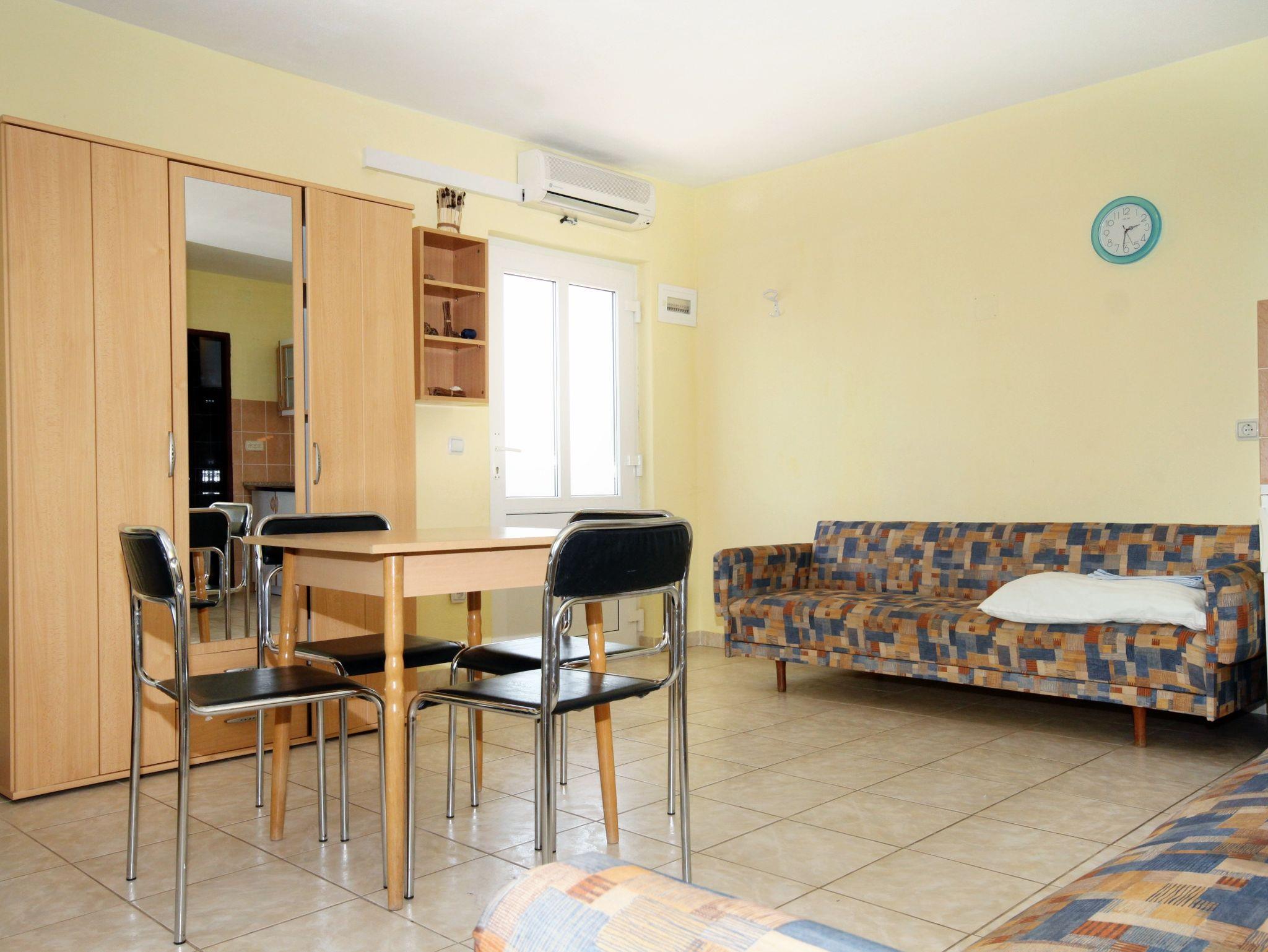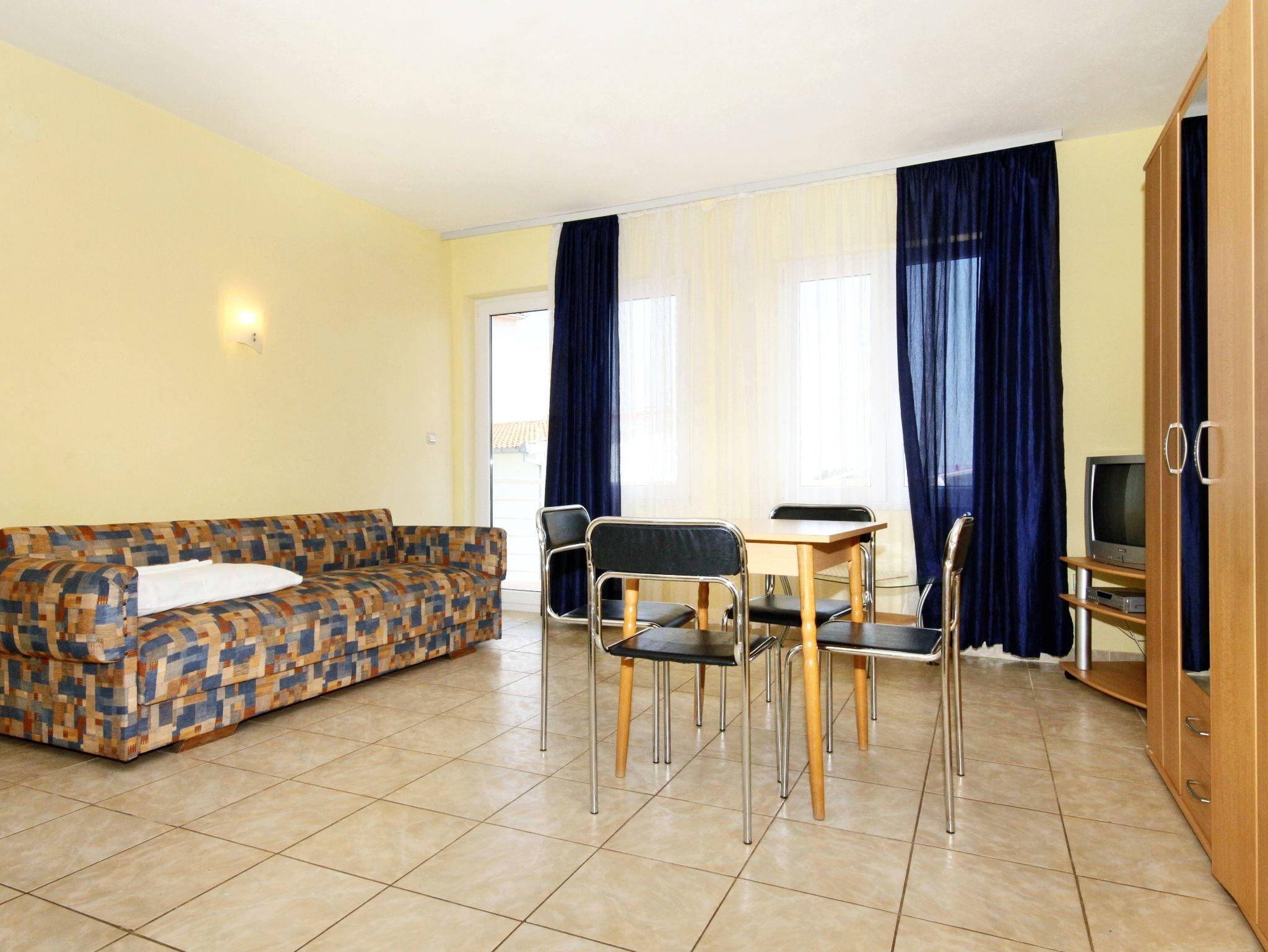 Ferienwohnung bietet Platz für 4 Gäste. Die Betten sind in Schlafzimmern, die es 1 gibt, und in Esszimmer, innerhalb einer Gesamtfläche von 36m2, angeordnet. Die Gäste haben einen eigenen Balkon zur Verfügung, auf der sie in warmen Sommernächten genießen können. Das Apartment bietet Meerblick. Es ist erlaubt, Speisen auf dem Gemeinschafts-Grill vorzubereiten. In der Unterkunftseinheit besteht die Möglichkeit des Mitbringens von Haustieren gegen Aufpreis. IM PREIS INBEGRIFFEN: Kurtaxe, Endreinigung, Klimatisierung, Parkplatz, Internet, Kinderbett. VERBINDLICHE ZUSÄTZLICHE KOSTEN: Aufzahlung für Kurzaufenthalte (prozentualer Zuschlag pro Nächtigungsanzahl: 30% - 1, 20% - 2, 10% - 3). UNVERBINDLICHE ZUSÄTZLICHE KOSTEN: Haustiere (5,00 € pro Nacht). Die Verfügbarkeit zusätzlicher Dienstleistungen in Ihrem reservierten Termin und die Preise derselben (falls nicht aufgeführt) müssen im Voraus überprüft werden. Zusätzliche Dienstleistungen die in der Zahlungsaufforderung nicht aufgeführt sind werden direkt beim Vermieter bezahlt, angenommen der Gast nutzt auch diese. Ermäßigung auf den Grundpreis: Gratistag 14=13 (bei einem Aufenthalt von 14 Tagen oder mehr erhalten Sie einen Gratistag für den Aufenthalt bis 31.12.26).