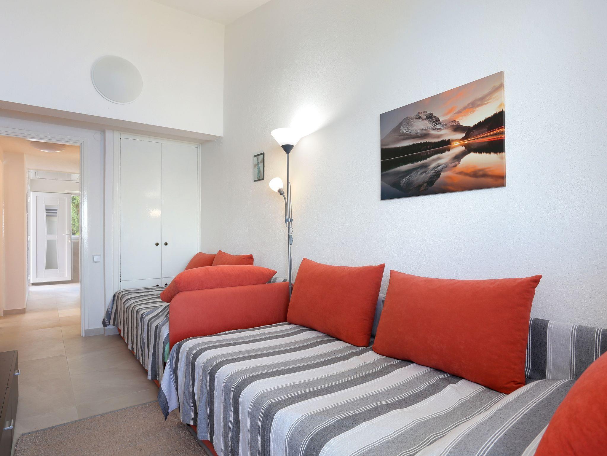 Ferienwohnung bietet Platz für 4 Gäste. Die Betten sind in Schlafzimmern, die es 2 gibt, innerhalb einer Gesamtfläche von 44m2, angeordnet. Die Gäste haben eine eigene Terrasse zur Verfügung, auf der sie in warmen Sommernächten genießen können. Das Apartment bietet Meerblick. Es ist erlaubt, Speisen auf dem Gemeinschafts-Grill vorzubereiten. IM PREIS INBEGRIFFEN: Kurtaxe, Endreinigung, Klimatisierung, Parkplatz, Internet, Wäschewaschen, Bügeleisen, Bügelbrett, Föhn, Sonnenschirm, Liegestühle. Die Verfügbarkeit zusätzlicher Dienstleistungen in Ihrem reservierten Termin und die Preise derselben (falls nicht aufgeführt) müssen im Voraus überprüft werden. Zusätzliche Dienstleistungen die in der Zahlungsaufforderung nicht aufgeführt sind werden direkt beim Vermieter bezahlt, angenommen der Gast nutzt auch diese.