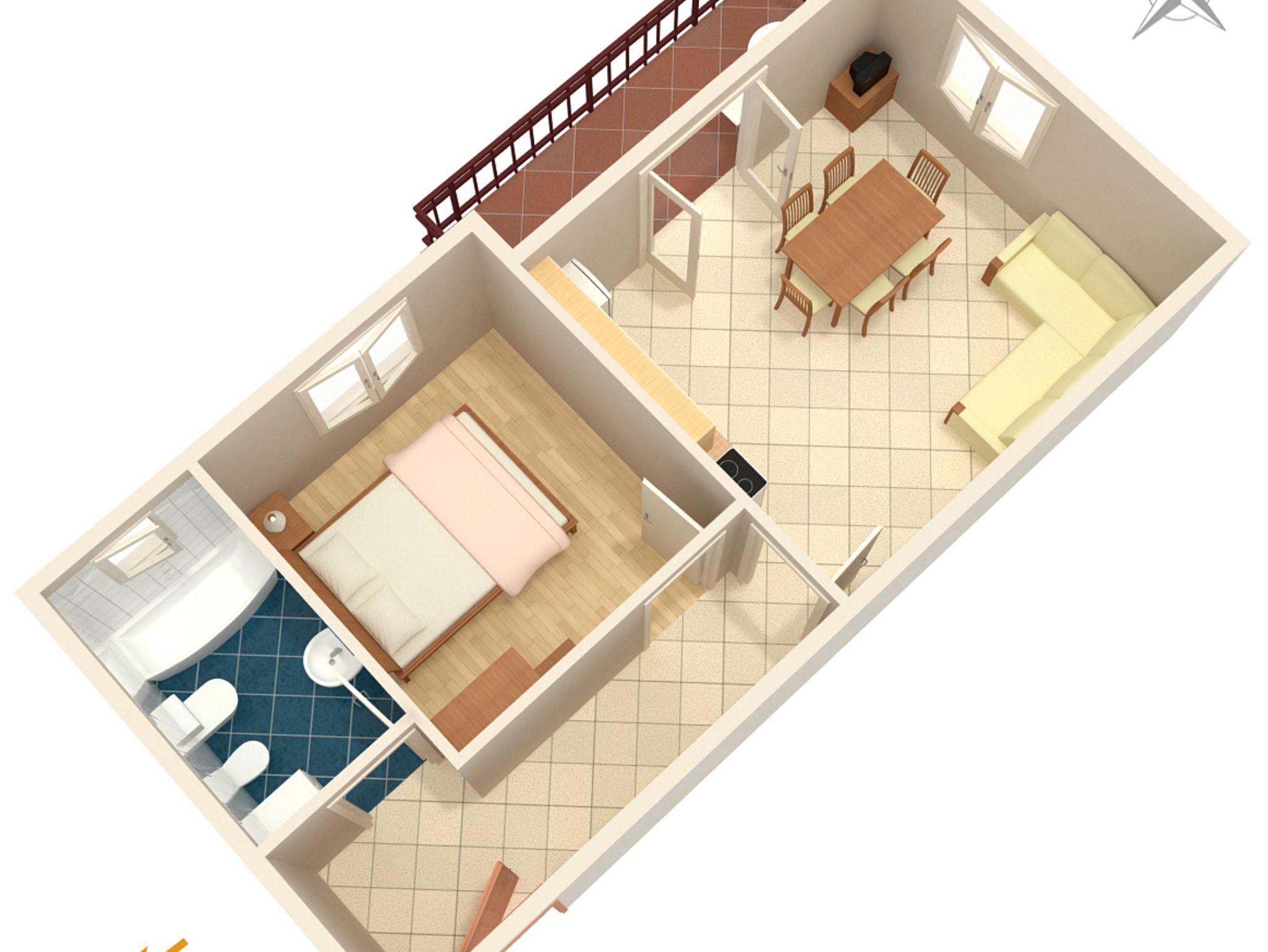 Ferienwohnung bietet Platz für 4 Gäste. Die Betten sind in Schlafzimmern, die es 1 gibt, und in Wohnzimmer, innerhalb einer Gesamtfläche von 40m2, angeordnet. Die Gäste haben einen eigenen Balkon zur Verfügung, auf der sie in warmen Sommernächten genießen können. Das Apartment bietet Meerblick. Es ist erlaubt, Speisen auf dem Gemeinschafts-Grill vorzubereiten. IM PREIS INBEGRIFFEN: Kurtaxe, Endreinigung, Klimatisierung, Parkplatz, Internet, Kinderbett, Zusatzbett. VERBINDLICHE ZUSÄTZLICHE KOSTEN: Aufzahlung für Kurzaufenthalte (prozentualer Zuschlag pro Nächtigungsanzahl: 30% - 1, 20% - 2, 10% - 3). Die Verfügbarkeit zusätzlicher Dienstleistungen in Ihrem reservierten Termin und die Preise derselben (falls nicht aufgeführt) müssen im Voraus überprüft werden. Zusätzliche Dienstleistungen die in der Zahlungsaufforderung nicht aufgeführt sind werden direkt beim Vermieter bezahlt, angenommen der Gast nutzt auch diese.