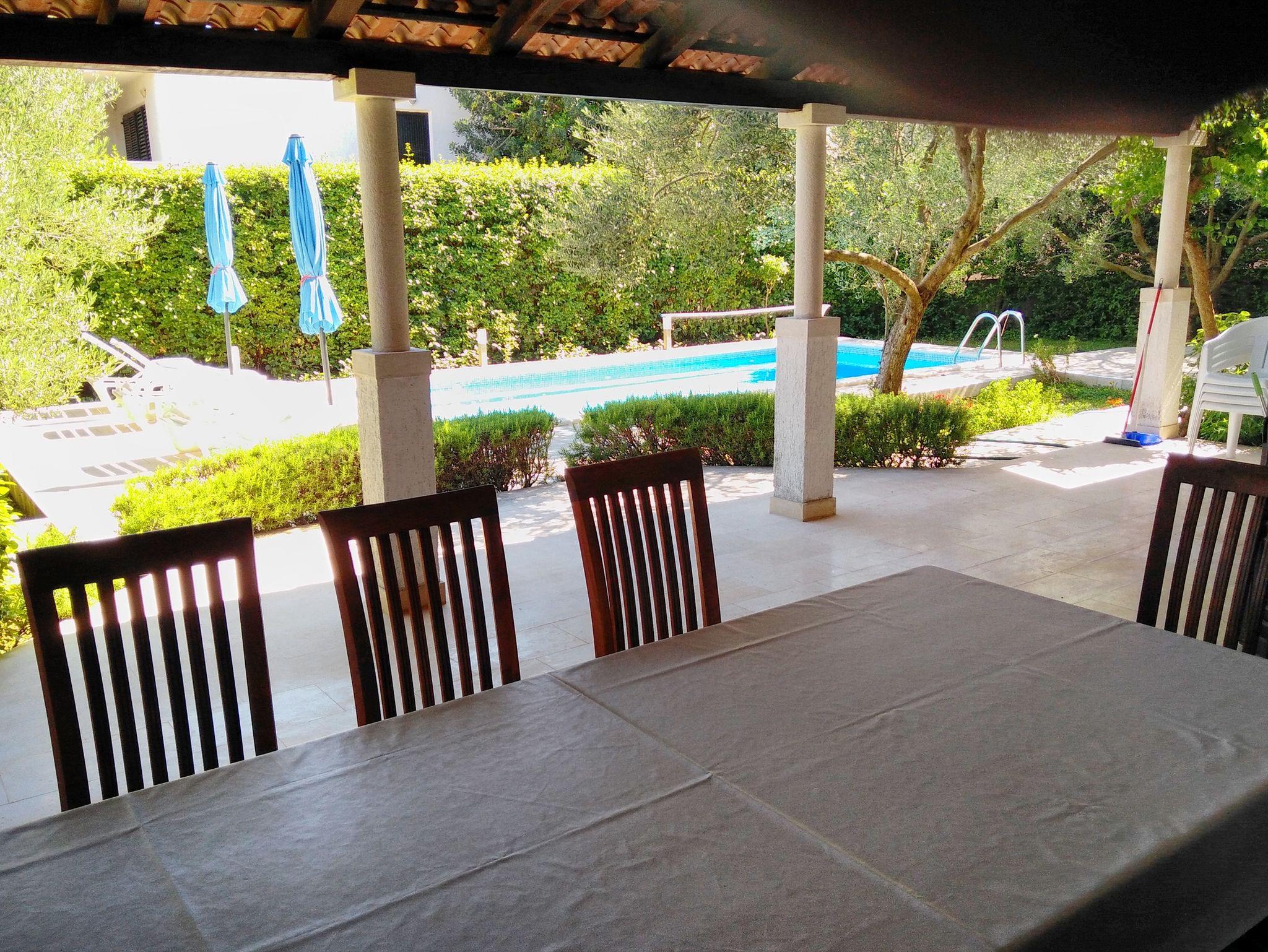 Hof (200m2, Sitzbereich), Parkplatz (Anzahl der Parkplätze: 6, Entfernung vom Objekt: 10 m), Pool: gemeinsam, Dimensionen: 8m x 3.5m x 1.6m, Wassertyp: Süßwasser, Grill: gemeinsam, WiFi Internet, Föhn, Bügeleisen, Bügelbrett, Kinderbett