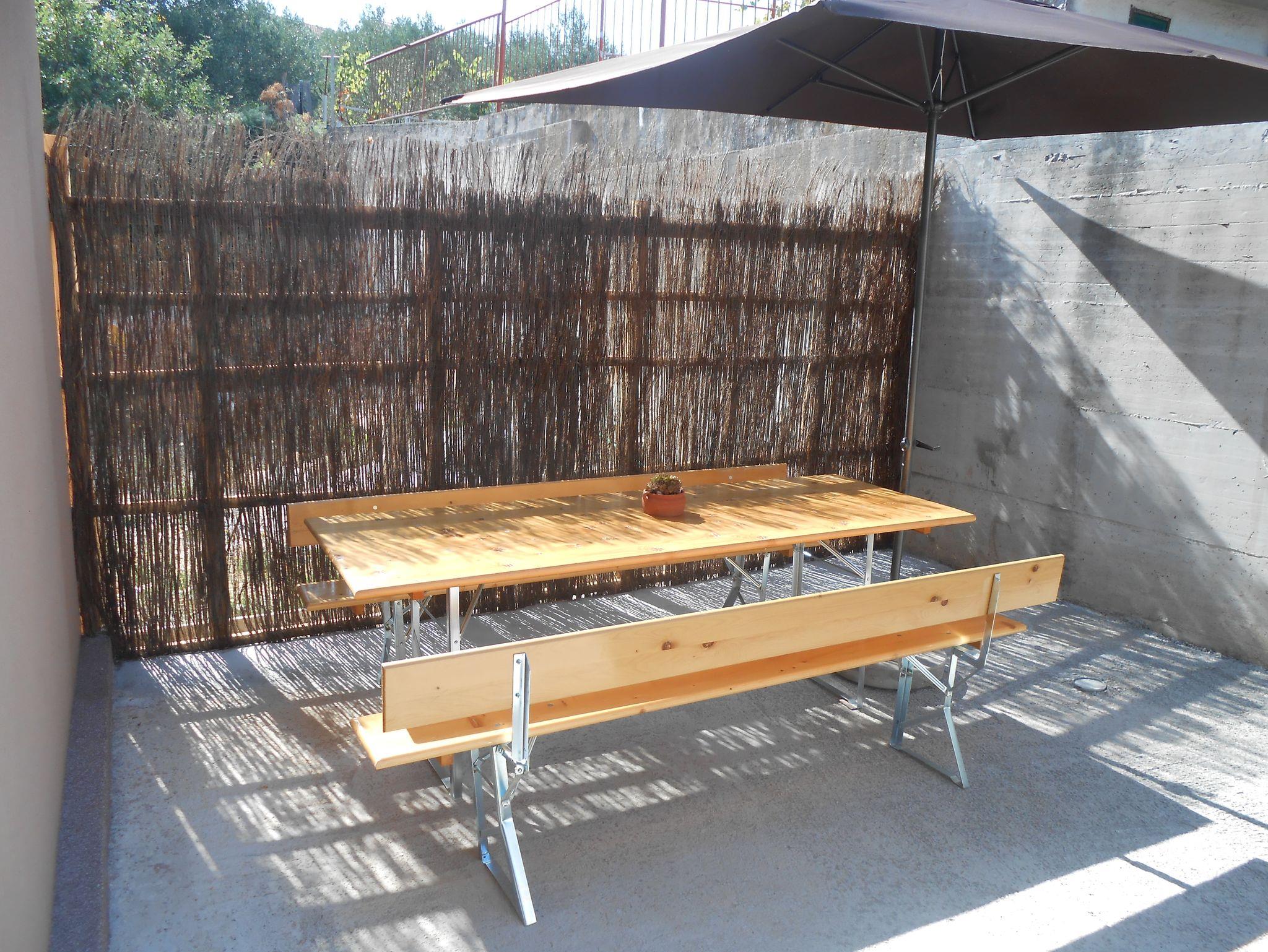 Umgebung des Objekts (Ordentlich), Hof (300m2, Sitzbereich), Parkplatz (Anzahl der Parkplätze: 5, Entfernung vom Objekt: im Hof), Grill: gemeinsam, WiFi Internet, Wäschewaschen, Föhn, Bügeleisen, Bügelbrett, Sonnenschirm