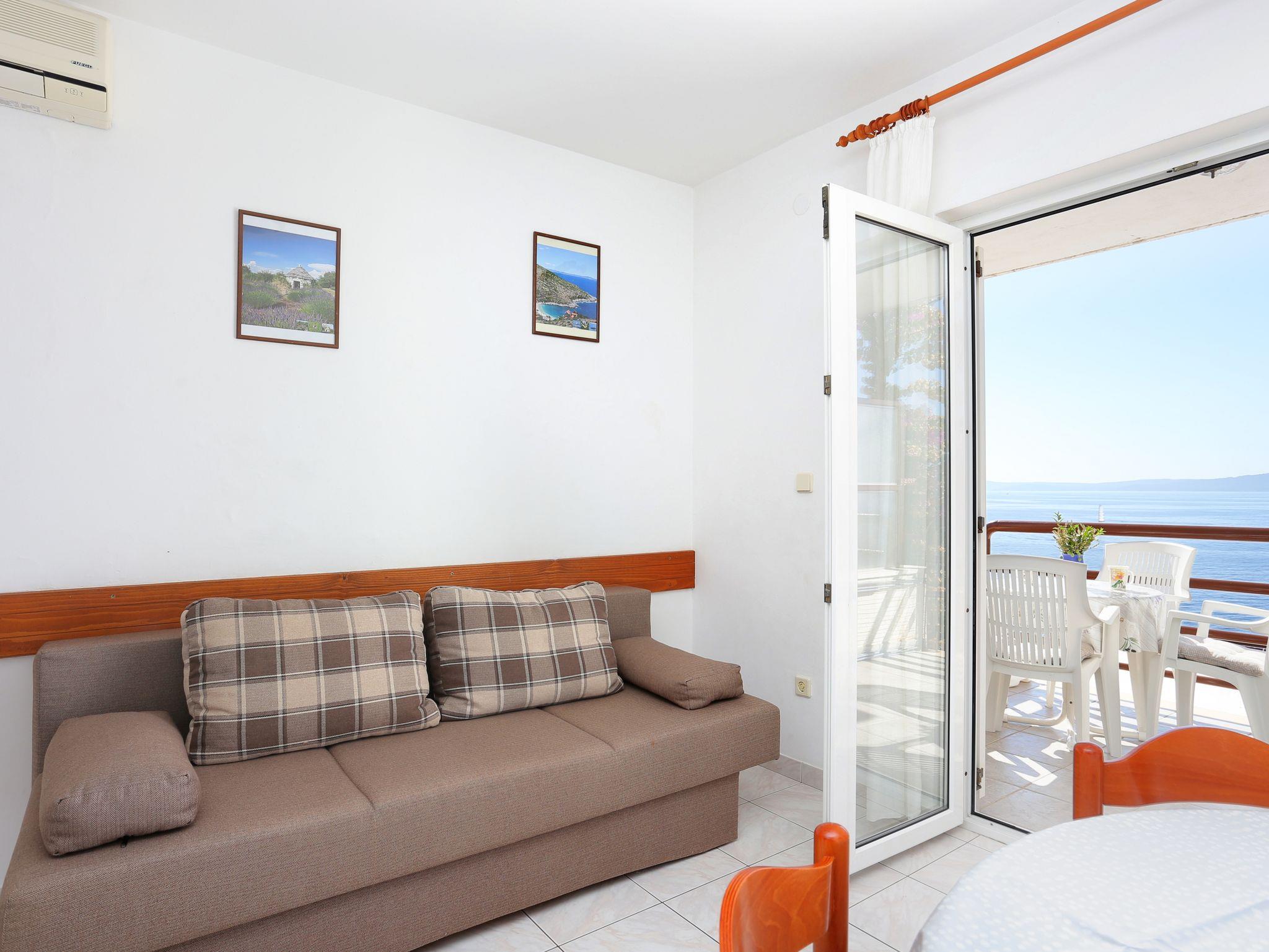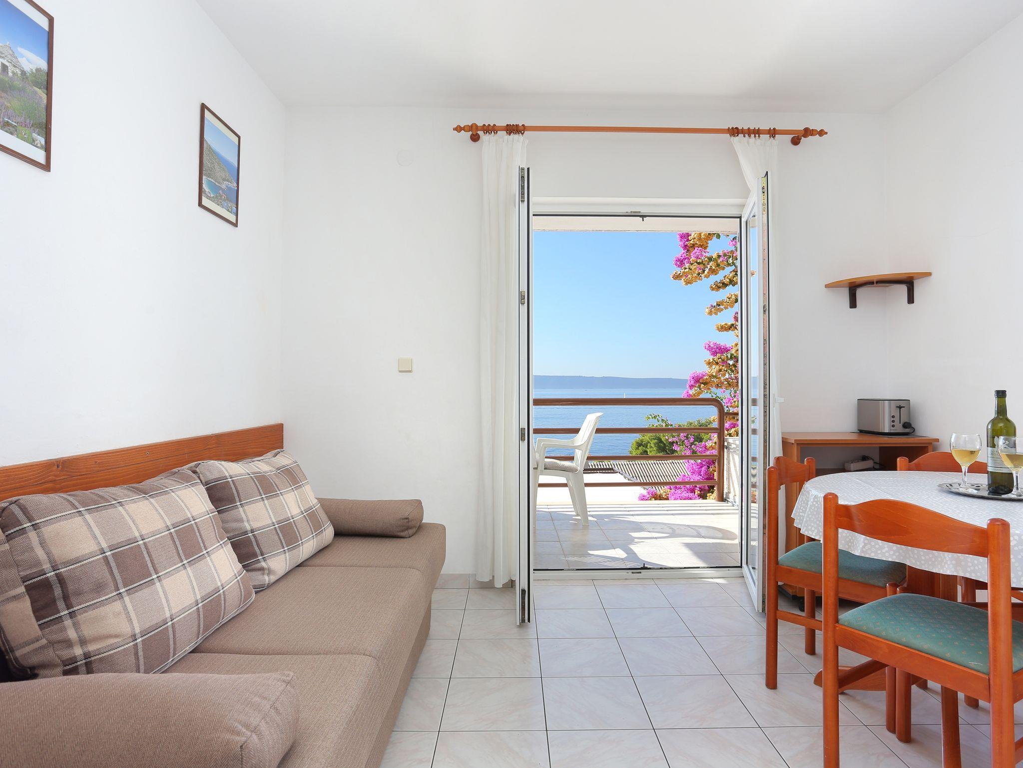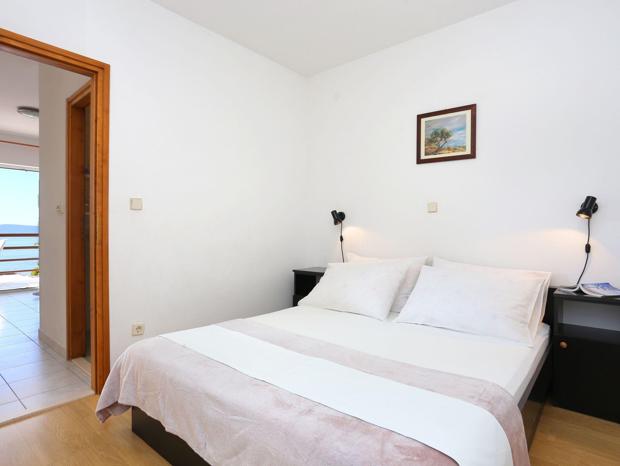 Ferienwohnung bietet Platz für 4 Gäste. Die Betten sind in Schlafzimmern, die es 1 gibt, und in Wohnzimmer, innerhalb einer Gesamtfläche von 33m2, angeordnet. Die Gäste haben eine eigene Terrasse zur Verfügung, auf der sie in warmen Sommernächten genießen können. Das Apartment bietet Meerblick. Es ist erlaubt, Speisen auf dem Gemeinschafts-Grill vorzubereiten. IM PREIS INBEGRIFFEN: Kurtaxe, Endreinigung, Klimatisierung, Parkplatz, Internet, Zusatzbett, Sonnenschirm. VERBINDLICHE ZUSÄTZLICHE KOSTEN: Aufzahlung für Kurzaufenthalte (prozentualer Zuschlag pro Nächtigungsanzahl: 30% - 1, 20% - 2, 10% - 3). Die Verfügbarkeit zusätzlicher Dienstleistungen in Ihrem reservierten Termin und die Preise derselben (falls nicht aufgeführt) müssen im Voraus überprüft werden. Zusätzliche Dienstleistungen die in der Zahlungsaufforderung nicht aufgeführt sind werden direkt beim Vermieter bezahlt, angenommen der Gast nutzt auch diese. Ermäßigung auf den Grundpreis: Gratistag 28=25 (bei einem Aufenthalt von 28 oder mehr Tagen erhalten Sie 3 kostenlose Tage für den Aufenthalt bis 31.12.26).
