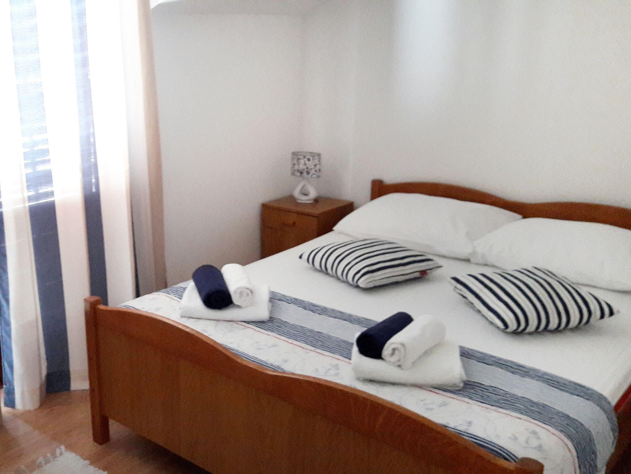 Ferienwohnung bietet Platz für 4 Gäste. Die Betten sind in Schlafzimmern, die es 1 gibt, und in Wohnzimmer, innerhalb einer Gesamtfläche von 41m2, angeordnet. Die Gäste haben eine eigene Terrasse zur Verfügung, auf der sie in warmen Sommernächten genießen können. Das Apartment bietet Meerblick. Es ist erlaubt, Speisen auf dem Gemeinschafts-Grill vorzubereiten. In der Unterkunftseinheit besteht die Möglichkeit des Mitbringens von Haustieren gegen Aufpreis. IM PREIS INBEGRIFFEN: Kurtaxe, Endreinigung, Klimatisierung, Parkplatz, Internet, Kinderbett, Föhn, Liegestühle. VERBINDLICHE ZUSÄTZLICHE KOSTEN: Aufzahlung für Kurzaufenthalte (prozentualer Zuschlag pro Nächtigungsanzahl: 30% - 1, 20% - 2, 10% - 3). UNVERBINDLICHE ZUSÄTZLICHE KOSTEN: Haustiere (10,00 € pro Nacht). Die Verfügbarkeit zusätzlicher Dienstleistungen in Ihrem reservierten Termin und die Preise derselben (falls nicht aufgeführt) müssen im Voraus überprüft werden. Zusätzliche Dienstleistungen die in der Zahlungsaufforderung nicht aufgeführt sind werden direkt beim Vermieter bezahlt, angenommen der Gast nutzt auch diese. Ermäßigung auf den Grundpreis: Gratistag 21=19 (bei einem Aufenthalt von 21 Tagen oder mehr erhalten Sie 2 Gratistage für den Aufenthalt bis 31.12.26).