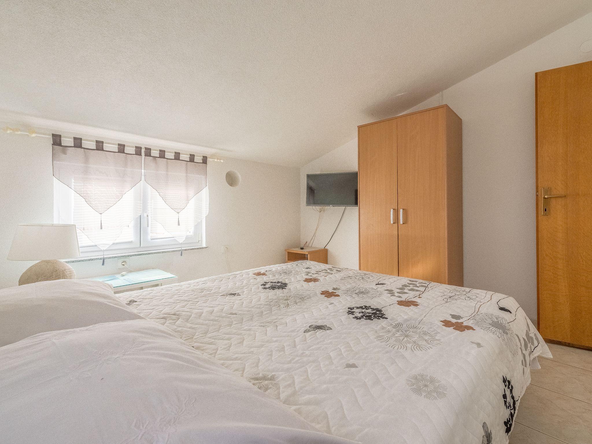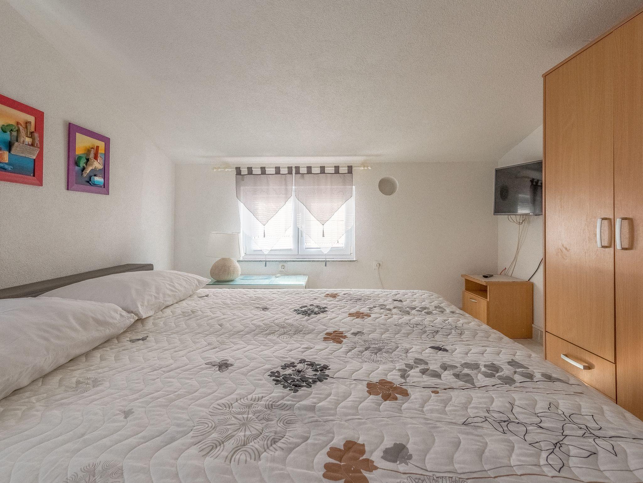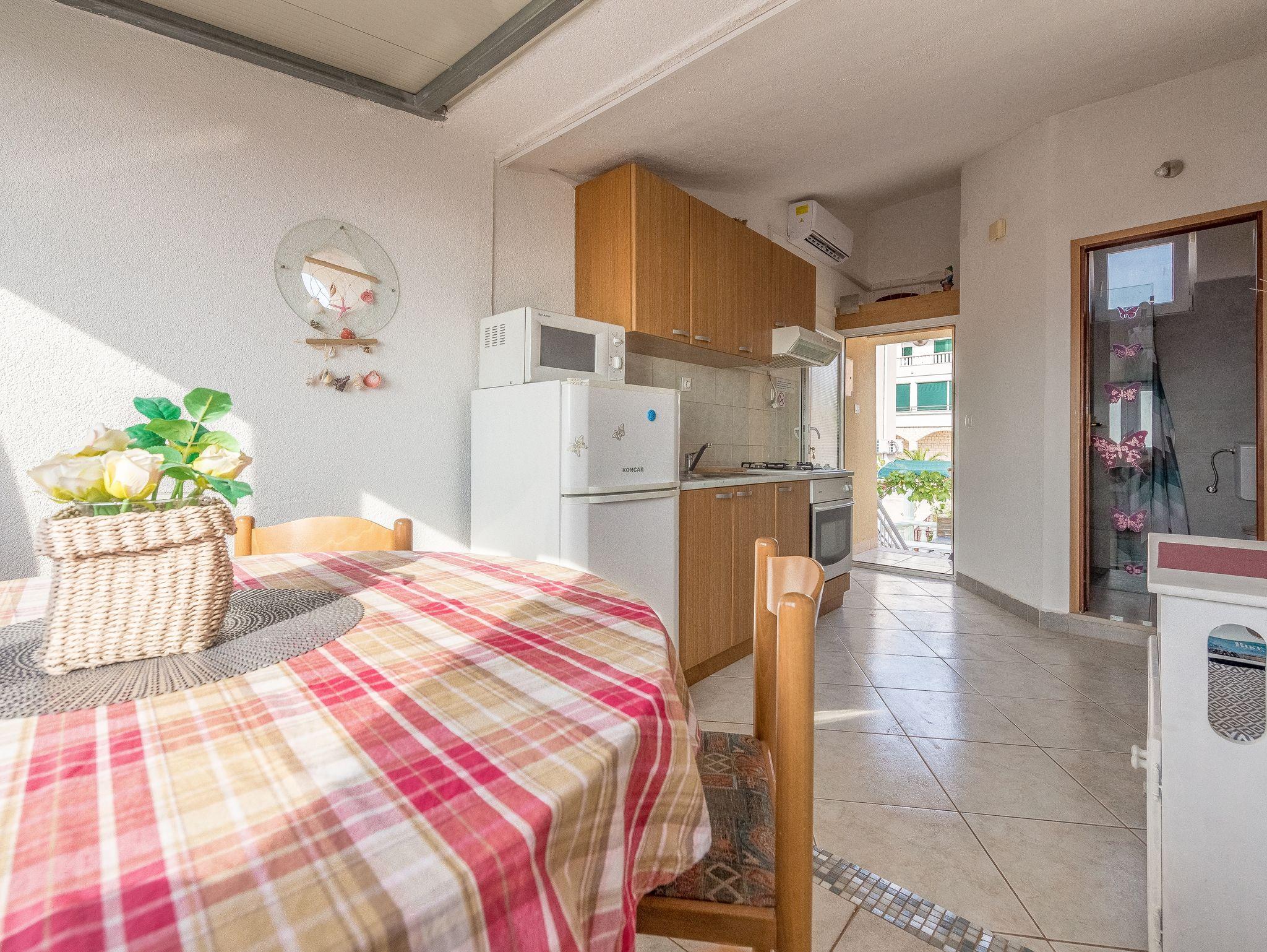 Ferienwohnung bietet Platz für 4 Gäste. Die Betten sind in Schlafzimmern, die es 2 gibt, innerhalb einer Gesamtfläche von 33m2, angeordnet. Die Gäste haben eine eigene Terrasse zur Verfügung, auf der sie in warmen Sommernächten genießen können. Das Apartment bietet Meerblick. Es ist erlaubt, Speisen auf dem Gemeinschafts-Grill vorzubereiten. In der Unterkunftseinheit besteht die Möglichkeit des Mitbringens von Haustieren gegen Aufpreis. Unterkunftseinheit hat Räume, die von dem Rest der Einheit abgetrennt werden. IM PREIS INBEGRIFFEN: Kurtaxe, Endreinigung, Klimatisierung, Parkplatz, Internet, Wäschewaschen, Bügeleisen, Bügelbrett, Föhn. VERBINDLICHE ZUSÄTZLICHE KOSTEN: Aufzahlung für Kurzaufenthalte (prozentualer Zuschlag pro Nächtigungsanzahl: 30% - 1, 20% - 2, 10% - 3). UNVERBINDLICHE ZUSÄTZLICHE KOSTEN: Haustiere (7,00 € pro Nacht). Die Verfügbarkeit zusätzlicher Dienstleistungen in Ihrem reservierten Termin und die Preise derselben (falls nicht aufgeführt) müssen im Voraus überprüft werden. Zusätzliche Dienstleistungen die in der Zahlungsaufforderung nicht aufgeführt sind werden direkt beim Vermieter bezahlt, angenommen der Gast nutzt auch diese.