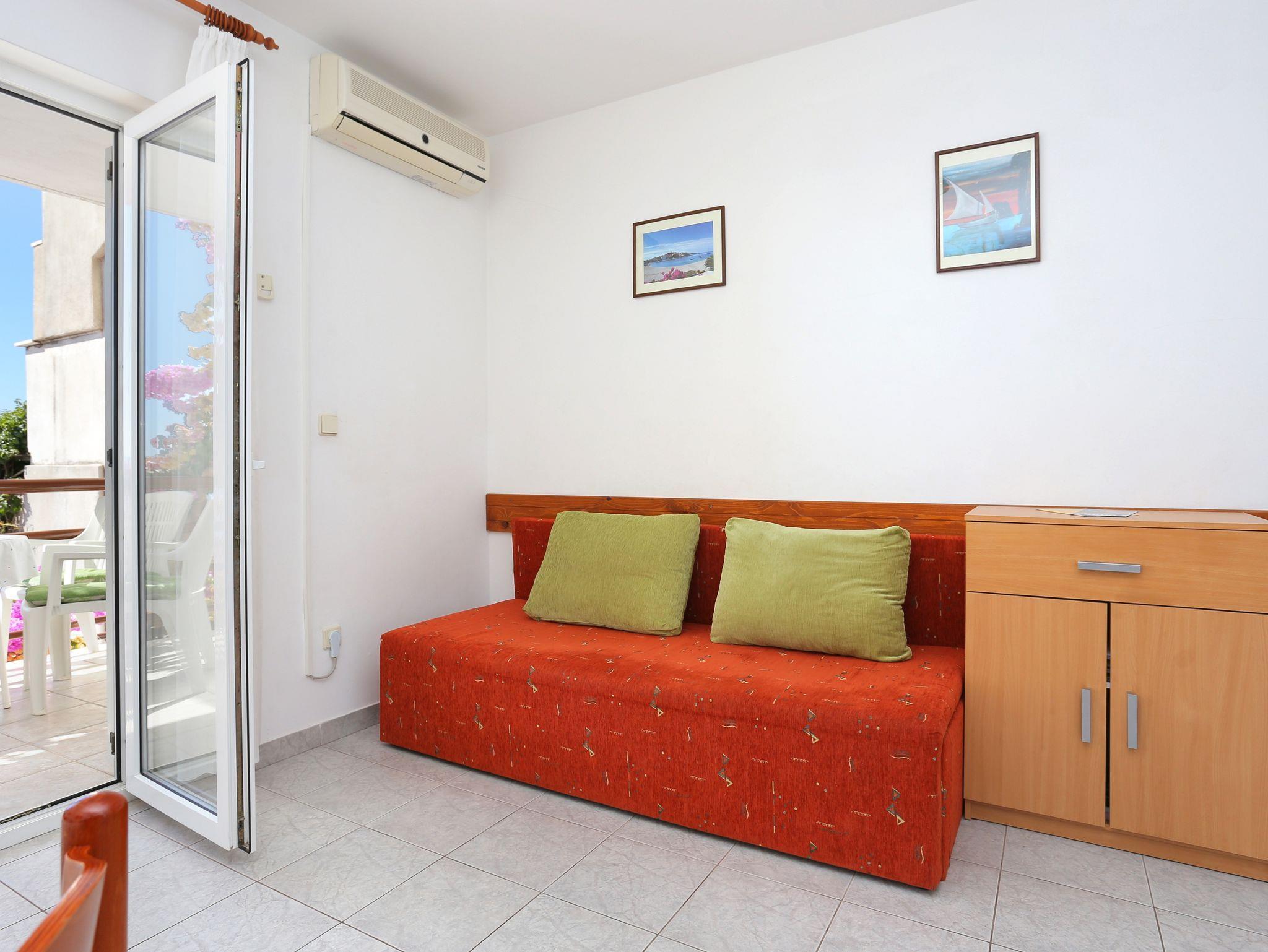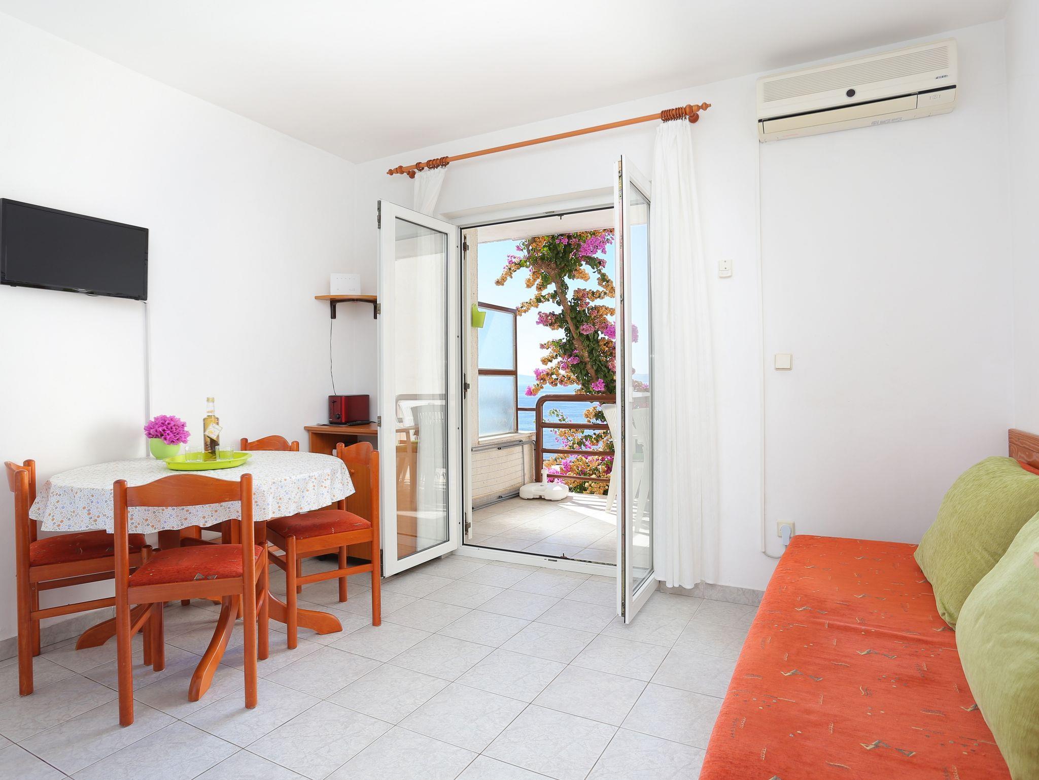 Ferienwohnung bietet Platz für 4 Gäste. Die Betten sind in Schlafzimmern, die es 1 gibt, und in Wohnzimmer, innerhalb einer Gesamtfläche von 29m2, angeordnet. Die Gäste haben eine eigene Terrasse zur Verfügung, auf der sie in warmen Sommernächten genießen können. Das Apartment bietet Meerblick. Es ist erlaubt, Speisen auf dem Gemeinschafts-Grill vorzubereiten. IM PREIS INBEGRIFFEN: Kurtaxe, Endreinigung, Klimatisierung, Parkplatz, Internet, Sonnenschirm. VERBINDLICHE ZUSÄTZLICHE KOSTEN: Aufzahlung für Kurzaufenthalte (prozentualer Zuschlag pro Nächtigungsanzahl: 30% - 1, 20% - 2, 10% - 3). Die Verfügbarkeit zusätzlicher Dienstleistungen in Ihrem reservierten Termin und die Preise derselben (falls nicht aufgeführt) müssen im Voraus überprüft werden. Zusätzliche Dienstleistungen die in der Zahlungsaufforderung nicht aufgeführt sind werden direkt beim Vermieter bezahlt, angenommen der Gast nutzt auch diese. Ermäßigung auf den Grundpreis: Gratistag 28=25 (bei einem Aufenthalt von 28 oder mehr Tagen erhalten Sie 3 kostenlose Tage für den Aufenthalt bis 31.12.26).