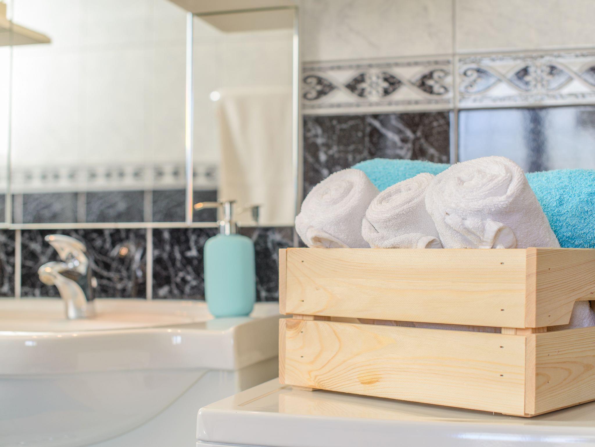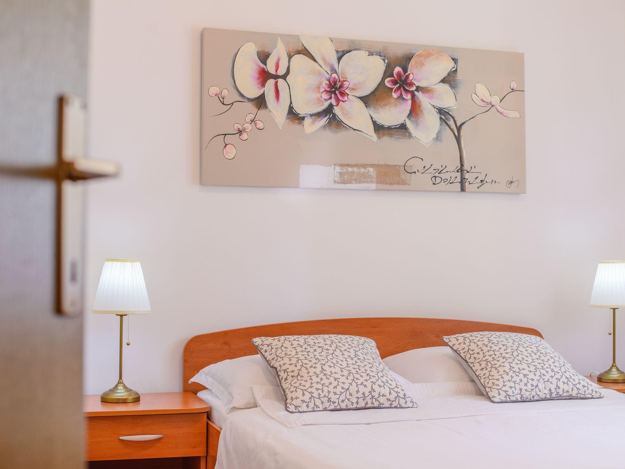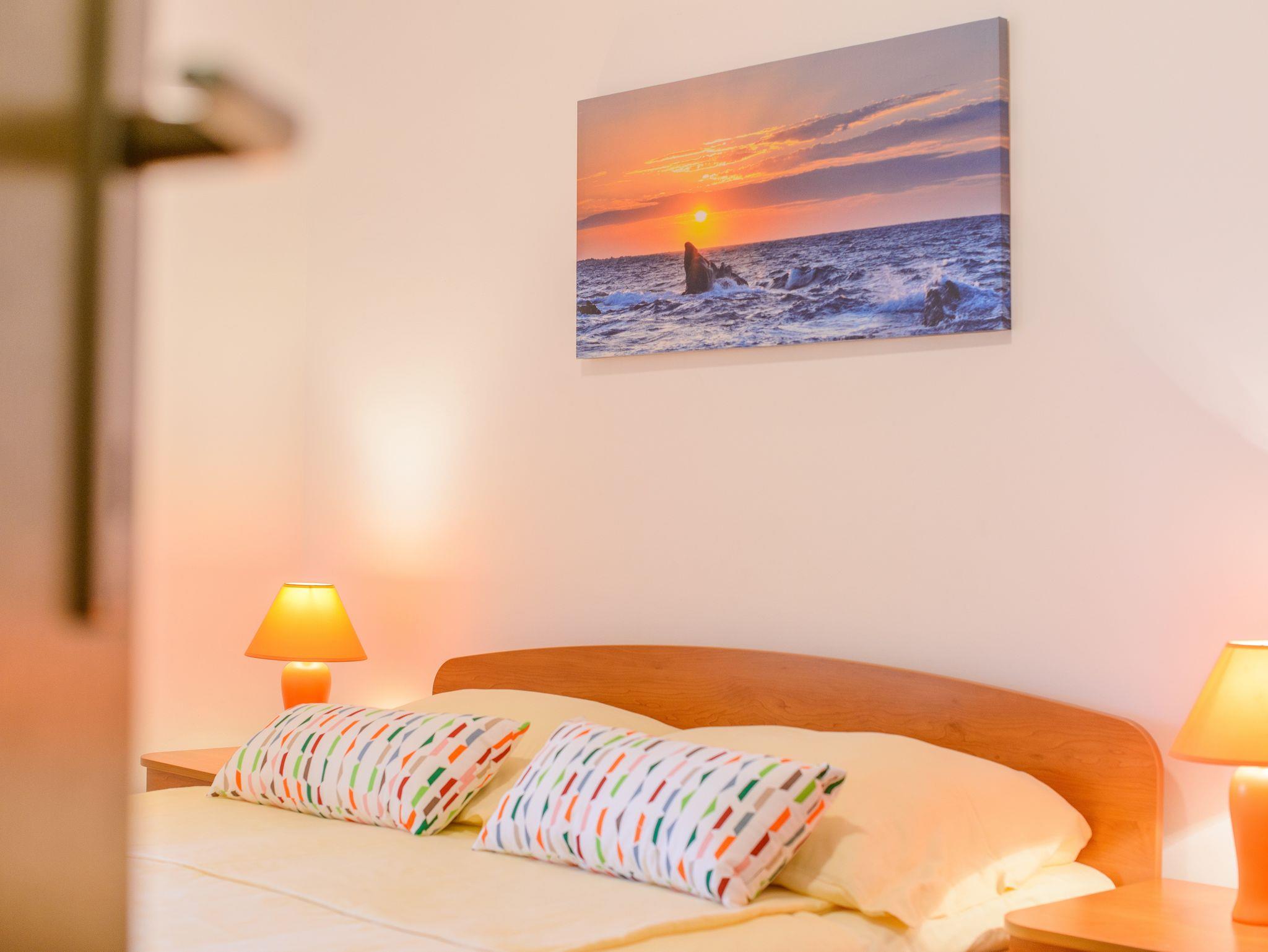 Ferienwohnung bietet Platz für 6 Gäste. Die Betten sind in Schlafzimmern, die es 2 gibt, und in Wohnzimmer, innerhalb einer Gesamtfläche von 68m2, angeordnet. Die Gäste haben eine eigene Terrasse zur Verfügung, auf der sie in warmen Sommernächten genießen können. Das Apartment bietet Meerblick. Es ist erlaubt, Speisen auf dem Gemeinschafts-Grill vorzubereiten. Während ihres Aufenthalts können Gäste das gemeinsam zur Nutzung stehende Schwimmbad benutzen. IM PREIS INBEGRIFFEN: Kurtaxe, Endreinigung, Klimatisierung, Zentralheizung, Pool, Parkplatz, Internet, Kinderbett, Bügeleisen, Bügelbrett, Föhn. Die Verfügbarkeit zusätzlicher Dienstleistungen in Ihrem reservierten Termin und die Preise derselben (falls nicht aufgeführt) müssen im Voraus überprüft werden. Zusätzliche Dienstleistungen die in der Zahlungsaufforderung nicht aufgeführt sind werden direkt beim Vermieter bezahlt, angenommen der Gast nutzt auch diese.