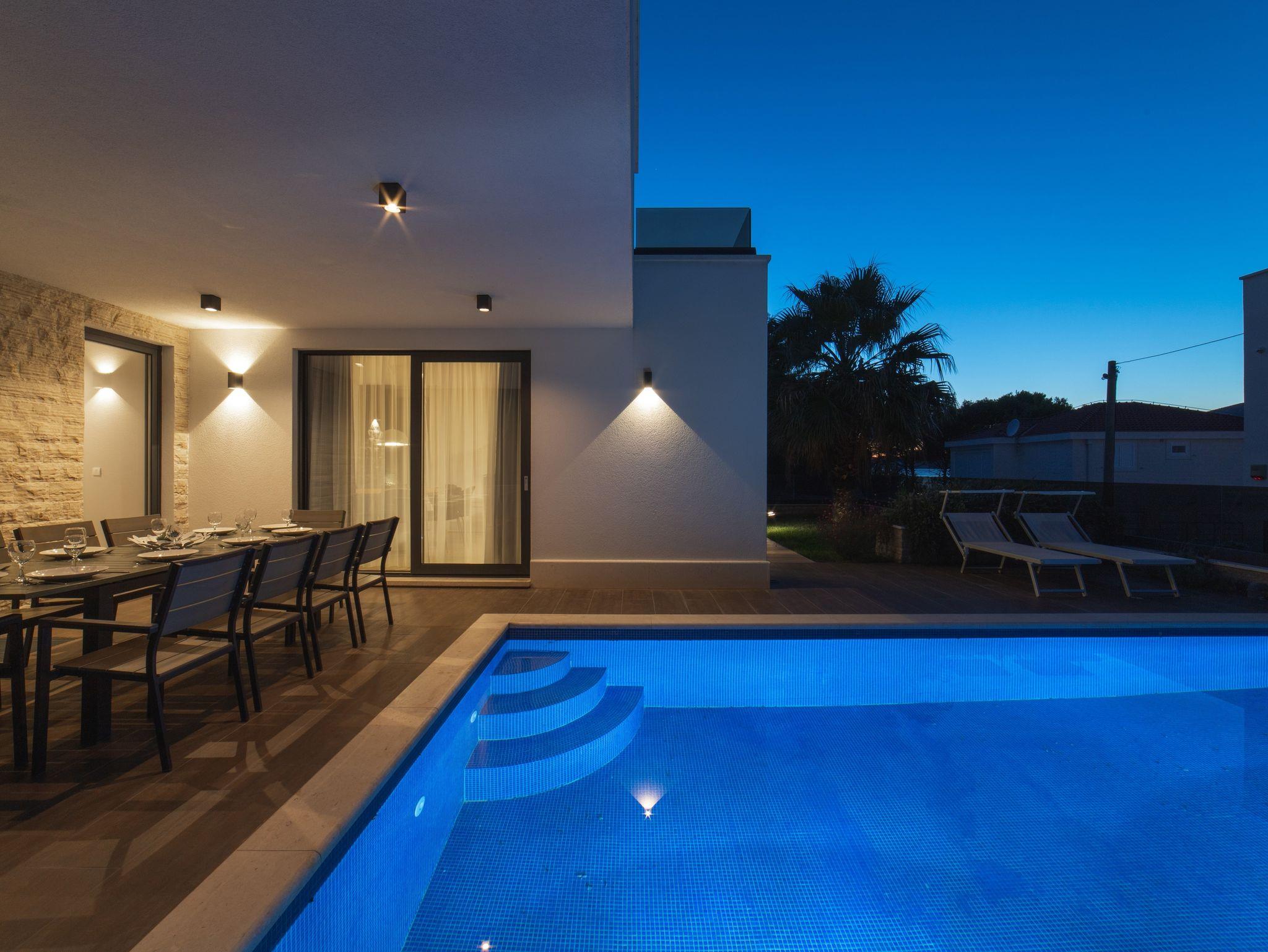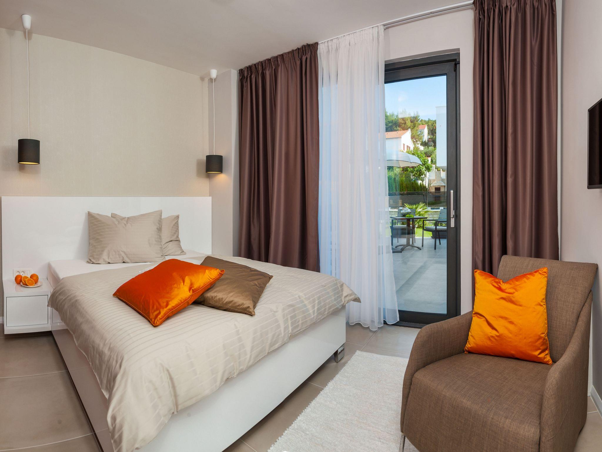 Haus bietet Platz für 11 Gäste. Die Betten sind in Schlafzimmern, die es 6 gibt, innerhalb einer Gesamtfläche von 185m2, angeordnet. Die Gäste haben eine eigene Terrasse zur Verfügung, auf der sie in warmen Sommernächten genießen können. Das Haus bietet Meerblick. Für vollen Genuss und Entspannung gibt es einen privaten Grill für Gäste dieser Unterkunft. Während ihres Aufenthalts können sich Gäste im privaten Schwimmbad entspannen. IM PREIS INBEGRIFFEN: Kurtaxe, Endreinigung, Klimatisierung, Pool, Parkplatz, Internet, Bootsanlegeplatz, Fahrrad, Kinderbett, Bügeleisen, Bügelbrett, Föhn. UNVERBINDLICHE ZUSÄTZLICHE KOSTEN: Zusatzbett (50,00 € pro Nacht). Die Verfügbarkeit zusätzlicher Dienstleistungen in Ihrem reservierten Termin und die Preise derselben (falls nicht aufgeführt) müssen im Voraus überprüft werden. Zusätzliche Dienstleistungen die in der Zahlungsaufforderung nicht aufgeführt sind werden direkt beim Vermieter bezahlt, angenommen der Gast nutzt auch diese.