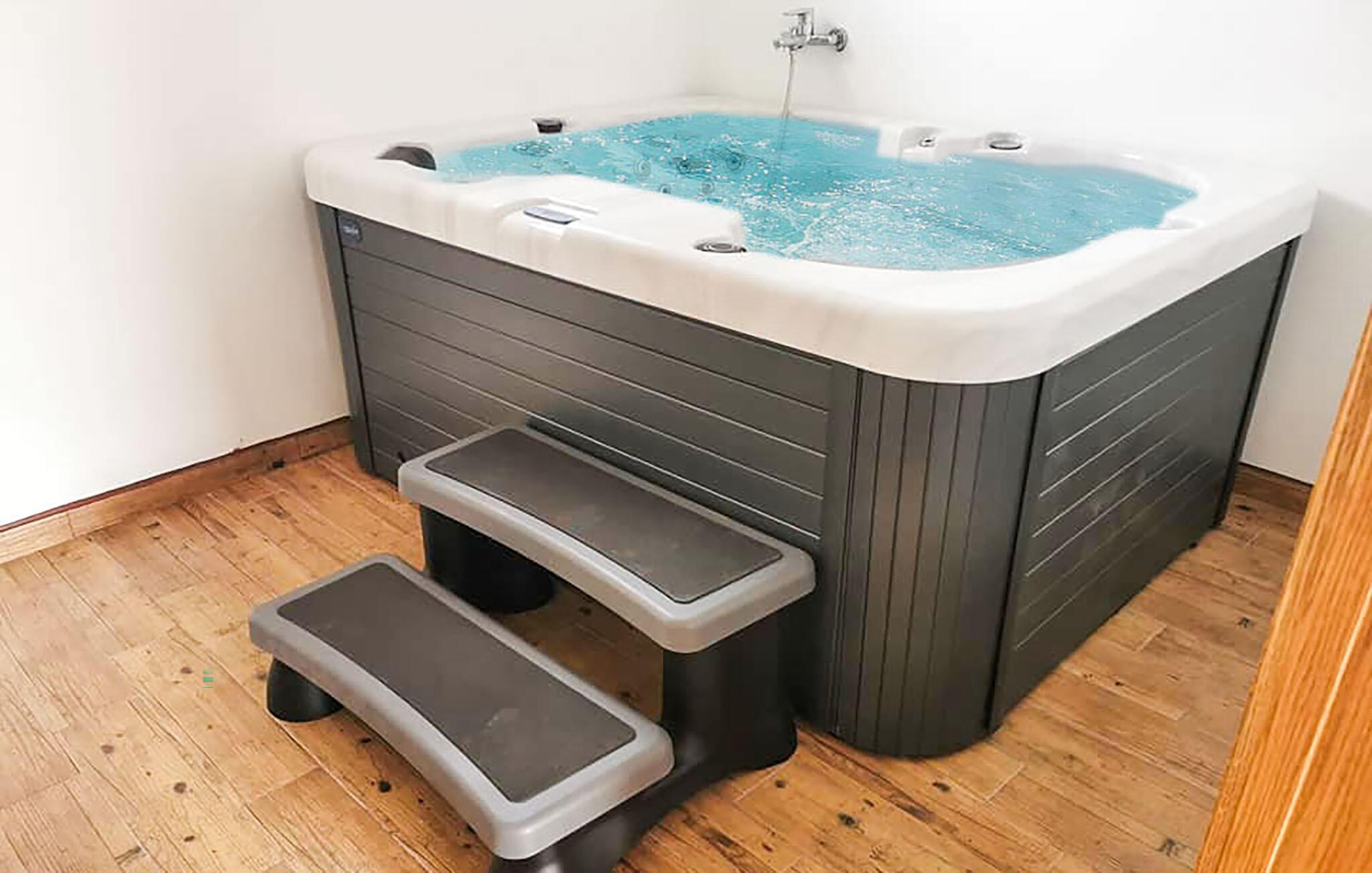 Nyt en avslappende ferie i dette romslige feriehuset med boblebad, badstue og stor hage.