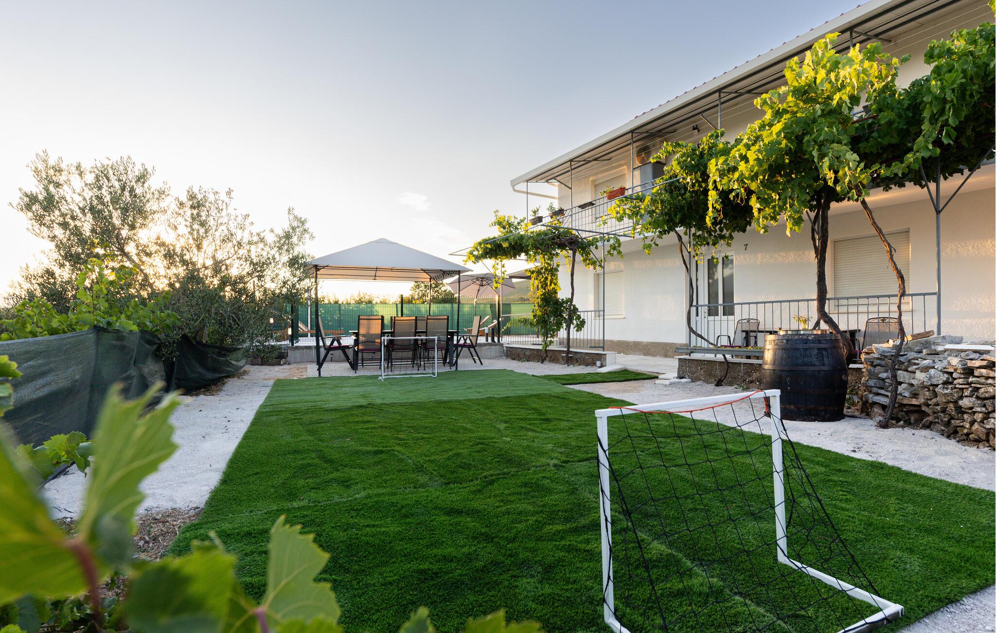 Den allsidige, inngjerdede tomten vil lokke barna til å leke i frisk luft. Ta en forfriskende dukkert i det vakre bassenget, unn deg avslappende timer på solsengen og nyt et stemningsfullt måltid under pergolaen i solnedgangen.