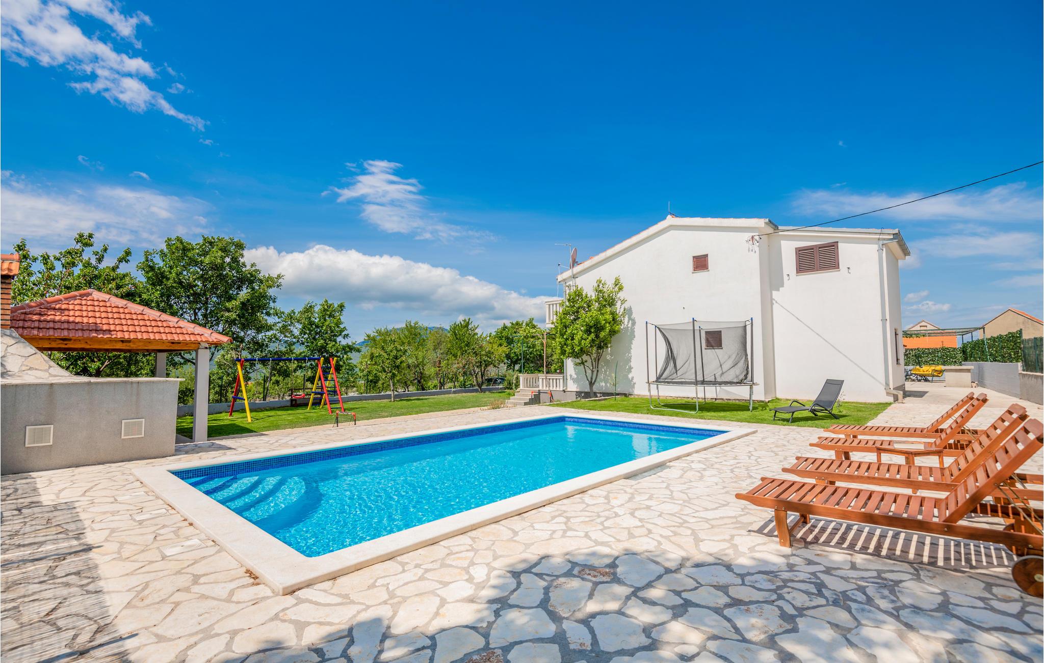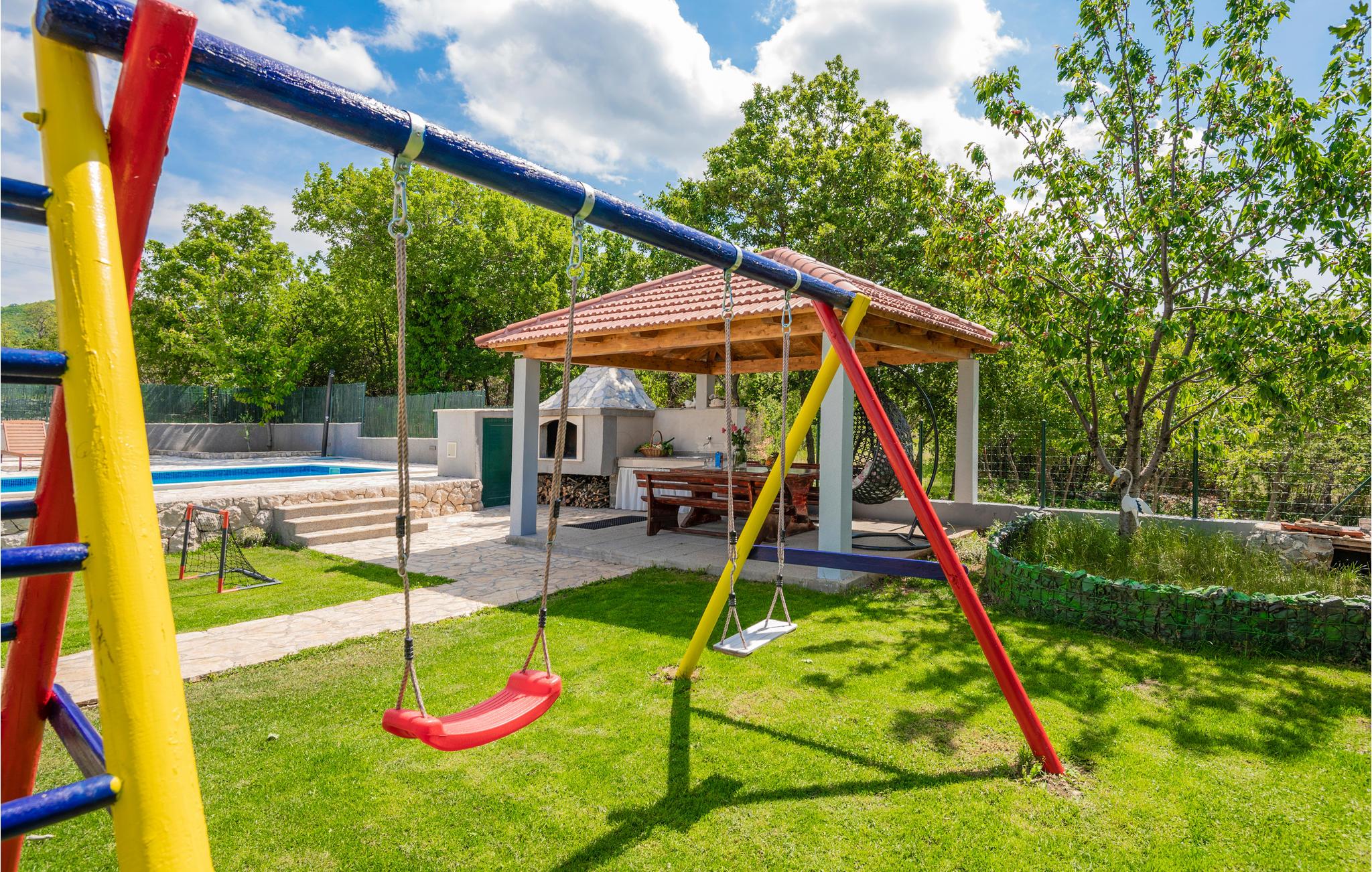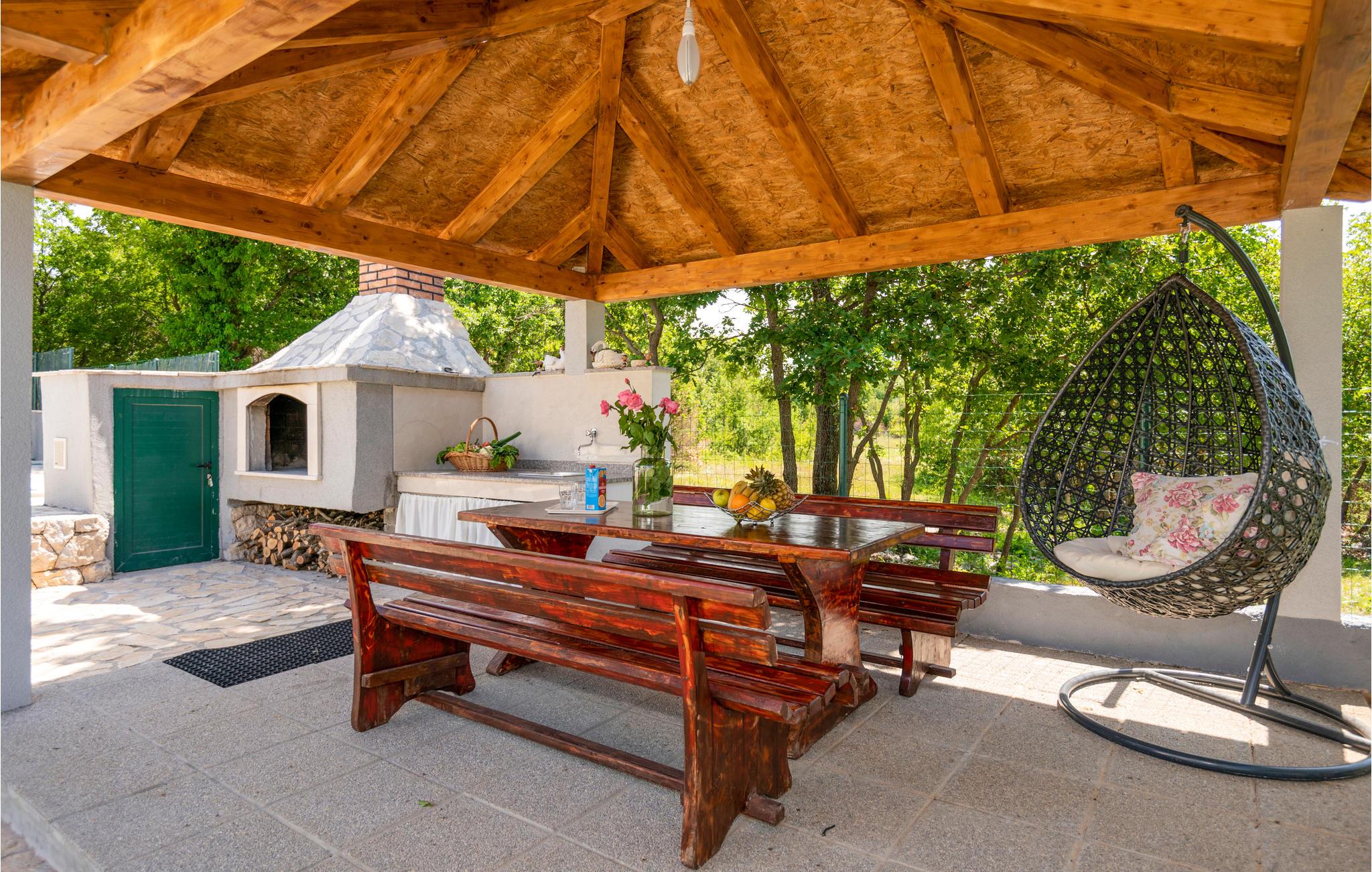 Dette enkelt innredede feriehuset med basseng ligger på en høyde i den lille landsbyen Blato Na Cetini, omgitt av natur og ikke langt fra den historiske byen Omi. Her kan du forfriske deg i bassenget, nyte koselige grillkvelder og slappe av mens barna leker ubekymret. I Cetina-juvet finner du en rullesteinsstrand for bading, en restaurant, og du kan rafte på elven ca. 3,5 kilometer unna. Sandstranden på Omi-rivieraen ligger bare en halvtimes kjøretur unna. Finn avslapning i dette velsignede naturparadiset.