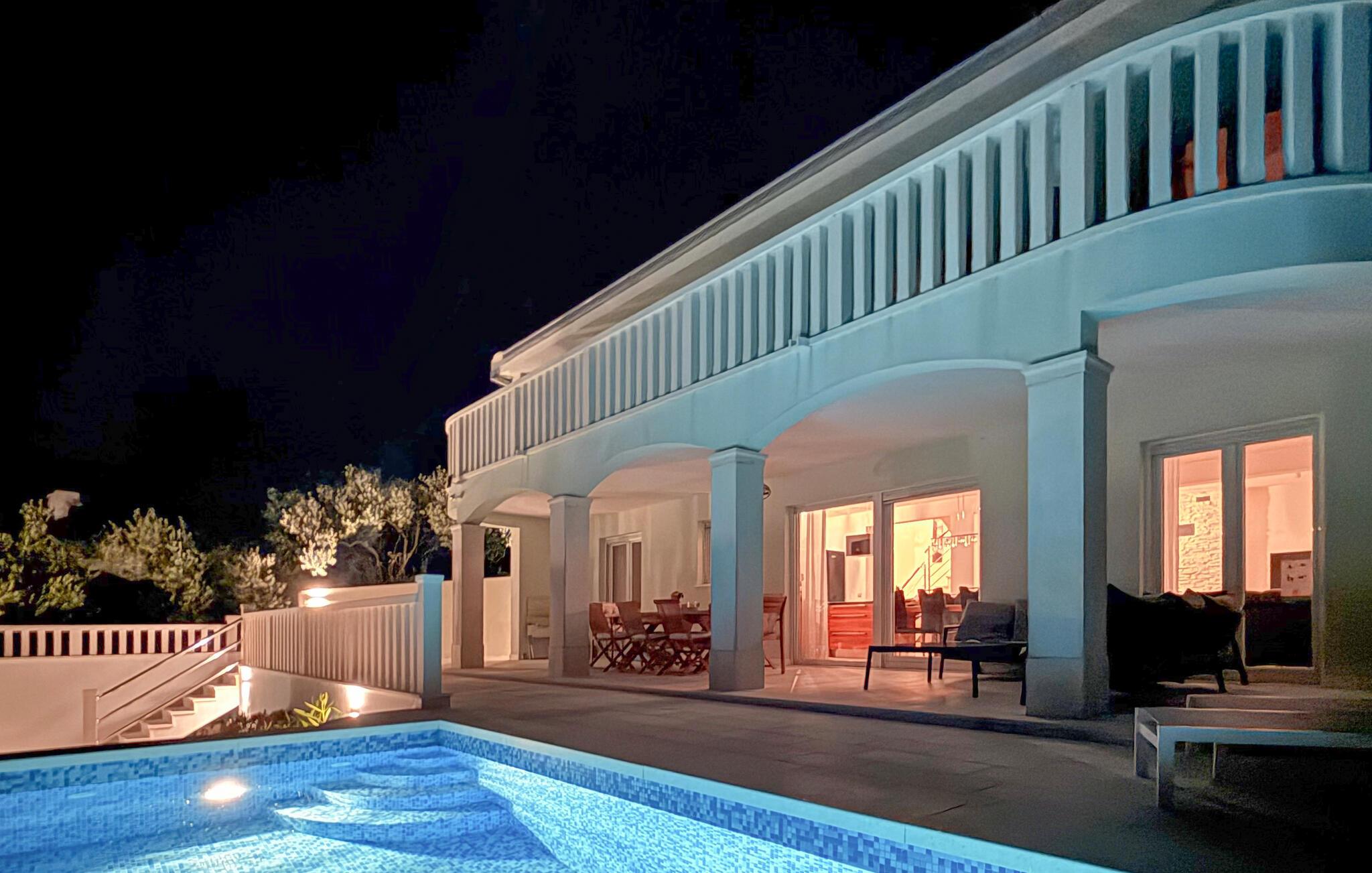 Åpne terrassedørene og senk deg ned i feriefølelsen. Slapp av ved bassenget med panoramautsikt over havet eller legg deg ned på solsengene. Dekk bordet under den overbygde terrassen og nyt en overdådig middag under åpen himmel. Tilbered deilige spesialiteter på grillen, og avrund dagen med et glass vin mens solen går ned.