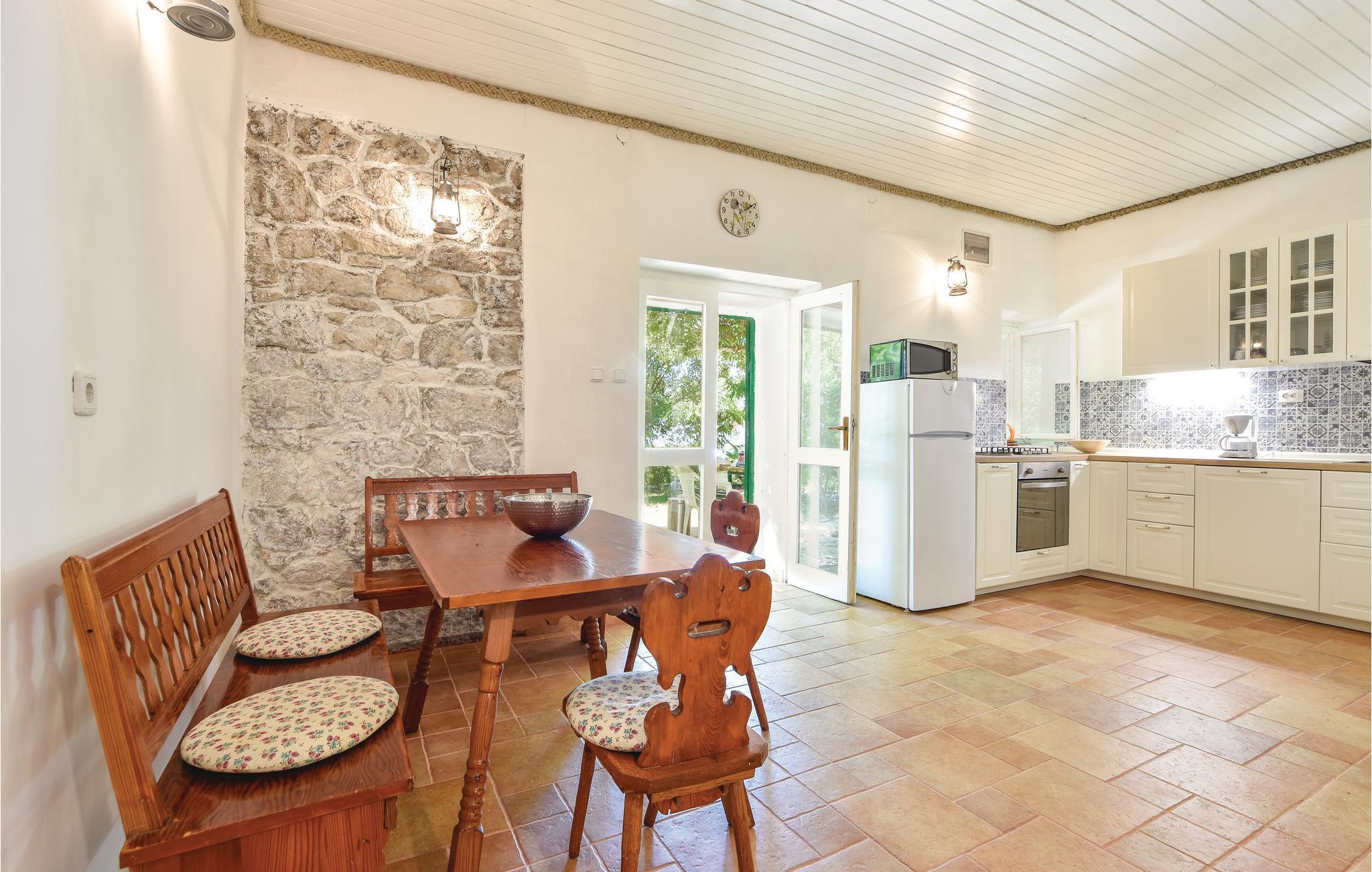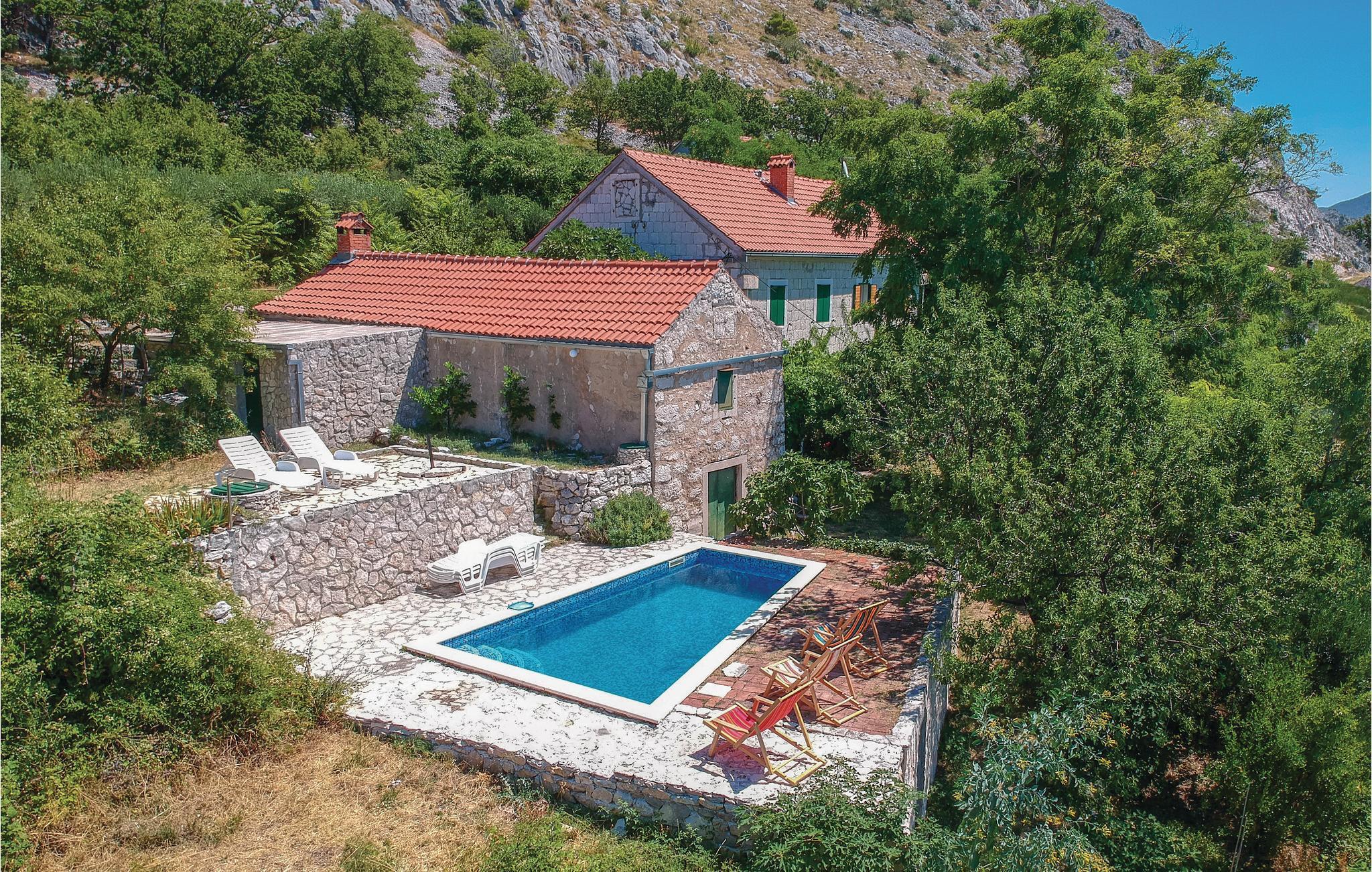 På en høyde med flott panoramautsikt over Omi-rivieraen ligger dette vakre feriehuset hvor du kan tilbringe en drømmeferie med dine kjære. Huset er enkelt og funksjonelt utstyrt, men i rolige og idylliske omgivelser med en stor hage. Det er et område for å slappe av på loftet. Ligger i en liten landsby og langt fra byens støy, er det ideelt for en familieferie. For aktive ferierende er det sykkelstier og turstier, samt mange aktiviteter på elven Cetina. Vakre strender og en rekke aktiviteter ligger 3 km unna.