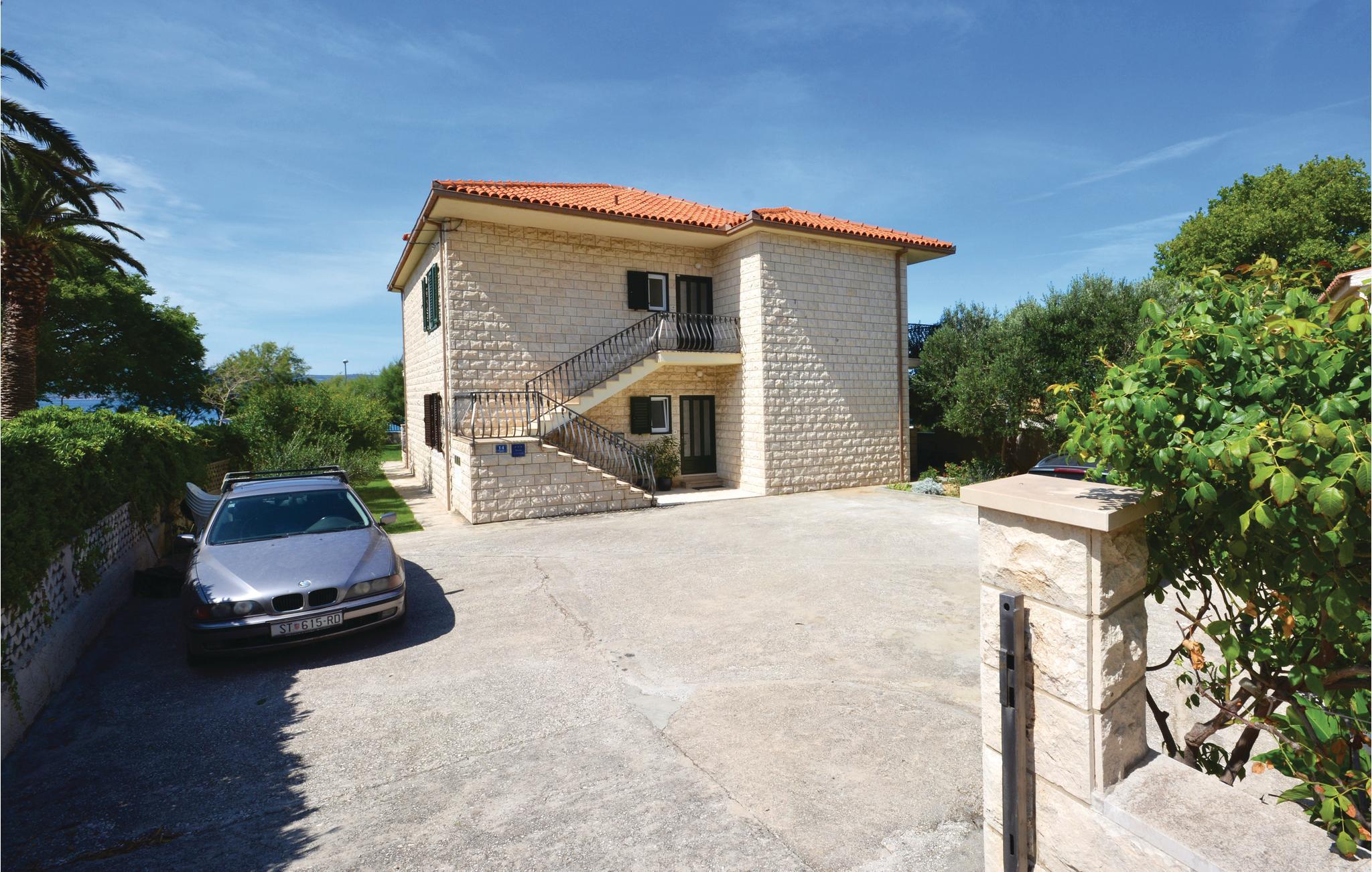 Dette feriehuset ligger rett ved stranden med en rolig strandkafé. Den består av 2 nesten identiske leiligheter forbundet med en utvendig trapp. De har en terrasse med tilgang til den velholdte hagen. For gjester som søker aktiv rekreasjon, er den nærliggende byen Omis virkelig perfekt. Det populære feriestedet Omis er kjent for sine mange aktive sportsaktiviteter.