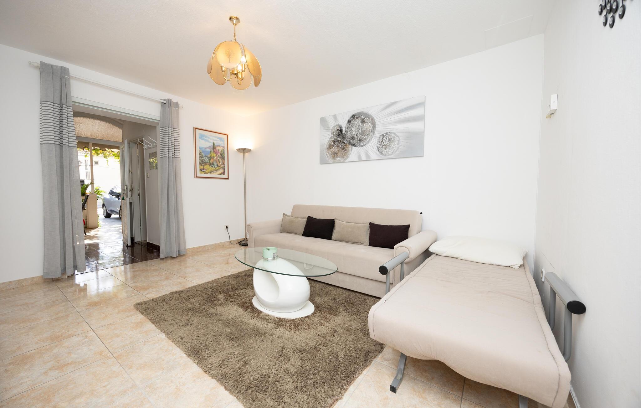 Tilbring din neste ferie i denne ferieleiligheten mellom Omis og Dugi Rat, og nyt den rolige beliggenheten nær stranden. Slapp av ved det felles bassenget, som er utstyrt med komfortable solsenger. Start dagen med en kaffe på terrassen og nyt ferien til det fulle. Leiligheten har en koselig stue hvor du kan slappe av i sofaen og nyte en film. Du kan også tilbringe sosiale kvelder på grillområdet utendørs og smake på lokale spesialiteter i en avslappet atmosfære.
