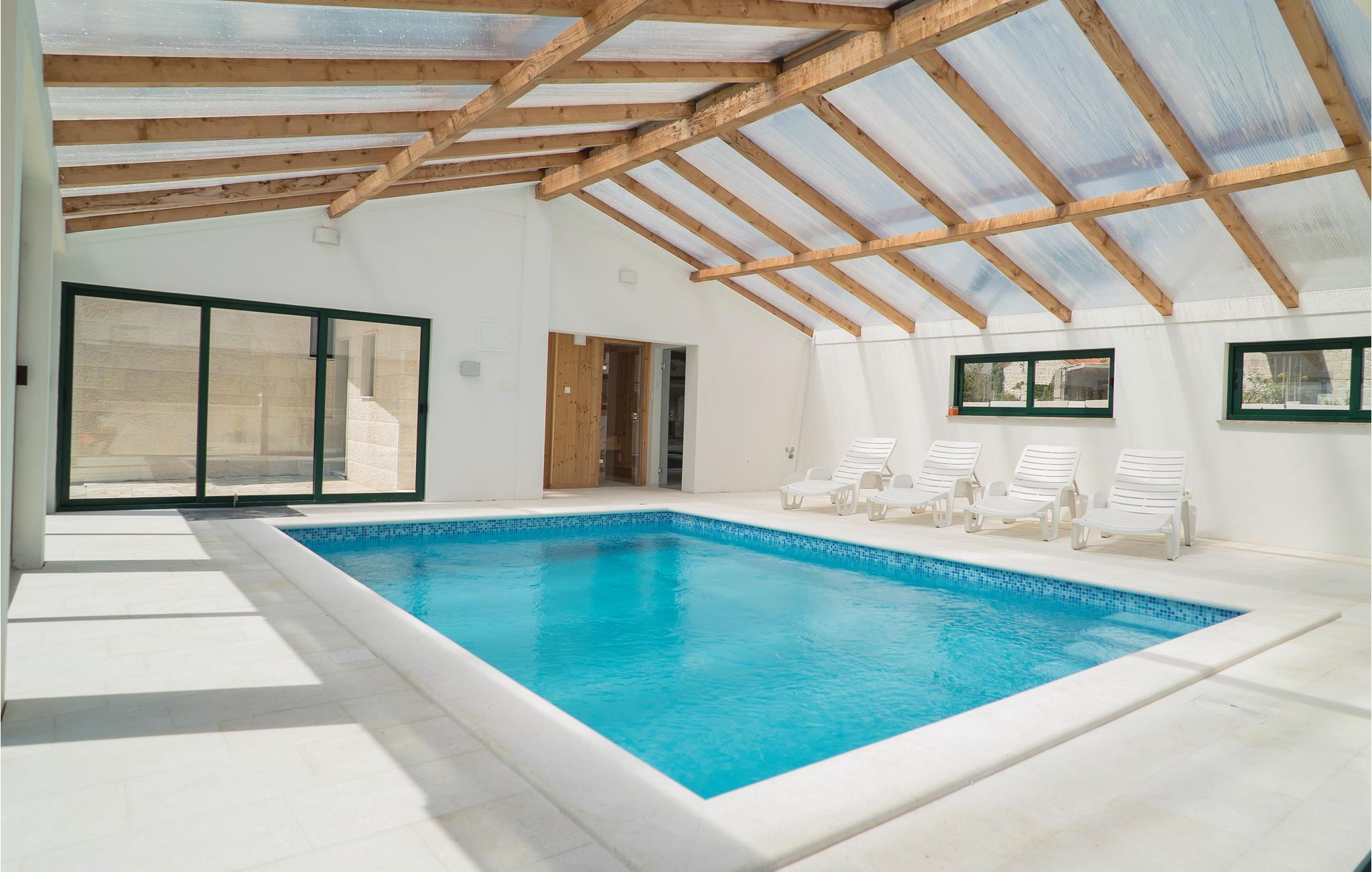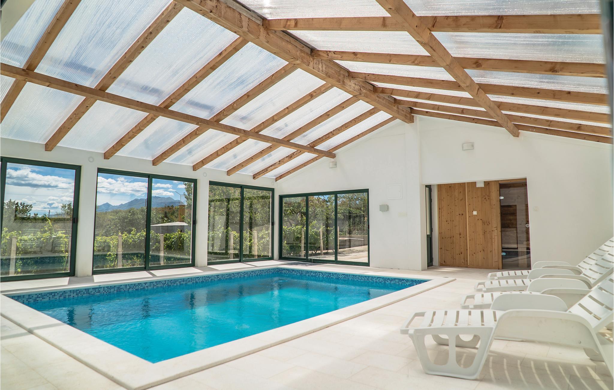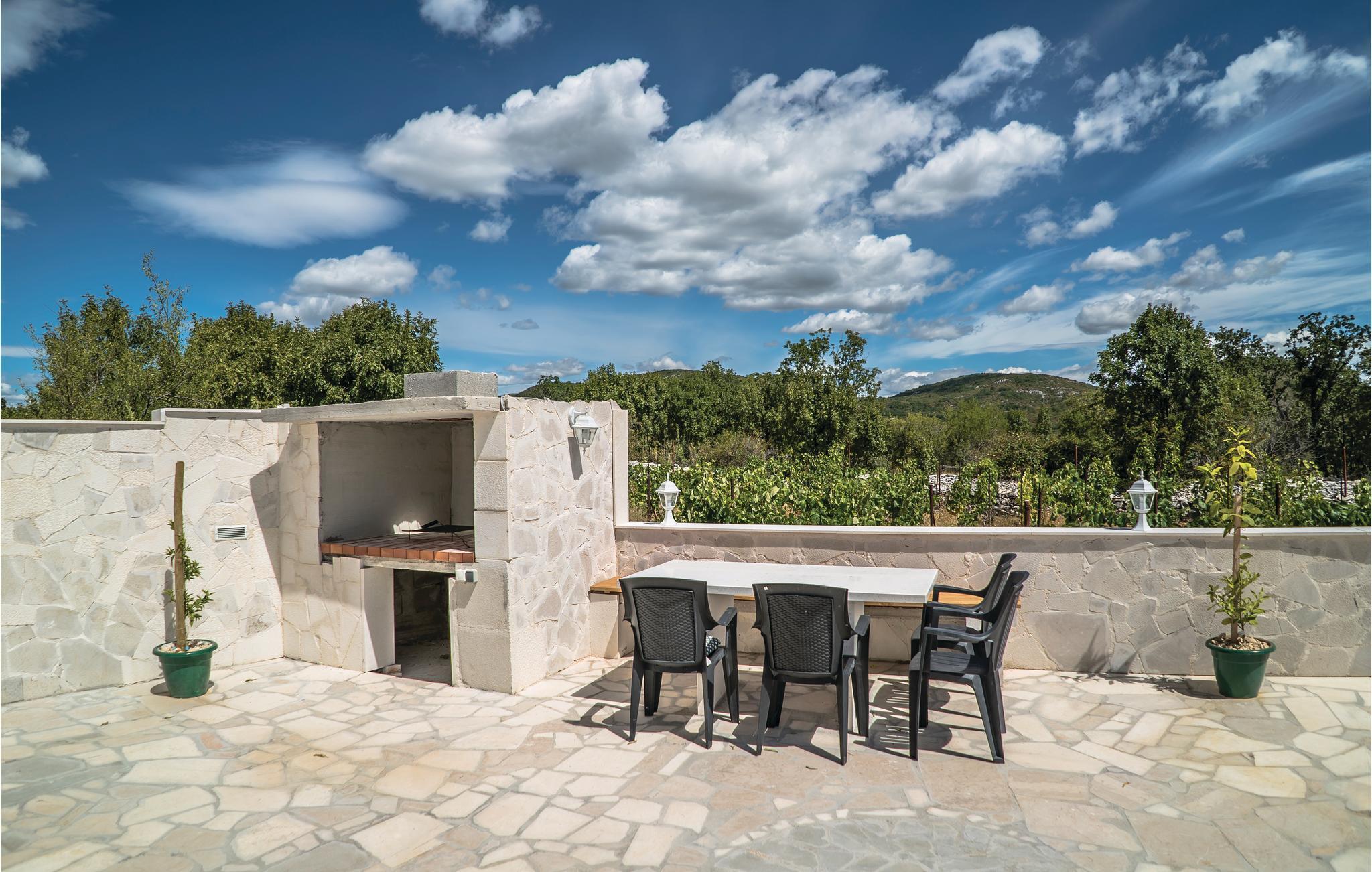 Dette vakre feriehuset ligger i den lille landsbyen Kreevo i innlandet av Omi. Boligen består av kjøkken, stue, bad og tre soverom (hvorav ett er et sammenhengende rom). Ved siden av huset er det et basseng, som kan varmes opp og dekkes til ved behov, en badstue og et annet bad. Tilbring hyggelige timer med familie eller venner på terrassen ved siden av bassenget, hvor du også kan tilberede deilige griller. Du finner rullesteinsstrender for bading eller rafting ved elven Cetina, ca. 3 km unna, samt rullesteinsstrender ved sjøen i Omi, ca. 15 km unna.