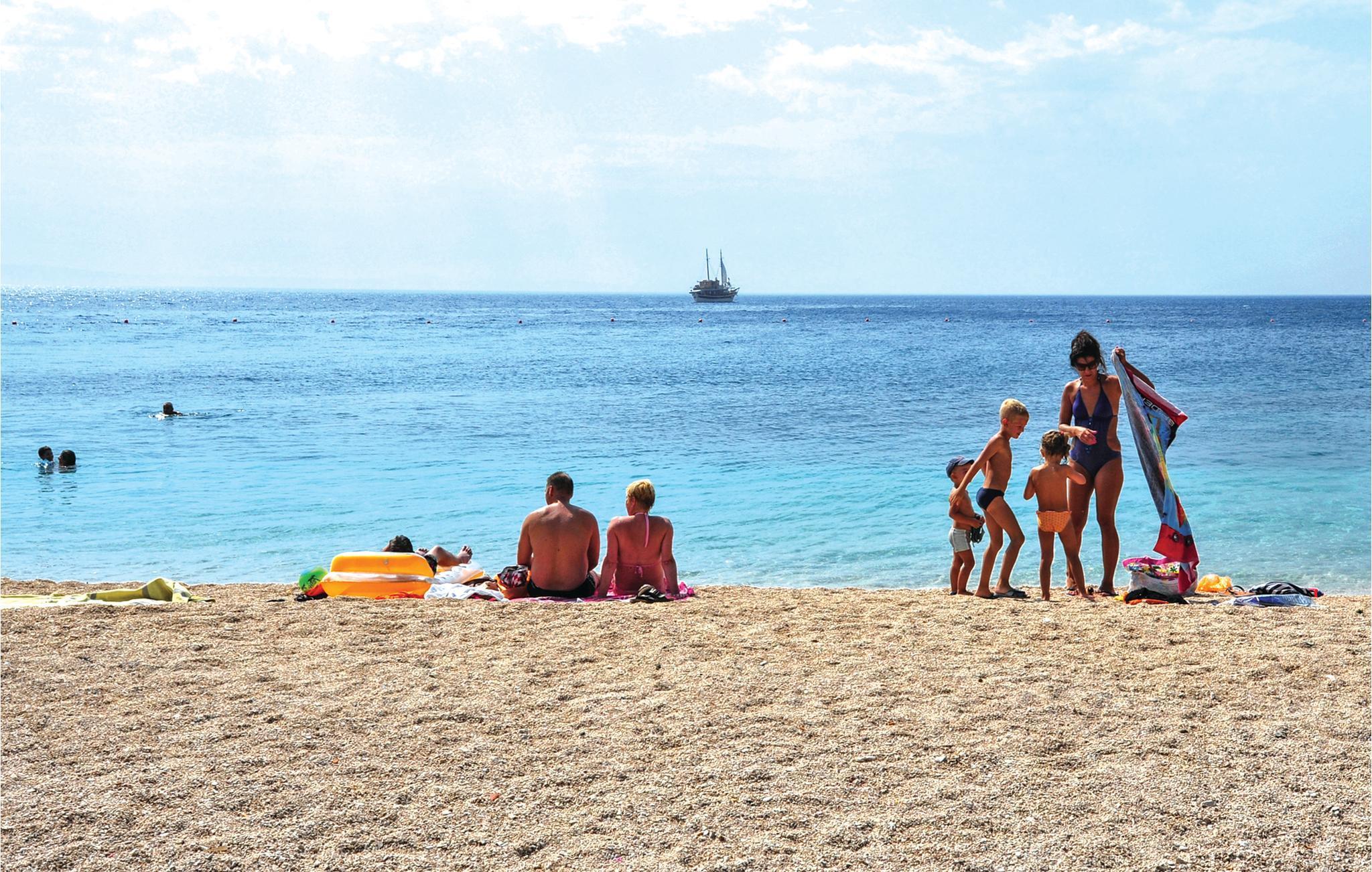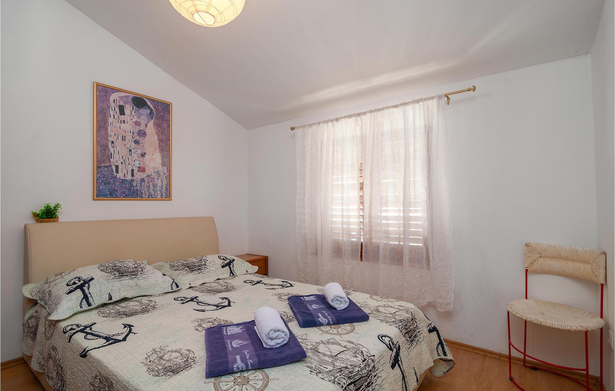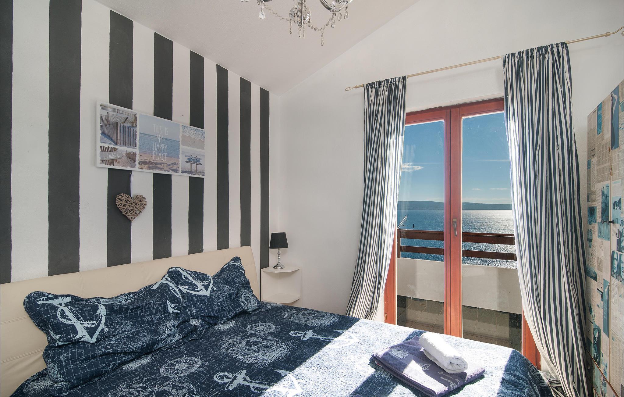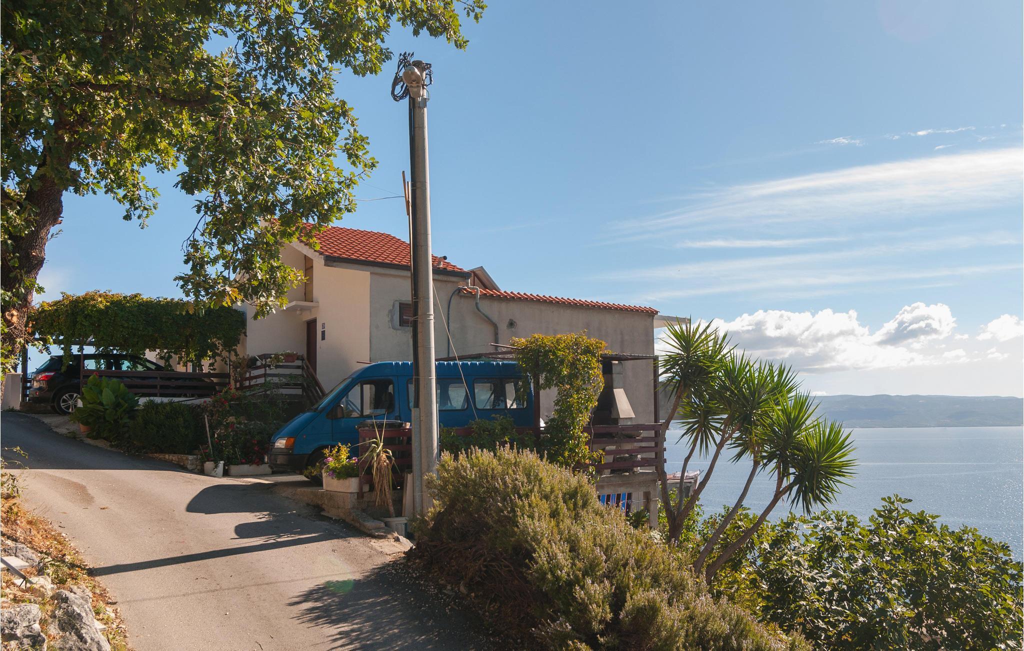 Denne romslige ferieleiligheten ligger i et rolig område på en høyde med panoramautsikt. Den er enkelt og komfortabelt innredet for din ferie. Leiligheten ligger i øverste etasje og har egen inngang. En gangsti og trapper fører deg til de vakre små rullesteinstrendene. Fotgjengertunnelen fører deg under kystveien som skiller landsbyen fra stranden. Du finner mange fritidsaktiviteter i byene Dugi Rat og Omis, bare noen få kilometer unna. På den velkjente Omis-rivieraen er det vakre strender som inviterer deg til å slappe av og nyte en aktiv ferie med mange vannsportaktiviteter.