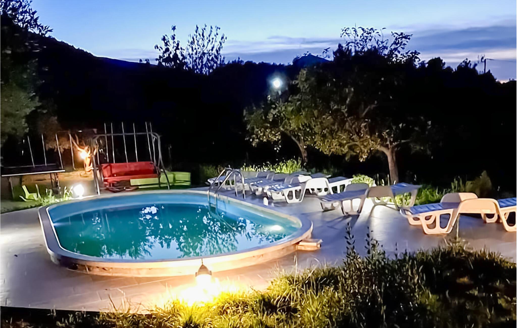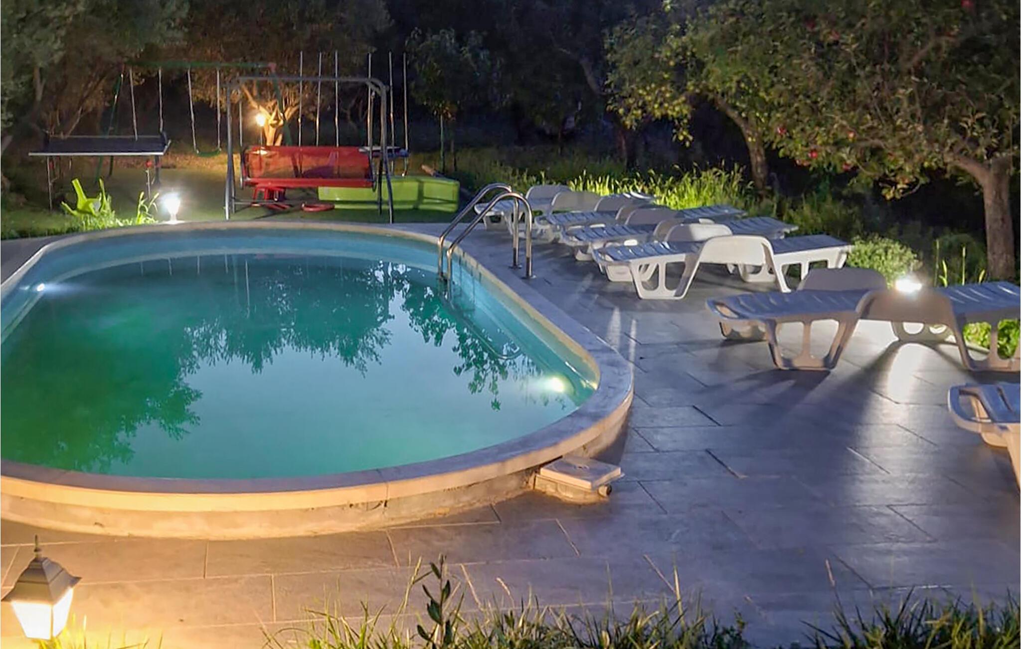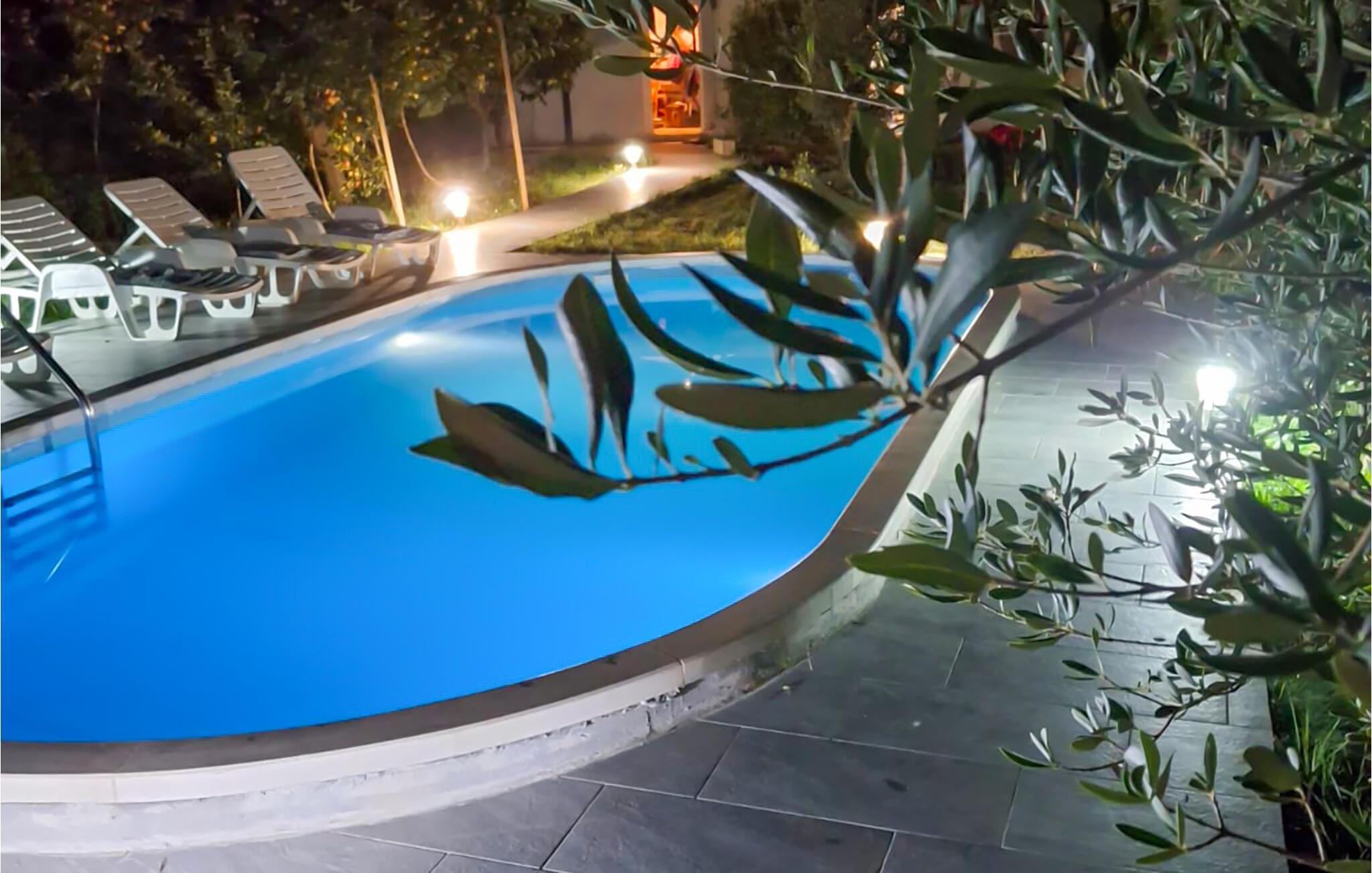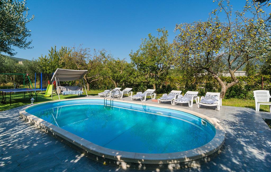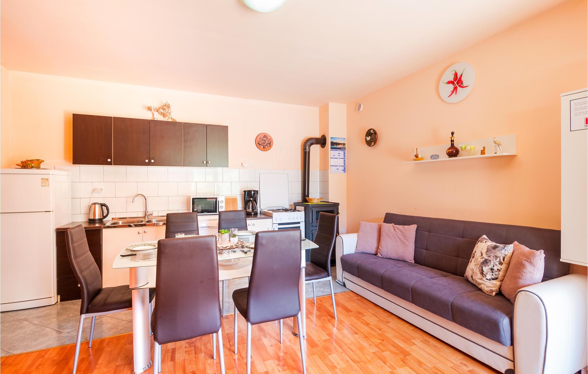 Dette huset ligger på en romslig tomt i en liten og rolig landsby. Det er et ideelt valg for familier eller par som ønsker fred og avslapning. Nyt utsikten over den uberørte naturen og forfrisk deg i svømmebassenget, som ligger i en vakker frukthage. Elven Cetina, hvor du kan dra på uforglemmelige raftingturer, ligger ca. 1500 meter unna. Den livlige byen Omi med sine underholdningsmuligheter ligger ca. 10 kilometer unna.