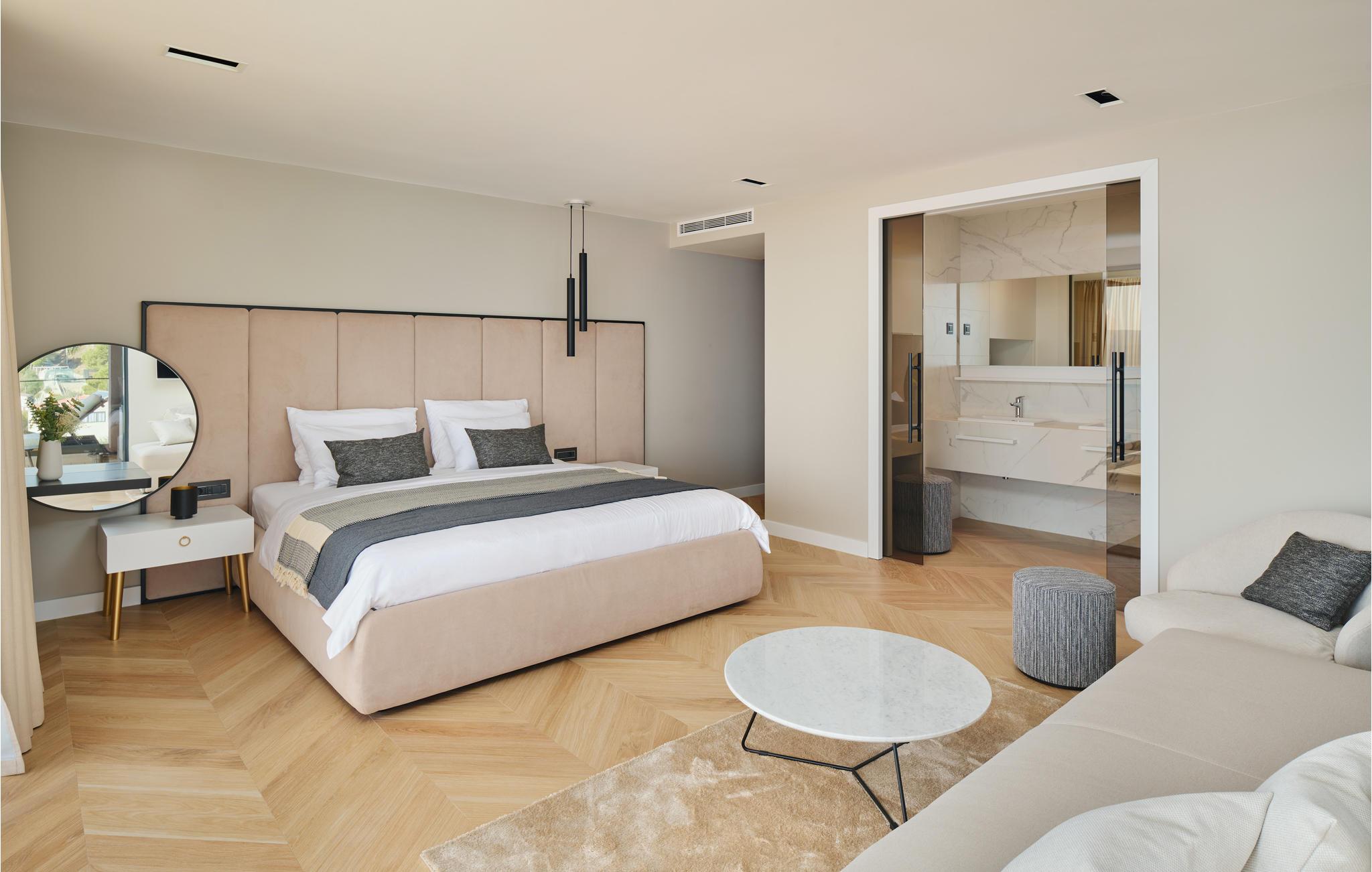 Luksusvillaen Alanis ønsker deg velkommen med en luksuriøs og moderne atmosfære, preget av stilfull design, materialer av høy kvalitet og vidstrakt utsikt over havet. Slapp av i den romslige stuen og nyt den fantastiske utsikten over det glitrende vannet gjennom panoramavinduene. Det elegante kjøkkenet er det perfekte stedet å lage mat sammen og spise middag med stil ved langbordet. Etter en treningsøkt i hotellets eget treningsrom kan du koble helt av i velværeavdelingen med basseng og badstue.