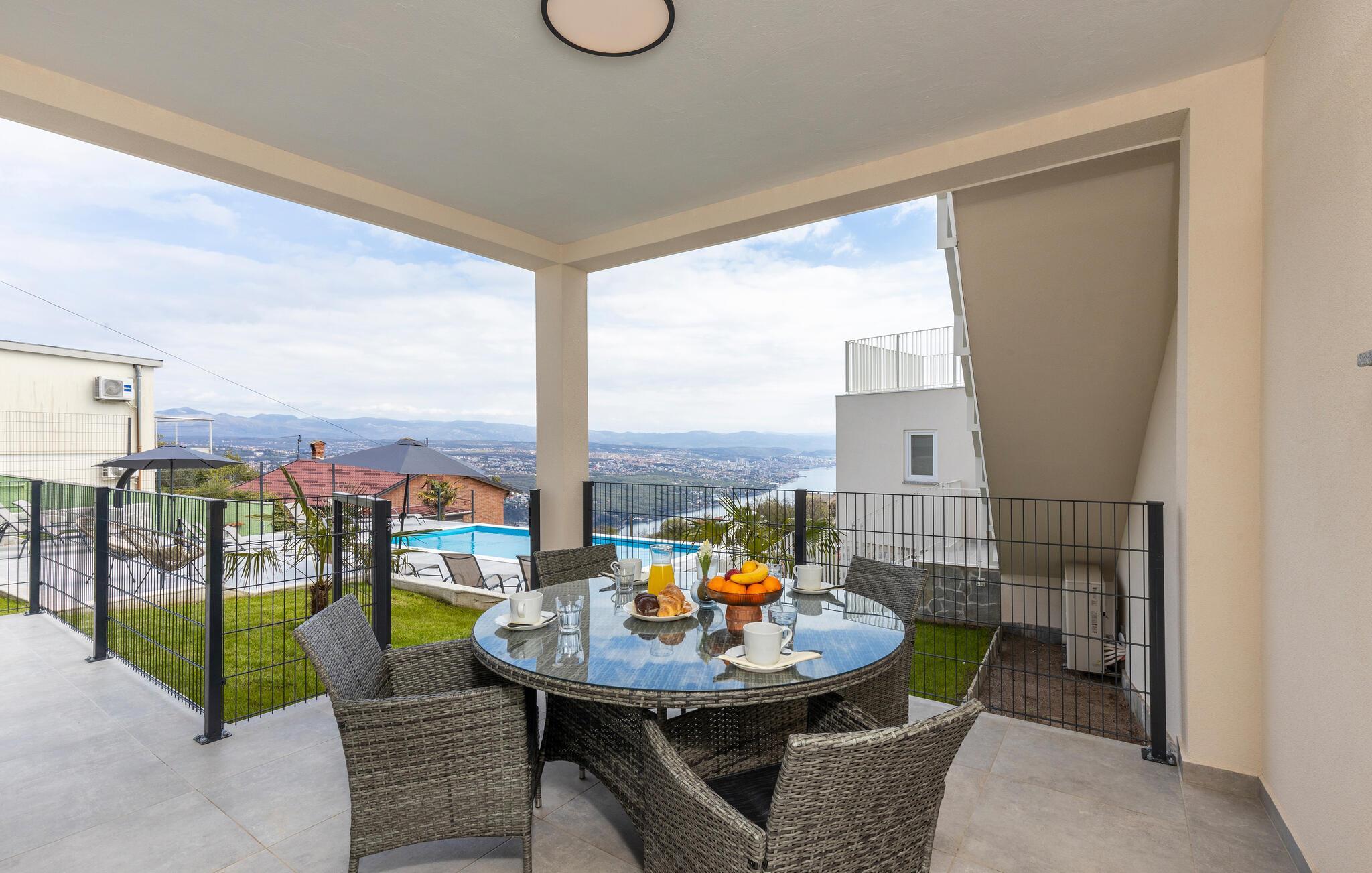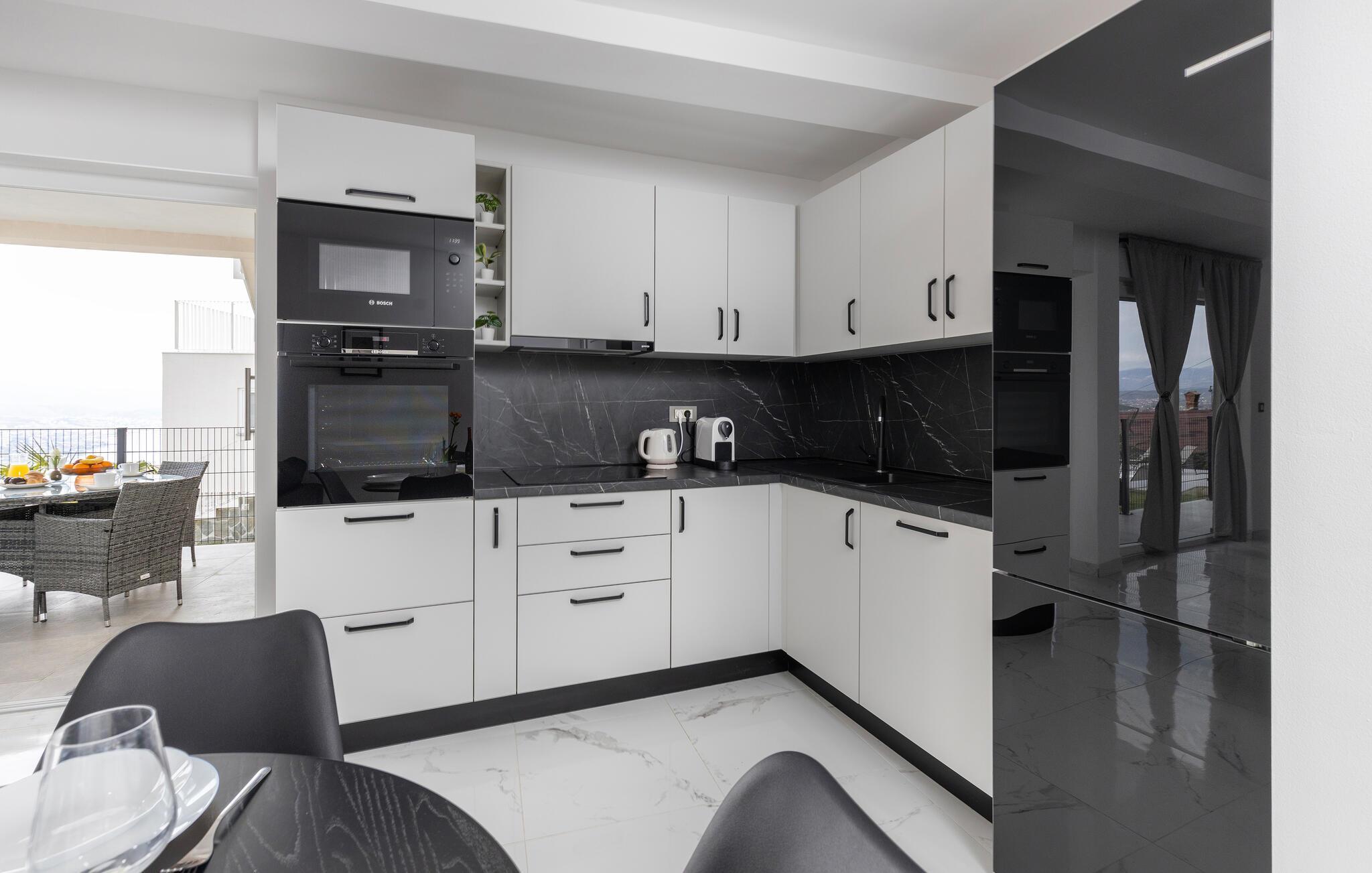 Leiligheten har en fantastisk panoramautsikt og tilbyr stilfulle omgivelser for en avslappende ferie ved sjøen. De koselige, moderne møblene skaper en hyggelig atmosfære, og de mange vinduene sørger for at du kan nyte panoramautsikten over havet. Etter aktivitetene kan du slappe av i den felles badstuen med utsikt over bassenget og havet.