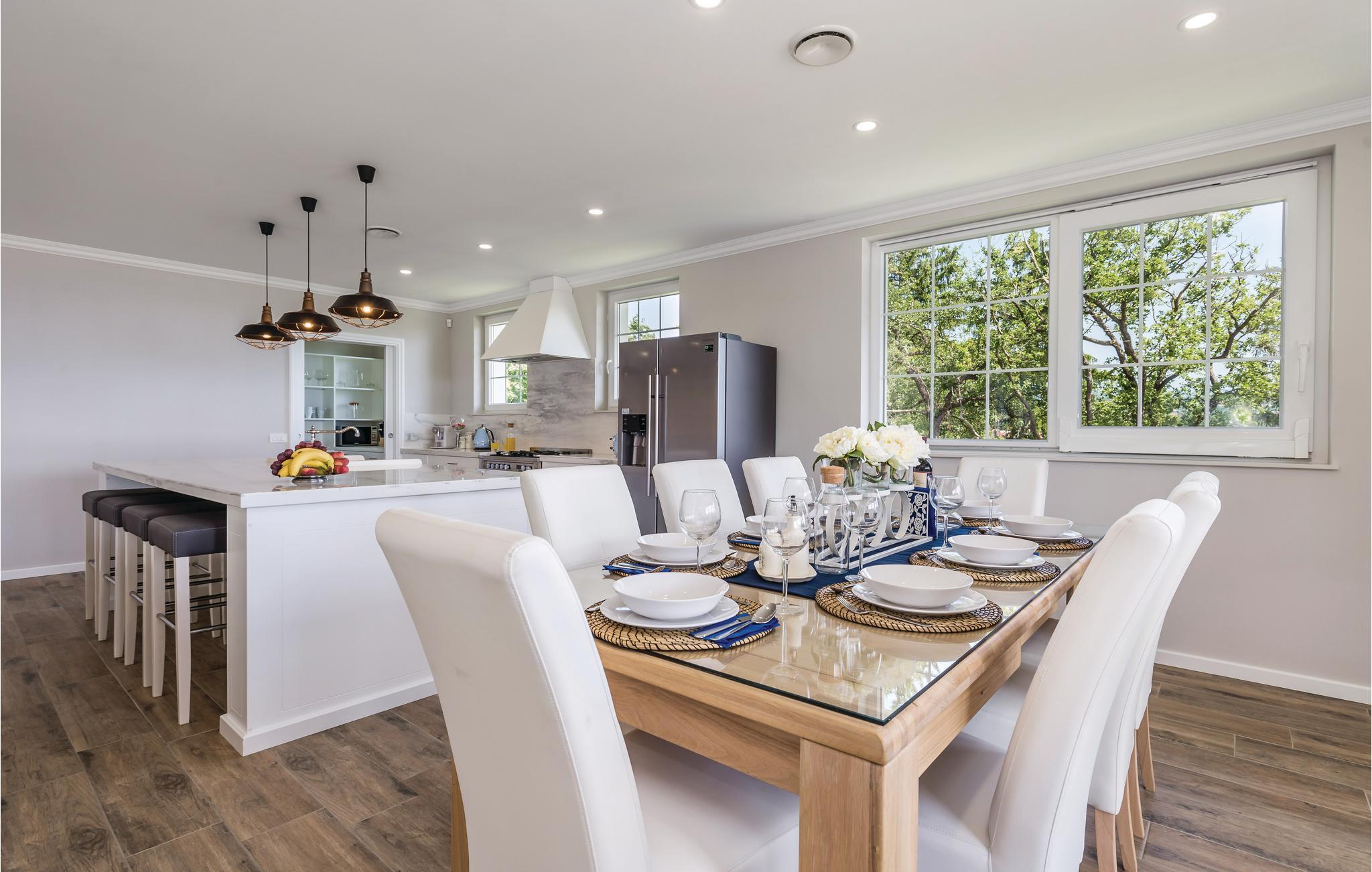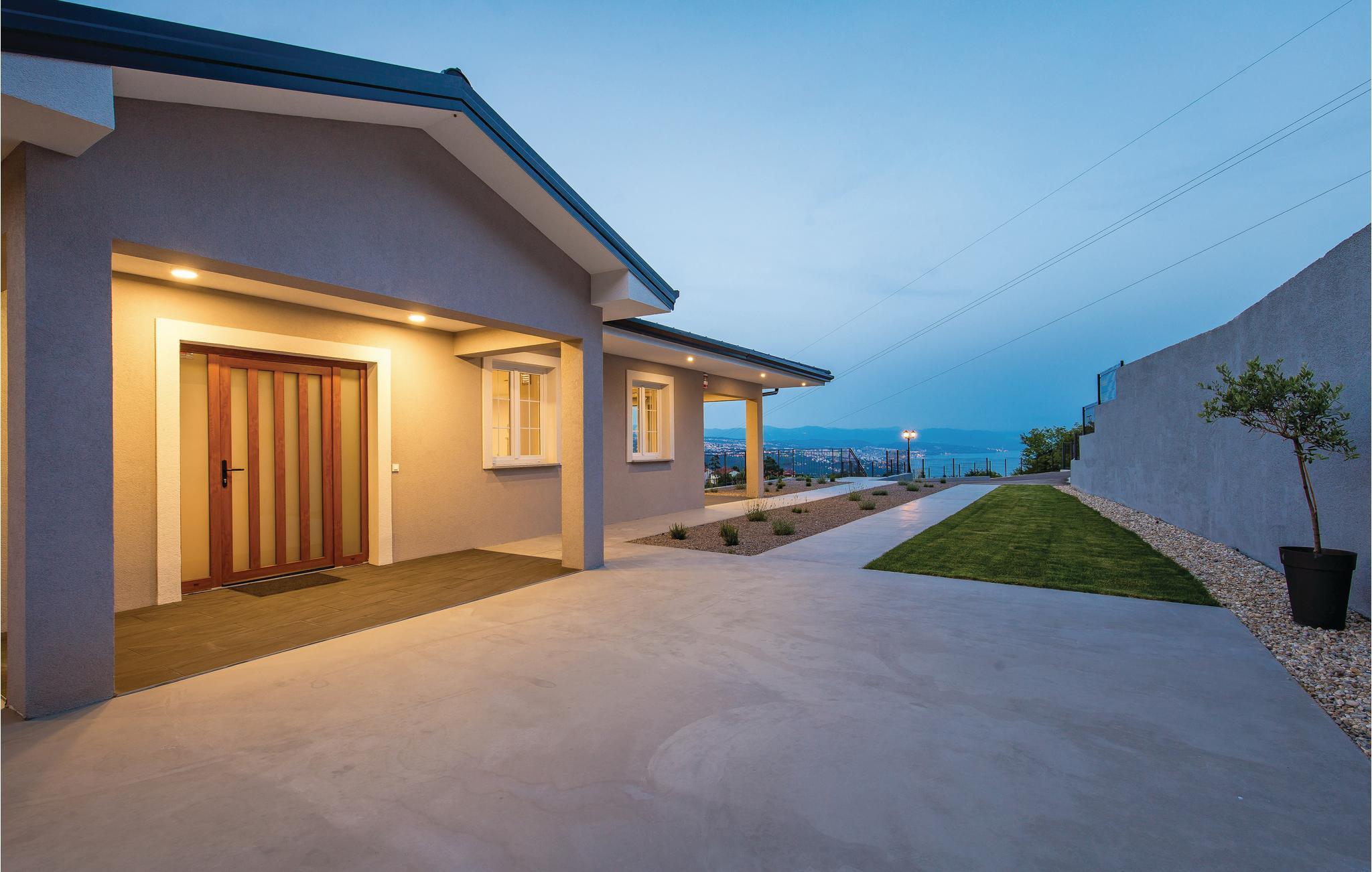 Dette imponerende feriehuset ligger ved foten av Uka-fjellet og over den vakre kystbyen Opatija. Det ligger i utkanten av en skog, langt fra byens støy, i landsbyen Matulji, hvor du kan nyte en fantastisk ferie. Det stilfullt innredede feriehuset ligger på en inngjerdet tomt på ca. 3000 m². Innvendig er det store glassflater som gir et godt lysinnslipp og skaper en direkte forbindelse til det naturlige uteområdet med basseng, solsenger og grill. Boarealet er fordelt over to etasjer. Stue med biljardbord, soverom, bad og salong ligger i første etasje, mens kjøkken, fire soverom, to bad og et separat vaskerom og strykerom ligger i andre etasje. Aktive feriegjester kan utforske området rundt på sykkel- og turstier. Byen Opatij, hvor du finner mange restauranter, barer og strender, ligger bare noen få minutters kjøring unna. Den ca. 12 km lange strandpromenaden er ideell for spaserturer. Parkering i garasje.