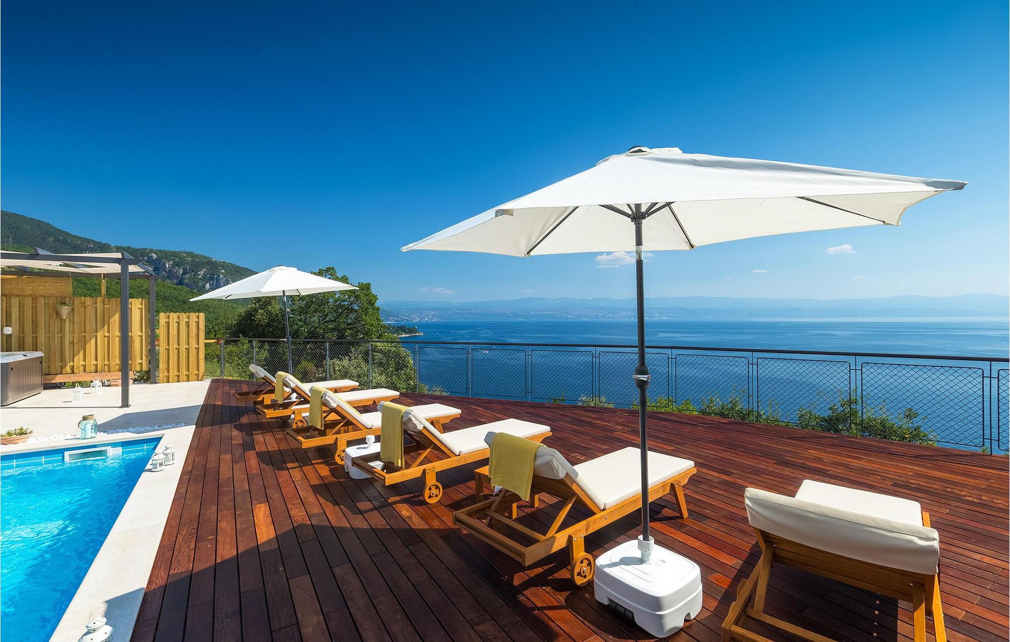 Den fantastiske Villa Ivancic ligger på en klippe rett ved sjøen, og tilbyr virkelig alt du trenger på ferie: en fantastisk havutsikt, privat basseng, mange salongområder samt badstue og utendørs boblebad!