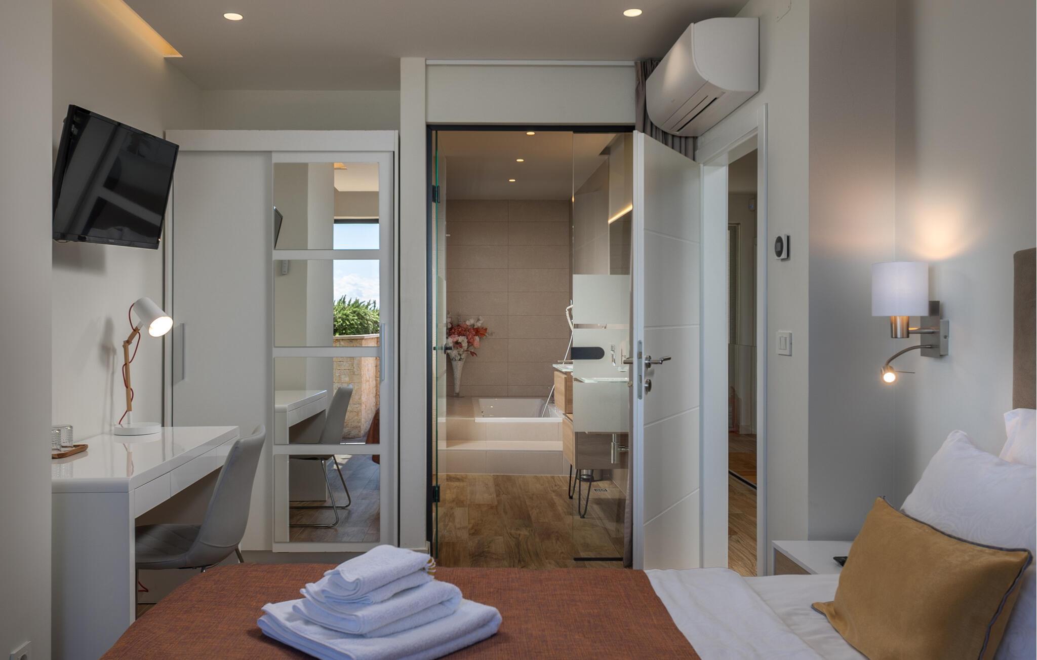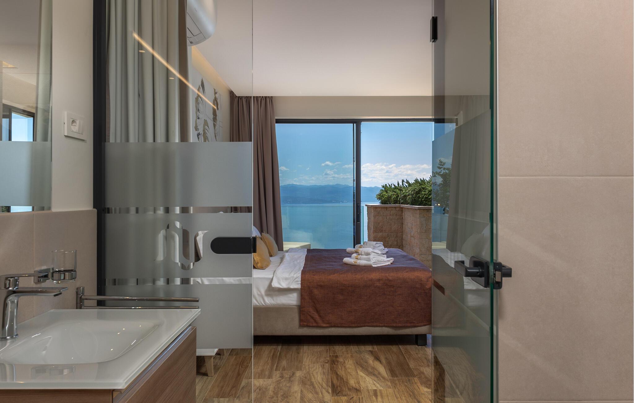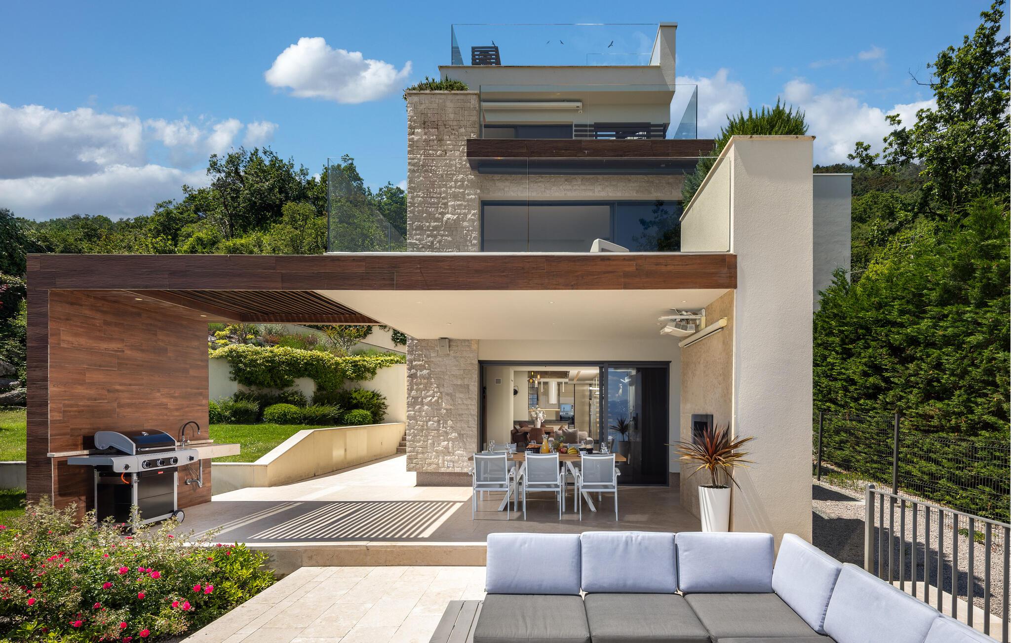 Villa AltaVista har en perfekt beliggenhet på kanten av Opatija-rivieraen, med fantastisk havutsikt og er selve symbolet på moderne luksus. Det er ikke spart på noe for å skape denne eksepsjonelle villaen. Hvis du vil våkne opp hver morgen med utsikt over kysten, trenger du ikke lete lenger. Du har funnet den perfekte villaen! Villaen er innredet med materialer og møbler av høy kvalitet for å gi gjestene en uforglemmelig opplevelse. Villaen har en moderne stue, et fullt utstyrt kjøkken, spiseplass, 4 soverom med eget bad, boblebad og et underholdningsområde. Hele villaen har et automatisk varme- og kjølesystem, Wi-Fi-internettforbindelse og lydanlegg i stuen og på soverommene. Spa-rommet er det perfekte stedet å slappe av i den finske badstuen eller nyte kveldene i boblebadet. Villaen byr på et vell av underholdning med biljardbord, airhockey og bueskytingsutstyr. Fra evighetsbassenget med massasjeteppe, som kan varmes opp på forespørsel, har du vakker utsikt over bukten og de omkringliggende øyene.