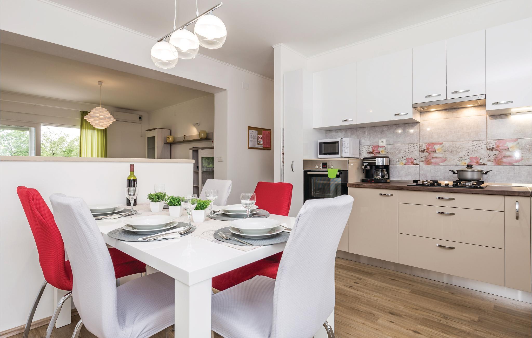 I innlandet av Opatija, på en høyde og i nærheten av den idylliske landsbyen Kastav, ligger den lille landsbyen Jusici. Ferieleiligheten er lys og smakfullt innredet. Fra terrassen kan du nyte en vakker utsikt over landskapet og de naturlige omgivelsene. Ferieboligen ligger ved den lokale veien, og gir deg muligheten til raskt å komme deg til de første strendene og sjarmerende Opatija med bil, men også til å utforske området rundt. Nærliggende Kastav er et sted med en rik historie, kultur og tradisjon. Ruinene av Mariakirken, populært kalt Crekvina, står som et historisk og kulturelt monument i Kastav. Området rundt byr på mange muligheter for en aktiv ferie. Det finnes mange turstier og promenader, sykkelstier, og en annen interessant måte å utforske Kastav-regionens vakre natur og historiske arv på er å ri. Byen Matulji, som også er kjent som porten til Opatija-rivieraen, er berømt for sin klokkeringingstradisjon, som står på UNESCOs liste over immateriell kulturarv. På de lokale tavernaene kan du smake på lokale spesialiteter og jarbola, en vin med en spesiell smak laget av den lokale druesorten. Besøk den nærliggende Uka naturpark. Her kan de som liker aktive ferier nyte den ekstraordinære naturen, som er utsmykket med mange fredede og sjeldne dyre- og plantearter. Fra toppen av Vojak har du en fenomenal panoramautsikt over Kvarnerøyene, Istria og Rijeka. Besøk Opatija, sentrum for kulturelle begivenheter, med mange konserter og festivaler om sommeren.