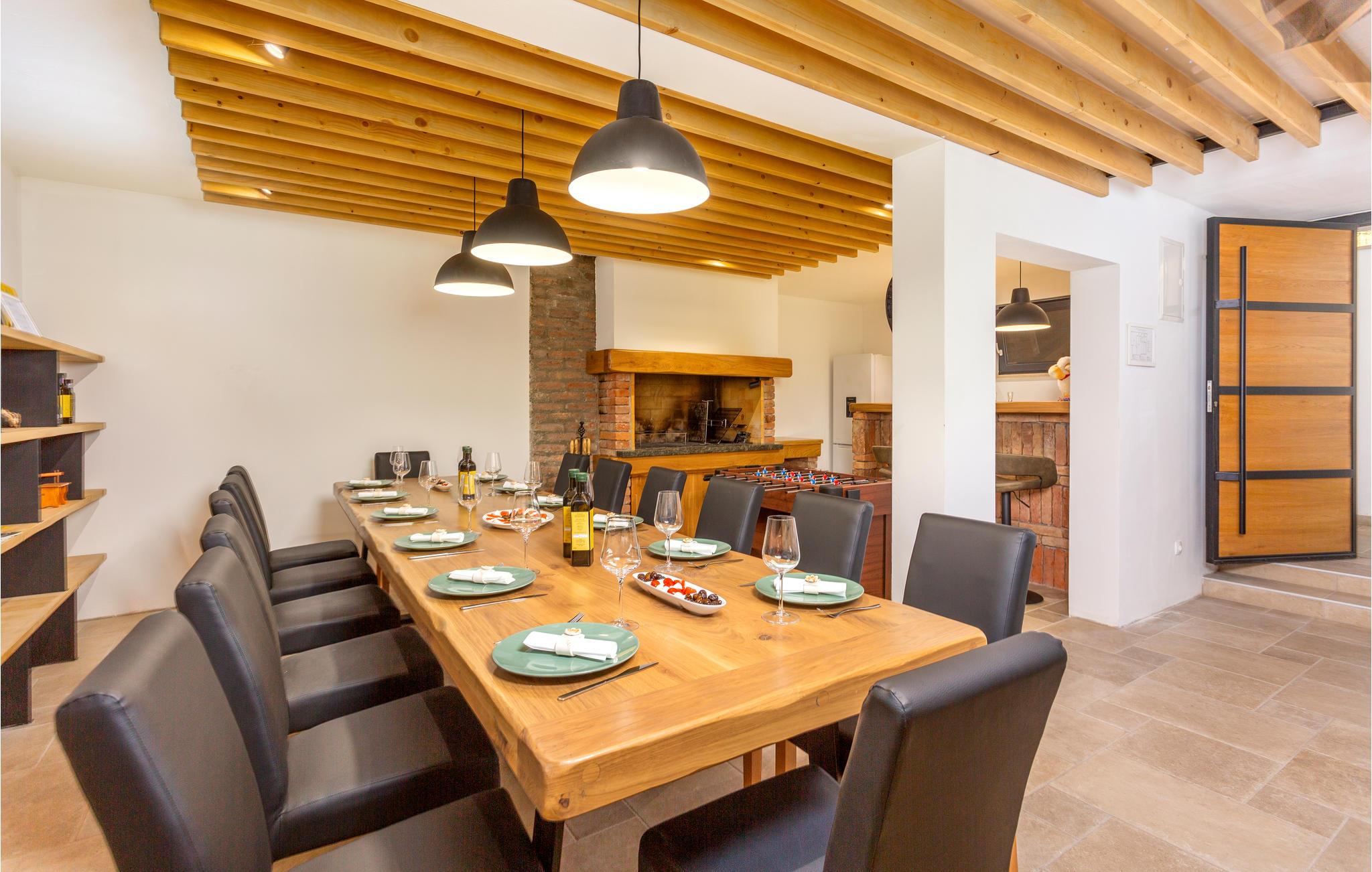 Med utsikt over grøntområder og natur, ønsker dette innbydende feriehuset deg velkommen i tre etasjer. Her kan du føle deg som hjemme og slappe av sammen med dine nærmeste. Fargene skaper en beroligende atmosfære sammen med det lyse flislagte gulvet, hvor du kan nyte å legge opp føttene eller hvile i de koselige soverommene. Kjelleren byr på sosial underholdning, men du kommer til å tilbringe mange timer og kvelder i hagen. Se barna leke i hagen, og ta en dukkert i bassenget sammen med deg.