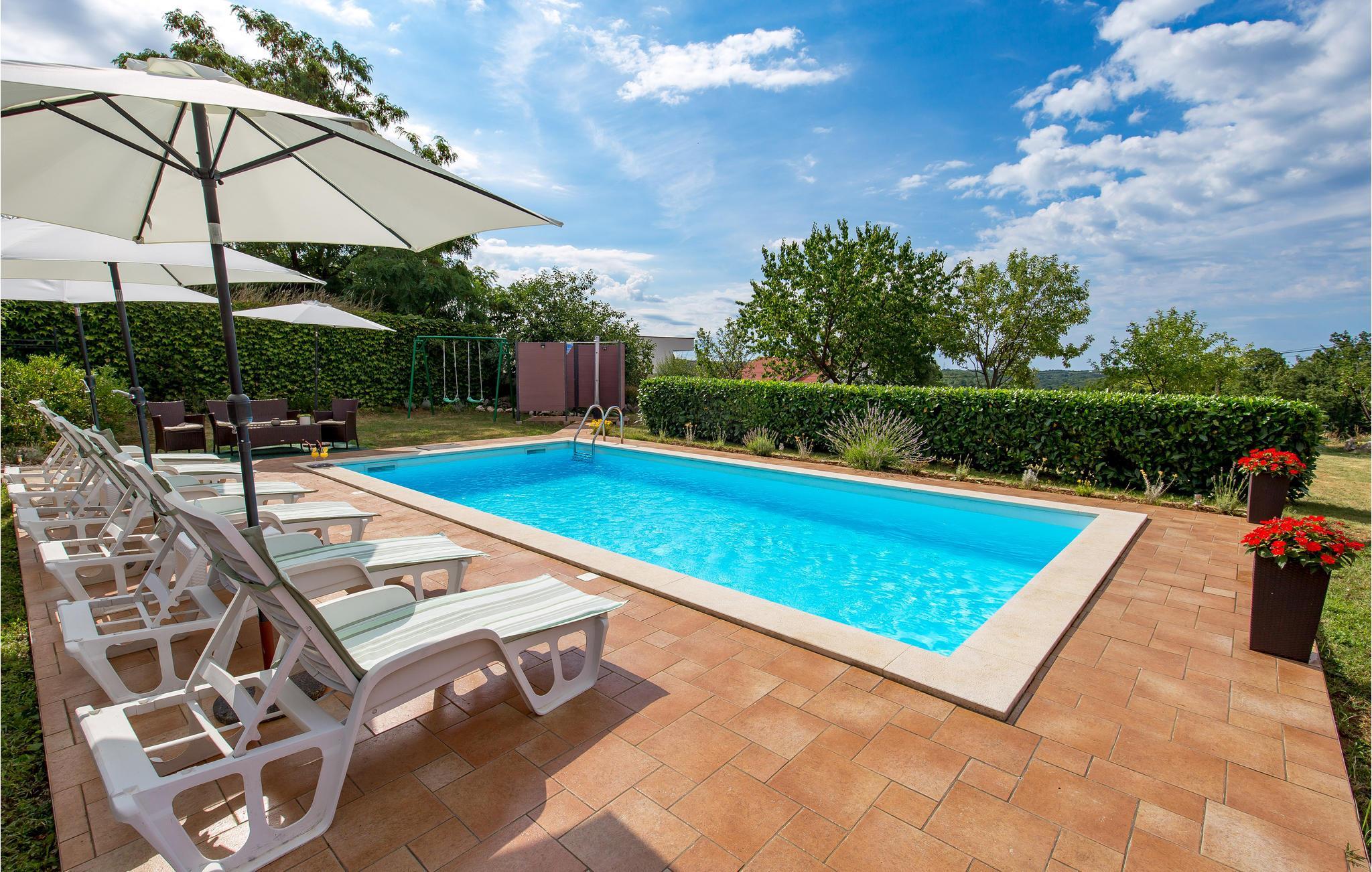 Dette feriehuset ligger i Kastav, over Opatija-rivieraen. Tilbring et hyggelig opphold i denne romslige og smakfullt innredede ferieboligen med svømmebasseng, det vil gi forfriskning på varme sommerdager. Tilbring hyggelige sommerkvelder på den overbygde terrassen. I den nærmeste byen Kastav, med en rik historie, finner du et supermarked, restauranter, gallerier, skogsstier og ridemuligheter, som vil sikre en aktiv ferie. Du kan også nyte det gastronomiske og ønologiske tilbudet i denne regionen. Besøk strendene på Opatija-rivieraen.