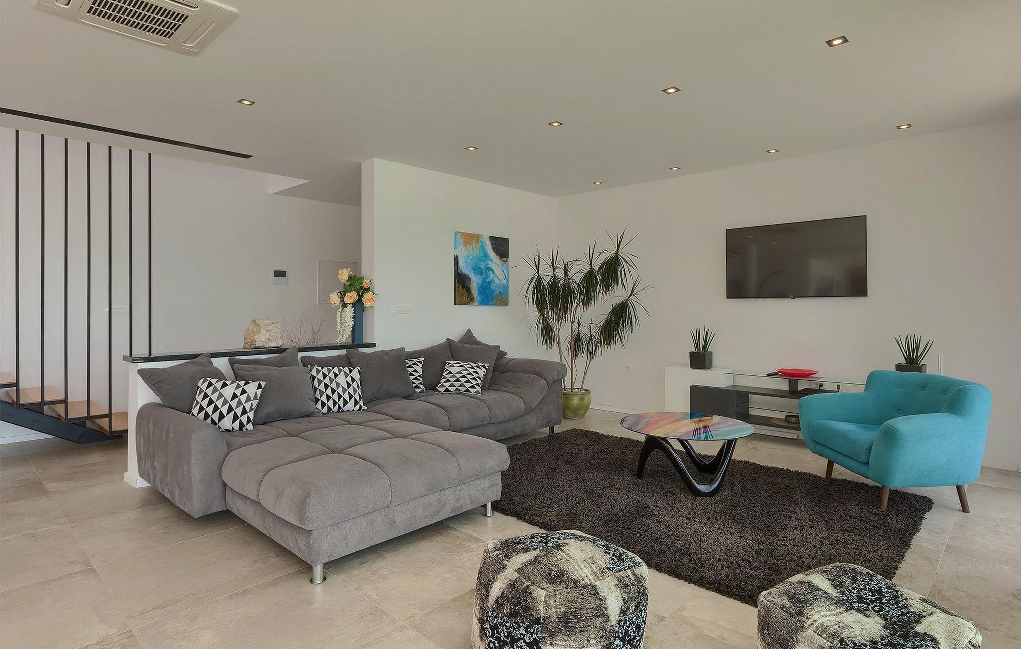 Denne vakre villaen vil forbløffe deg med sin moderne design og en fantastisk panoramautsikt over Opatija og Kvarnerbukten. Villaen ligger på en 1400 m2 stor tomt og har 4 soverom, som alle ligger i øverste etasje og har eget bad, TV og klimaanlegg. Dette gjør den til et perfekt feriehus med optimal komfort for 8 personer. Første etasje er en stilfull åpen planløsning med spise- og oppholdsrom og et romslig, fullt utstyrt kjøkken. Det er også et separat rom med boblebad, dusj og badstue, samt et rom med biljardbord for mer moro. Stuen er direkte forbundet med terrassen, der du kan nyte den fantastiske utsikten fra det private bassenget eller den koselige salongen. En uteservering med kullgrill står også til din disposisjon. Denne funksjonelle villaen har alt du trenger for en avslappende og underholdende ferie, samtidig som beliggenheten gir deg mulighet til å utforske alle skjønnhetene i Kvarner-regionen.denne vakre villaen ligger i nærheten av den lille byen Kastav, bare ca. 6 km fra Opatija og 10 km fra Rijeka. Rijeka er kjent som Kroatias største havn, men også for sine mange restauranter, kafeer, klubber, barer og arrangementer. Opplev byens atmosfære på en spasertur langs Korzo, utforsk gamlebyen og besøk pilegrimskirken i Trsat på en høyde over byen. Du bør absolutt besøke Rijeka-karnevalet, det femte største karnevalet i verden! Rijeka lufthavn ligger på øya Krk, bare en kort kjøretur fra villaen. Ta en spasertur langs den vakre kystpromenaden "Lungomare" og nyt romantiske spaserturer i solnedgangen i byen Opatija - Adriaterhavets perle.