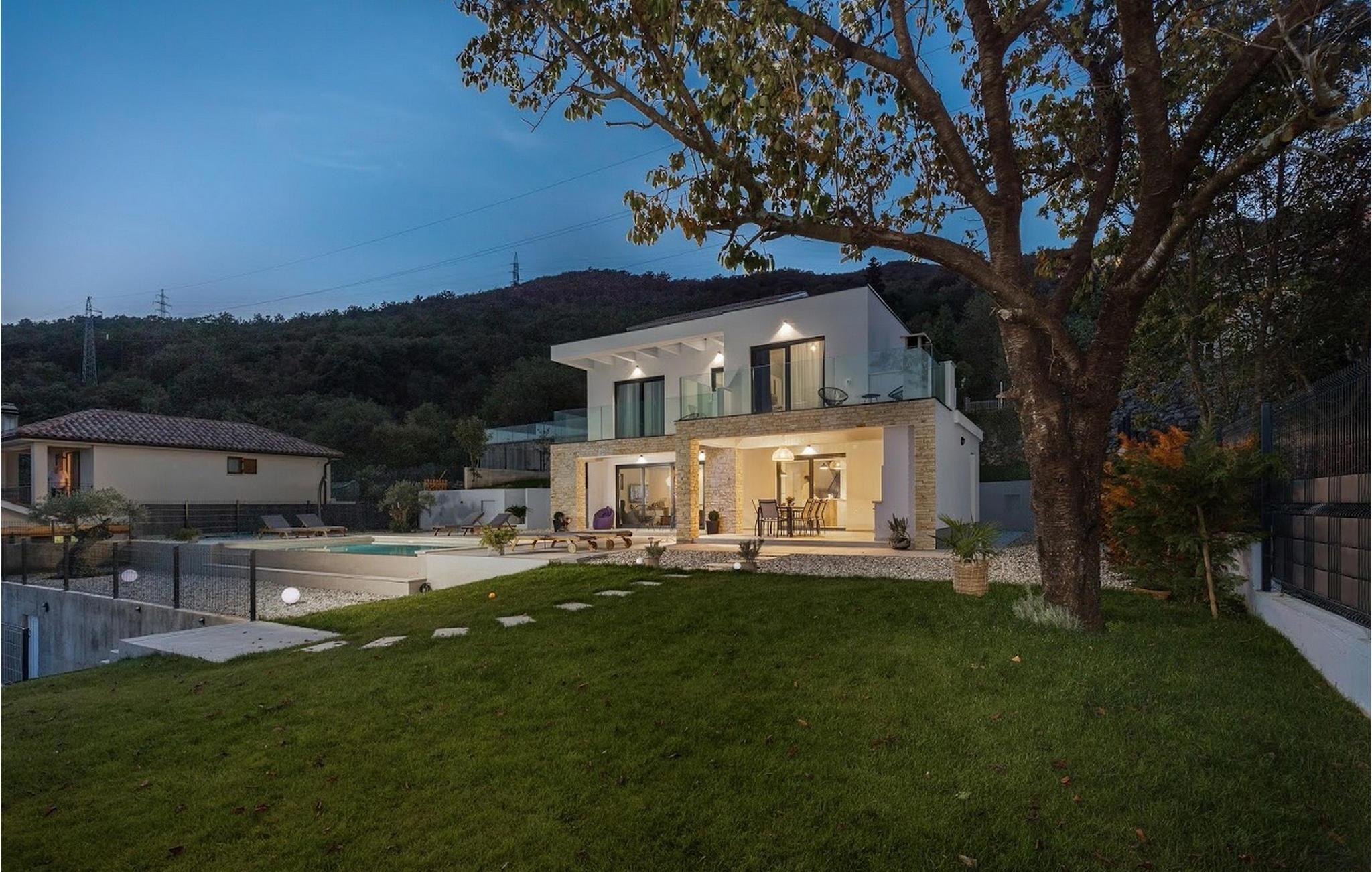 Den vakre, moderne villaen Askim Prestige ligger i Kvarner, i den lille byen Matulji, tre kilometer fra Opatija. I Matulji vil du oppleve den fredelige Kvarner-atmosfæren, som er ideell for en familieferie. I nærheten ligger vakre Opatija, som har et stort gastronomisk og turistmessig tilbud, og en vakker Riva, rik på arkitektur og historiske severdigheter. I første etasje i Villa Askim Prestige er det tre soverom (dobbeltsenger) med eget bad med dusj, hvorav to har balkong med vakker utsikt over det blå Adriaterhavet. I første etasje er det et separat toalett, et soverom med eget bad, et moderne, funksjonelt kjøkken med spisestue med plass til 8 personer og en bar med plass til 3 personer, samt en koselig stue. Alle rommene i villaen har klimaanlegg. På gårdsplassen er det et oppvarmet svømmebasseng (4 x 8 x 1,55 m) med 6 solsenger og 2 solsengesekker rundt, perfekt for å slappe av og nyte solen. Det er en utendørs kullgrill hvor du kan tilberede ulike spesialiteter og servere dem i uteserveringen. Hagen er inngjerdet (gjerde fra 1,10 m til 1,70 m), og du har fullstendig privatliv. Det er 3 parkeringsplasser på gårdsplassen. Villaen har en finsk badstue og en integrert infrarød badstue med havutsikt. I nærheten av Villa Askim Prestige ligger rullesteinstranden Toma?evac og betongstranden Lido, som er en av de vakreste strendene på Opatija-kysten. Du kan også nyte naturen rundt villaen ved å sykle på sykkelstiene eller gå gjennom de vakre skogene. Med Villa Askim Prestige er familien garantert en perfekt ferie! Kjæledyr er tillatt i denne innkvarteringen etter eierens skjønn eller mot et gebyr. Vær oppmerksom på at dette overnattingsstedet ikke tar imot ungdomsgrupper eller utdrikningslag. En ungdomsgruppe på dette overnattingsstedet består av personer under 30 år. Ikke bestill dette overnattingsstedet hvis du er en ungdomsgruppe eller et utdrikningslag, da bestillingen din vil bli avvist etter bestilling, noe som også kan være tilfelle ved ankomst til overnattingsstedet eller under oppholdet, og du vil ikke få refusjon.