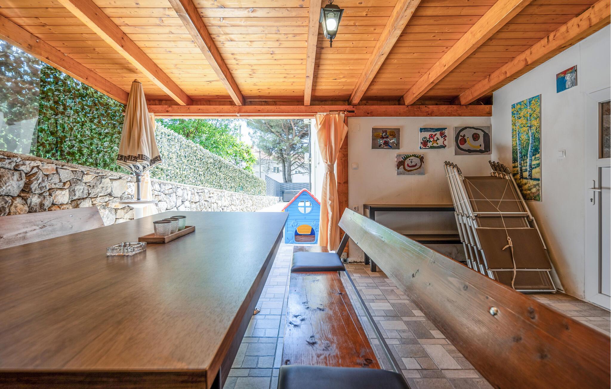 Tilbring en herlig ferie i dette hyggelige huset med to boenheter som er forbundet med en utvendig trapp. Huset er ideelt for to vennefamilier som ønsker å tilbringe ferien sammen uten å gi avkall på privatlivet. Den attraktive innredningen og utstyret skaper en atmosfære som gjør det mulig å nyte ferien til det fulle. Etter aktivitetene kan dere spise sammen på den overbygde terrassen med den store mursteinsgrillen og legge planer for de neste utfluktene.