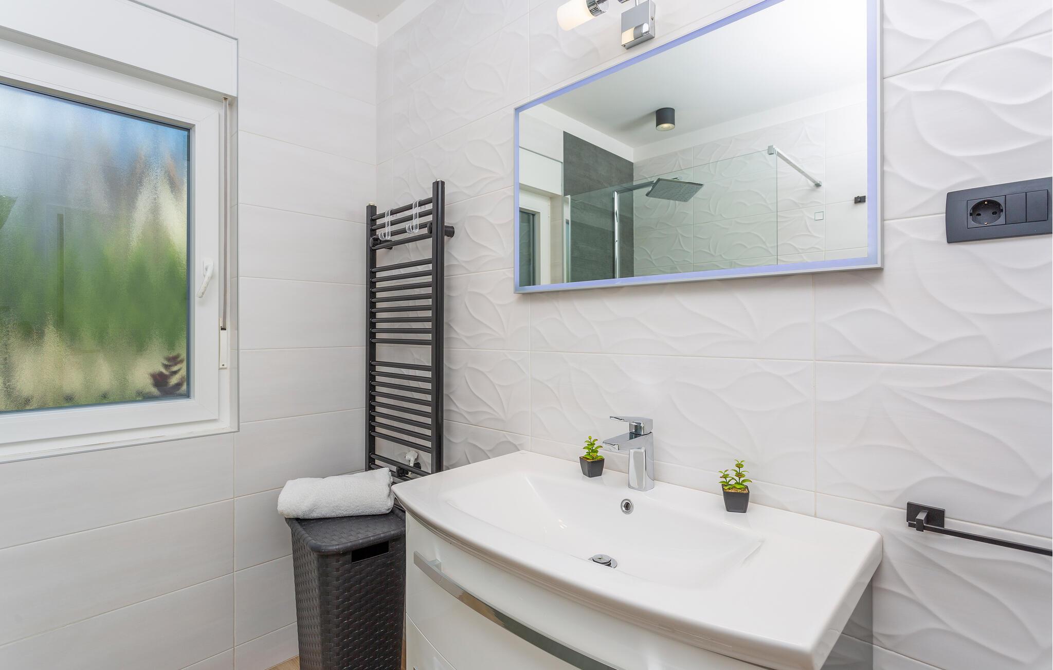 Opplev luksus og komfort i ferieleiligheten din i Opatija-Rukavac, som kjennetegnes av stilfull innredning og innbydende atmosfære. Det lyse interiøret inviterer deg til å slappe av takket være moderne bekvemmeligheter og en avslappet atmosfære. Det er en opplevelse å lage mat på det moderne kjøkkenet. Hjelp alle sammen og slapp av i sofaen om kvelden med en underholdende film.
